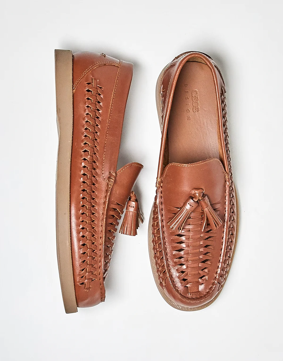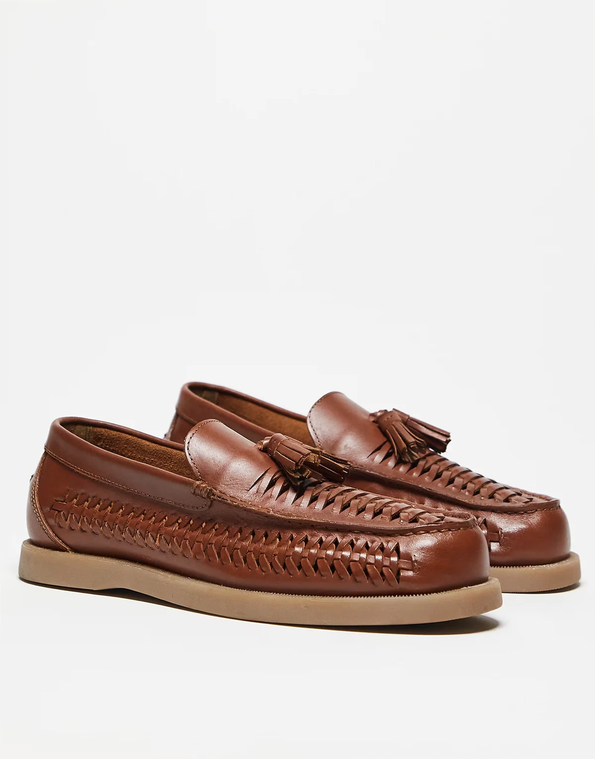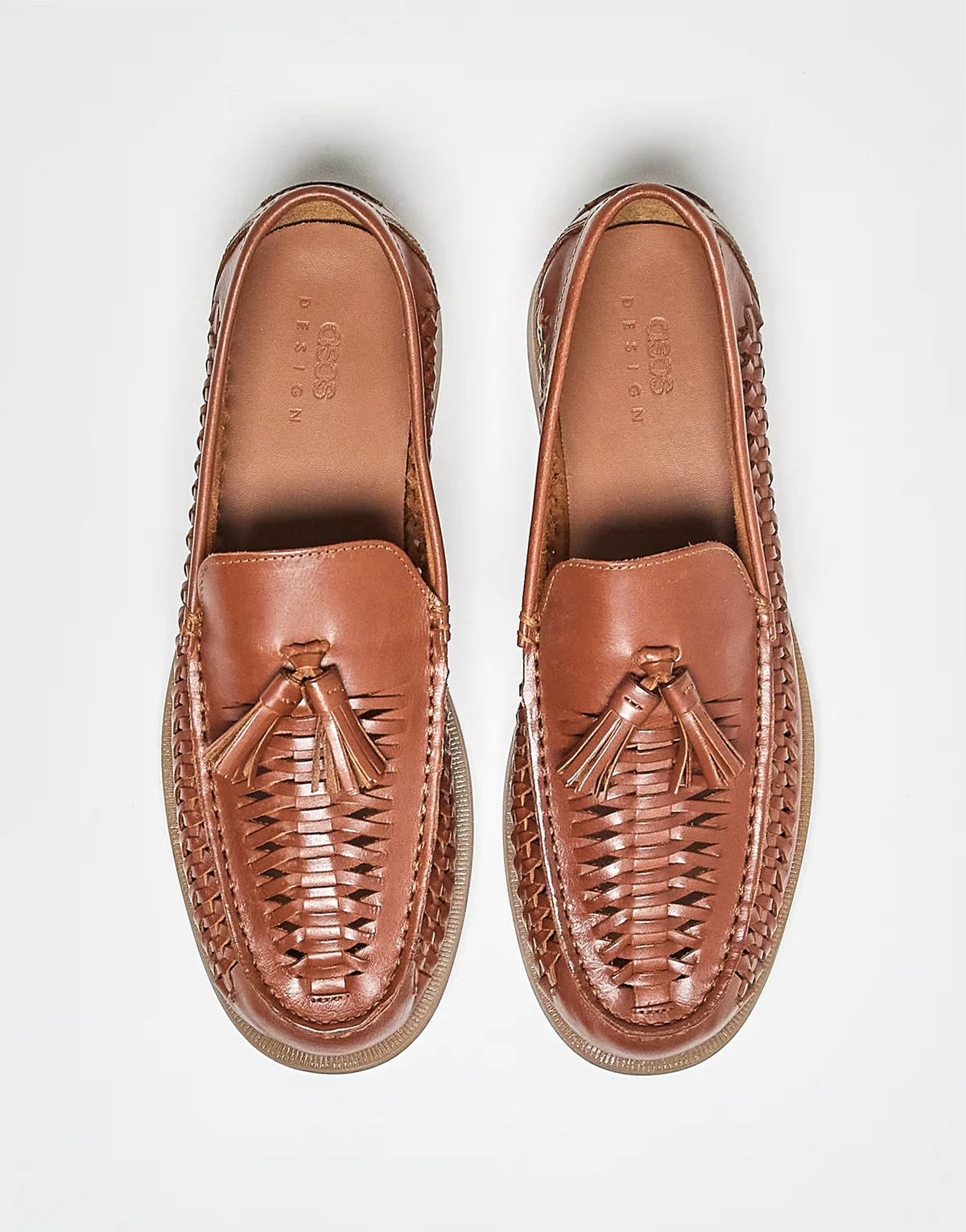 – Leder-Loafer in Hellbraun mit Web-Design