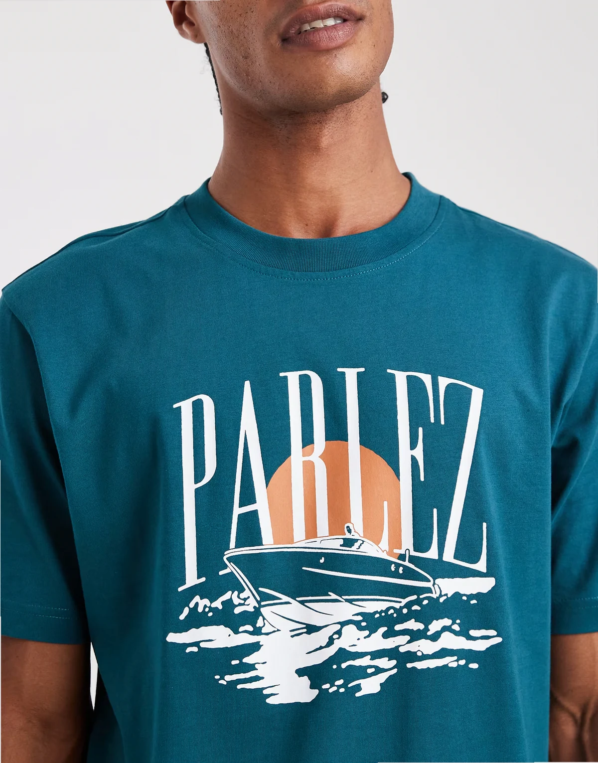 Siebgedruckte Bootsgrafik und „Parlez“-Logo auf der Vorderseite