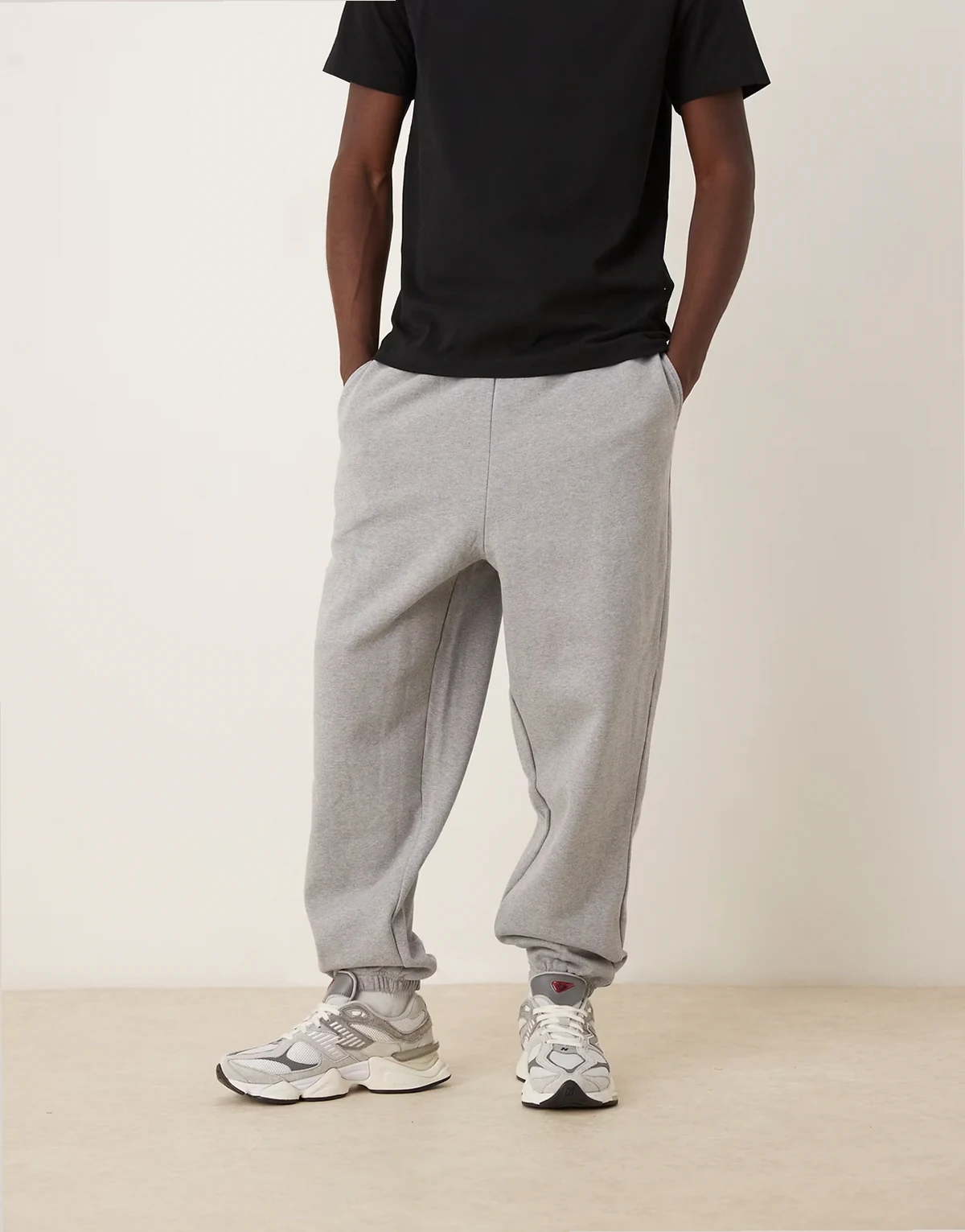 – Hochwertige Oversize-Jogginghose aus schwerem Stoff in meliertem Grau, 400 g/m²