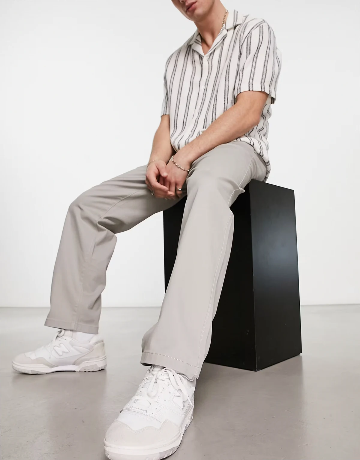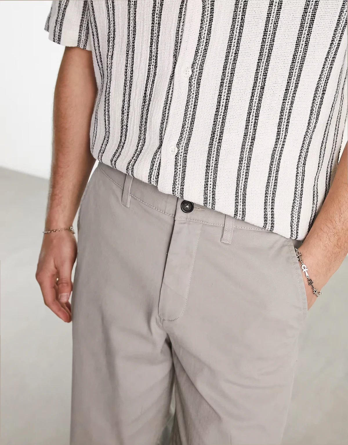 – Weit geschnittene Chinohose in Hellgrau