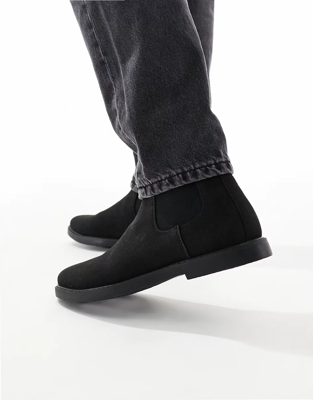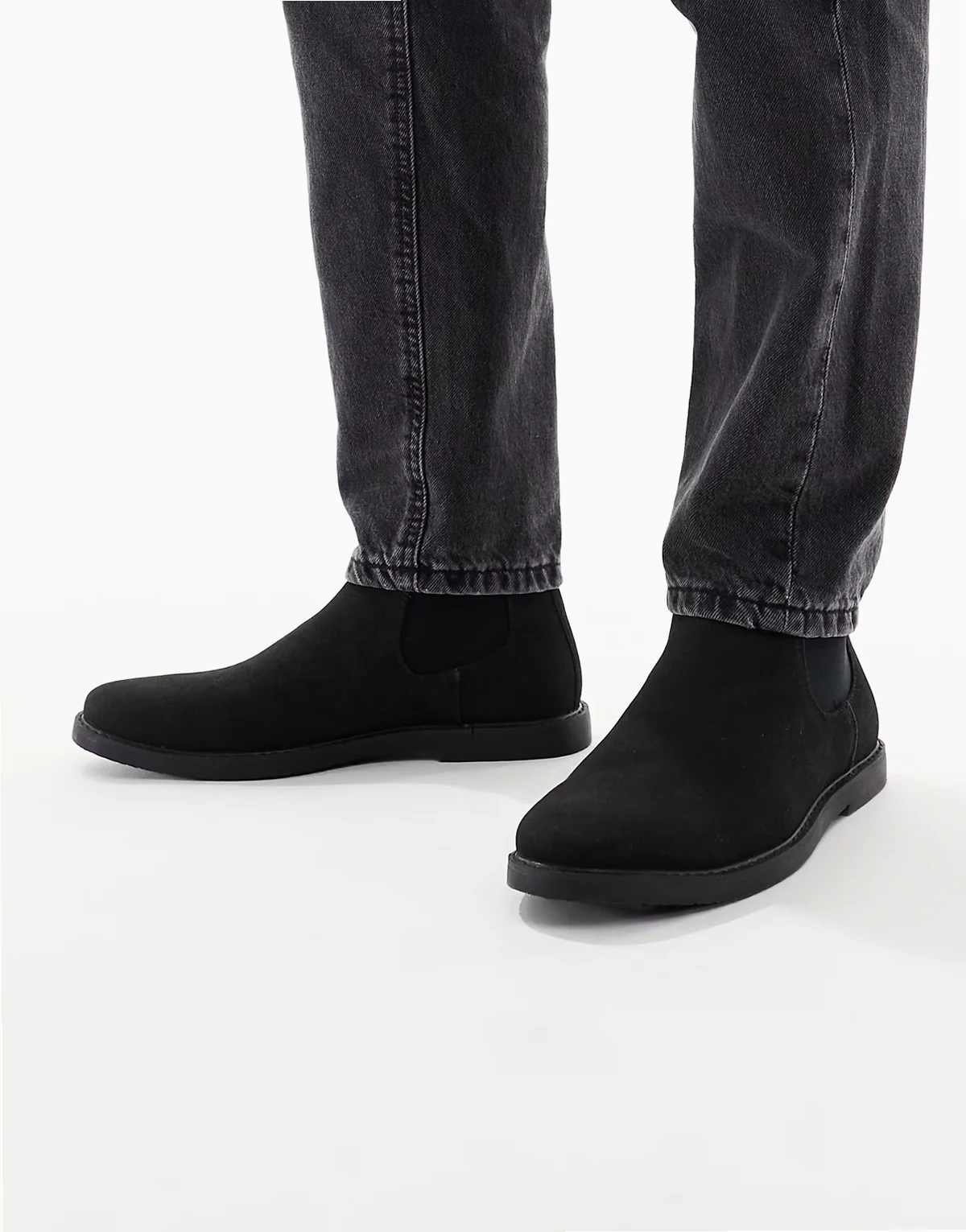 – Chelsea-Stiefel aus Wildlederimitat in Schwarz mit runder Zehenpartie
