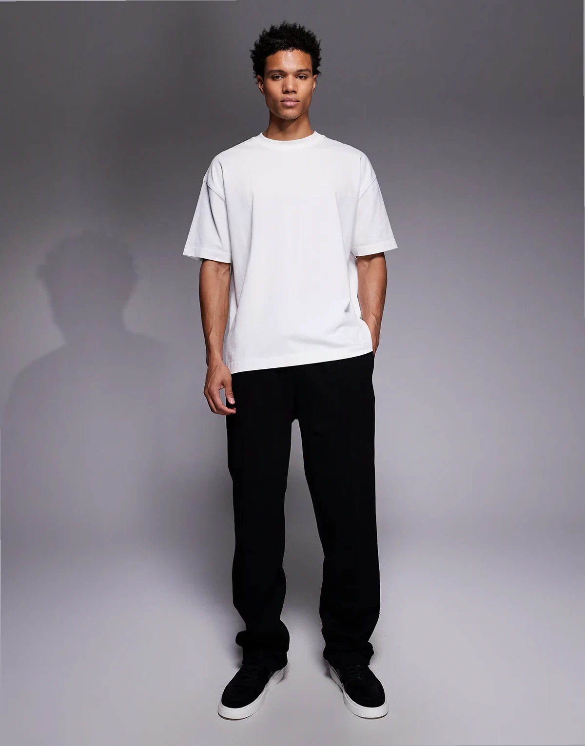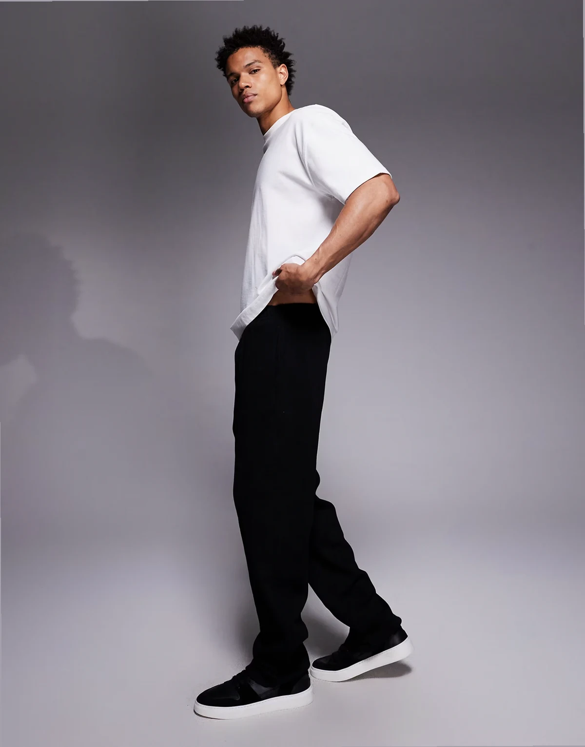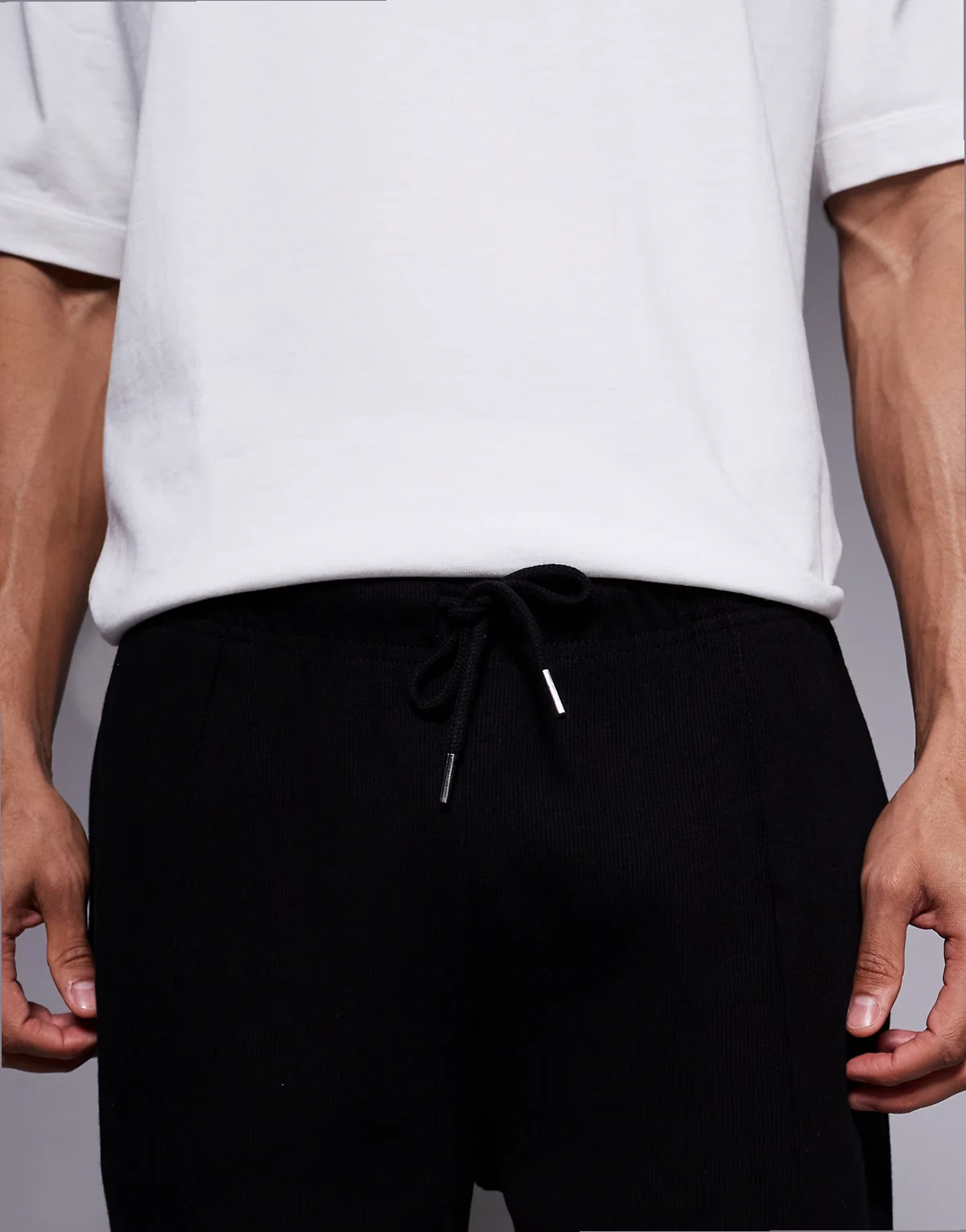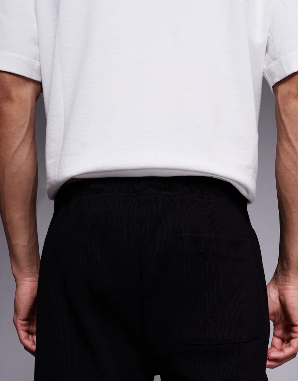 – Schwere, schmal zulaufende Jogginghose in Schwarz mit fixiertem Saum und Biesen