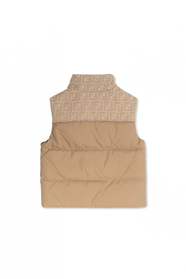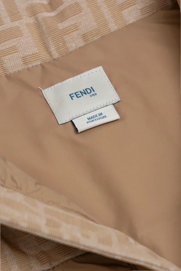 Die beeindruckende gefütterte Weste mit Logo von Fendi Kids ist eine raffinierte Wahl für junge Liebhaber von Klassik und Luxus. Im zeitlosen Beige gehalten, begeistert sie durch ihren puristischen Schnitt mit hohem Stehkragen, der sportliche Eleganz mit Funktionalität perfekt vereint.