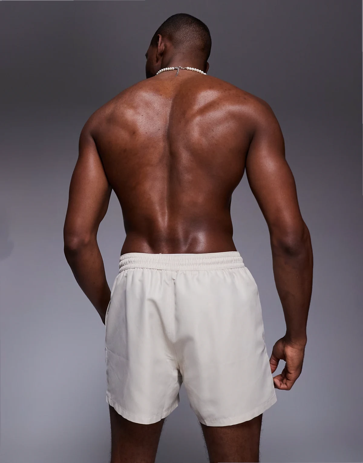 – Kurze Badeshorts in hellem Steinbeige
