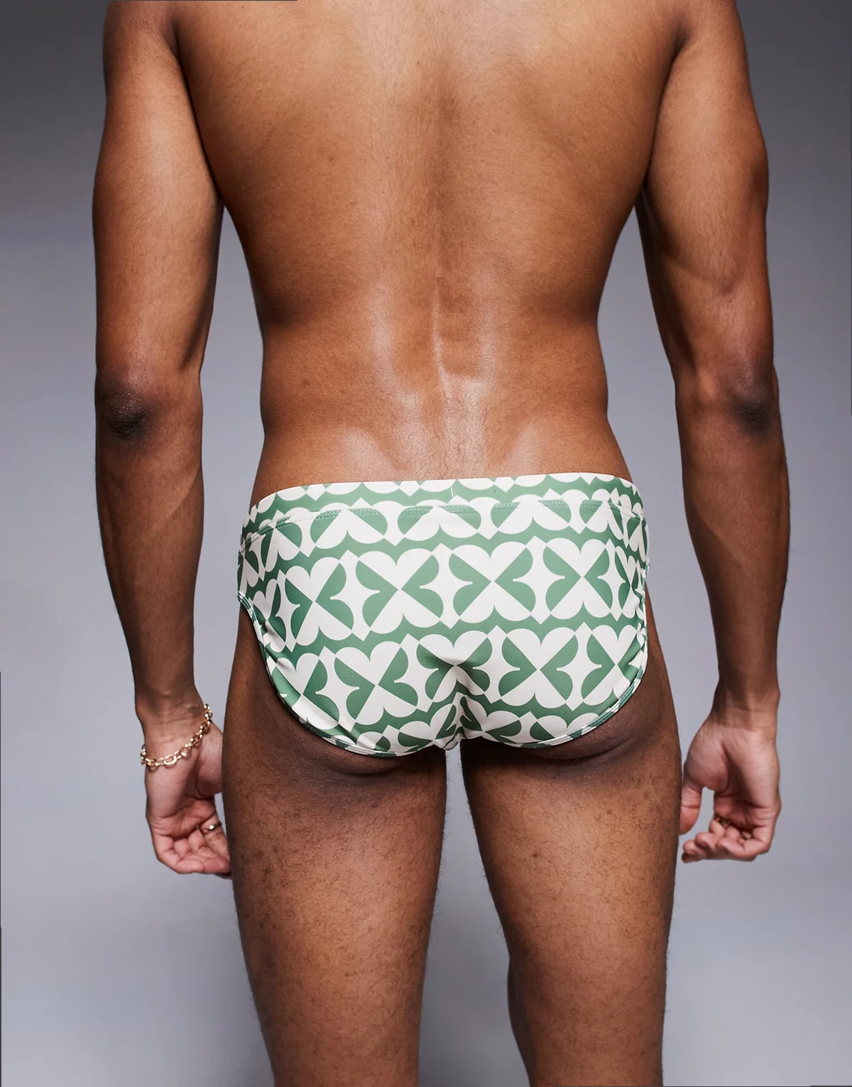 – Badehose in Grün und Weiß mit geometrischem Muster