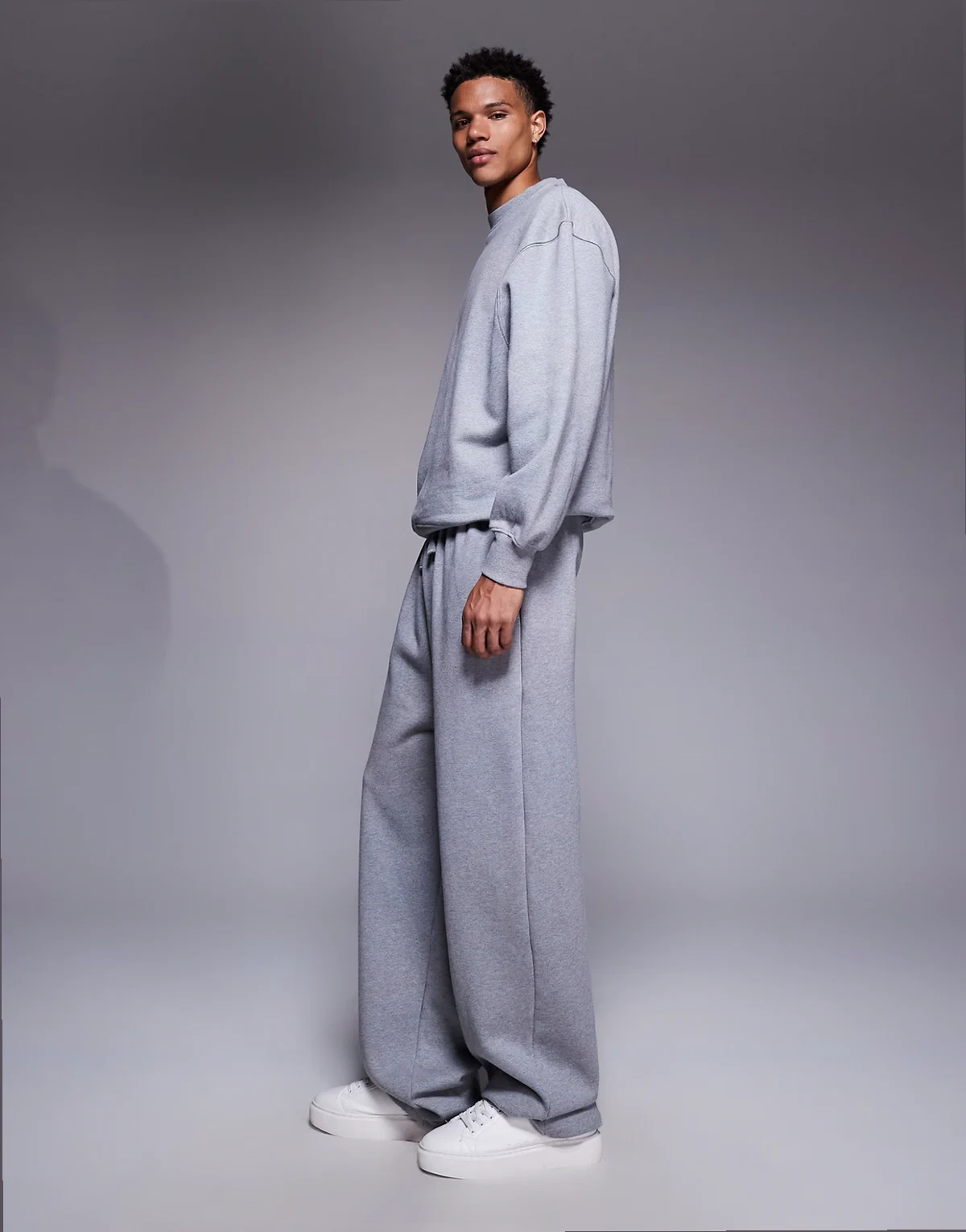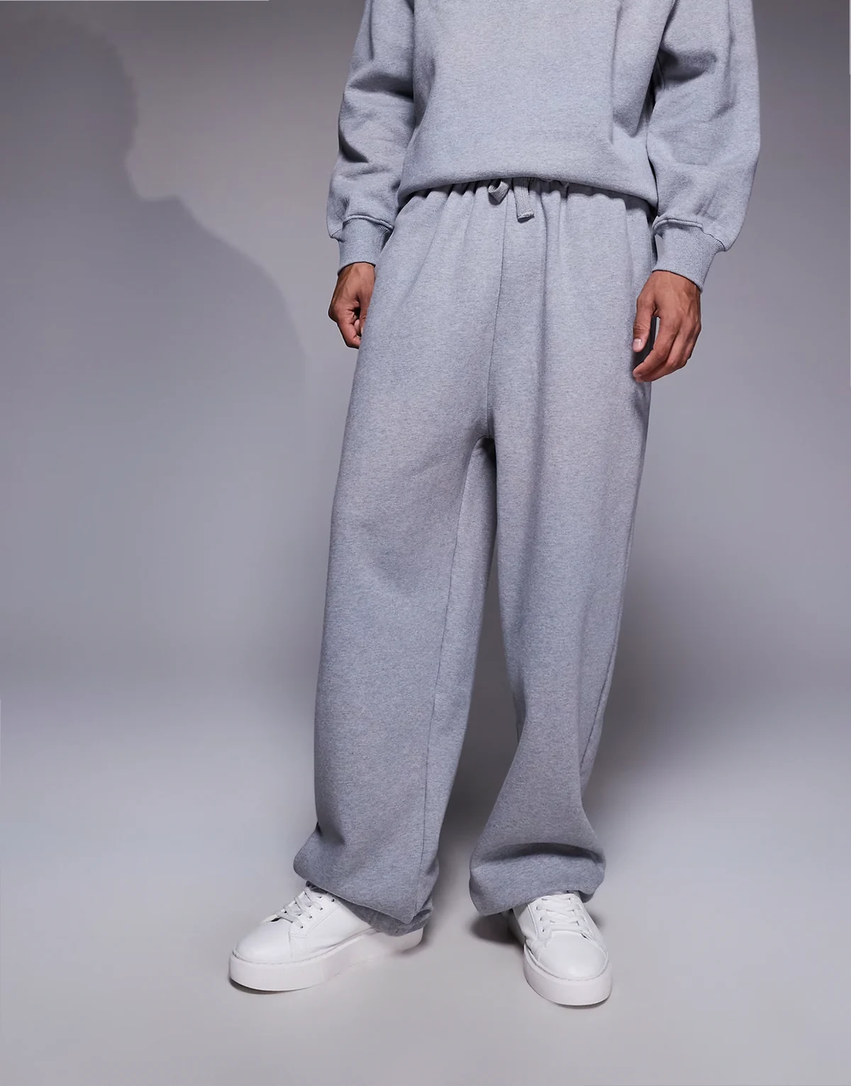 – Hochwertige Jogginghose aus schwerem Stoff in meliertem Grau mit weitem Bein, 400 g/m²