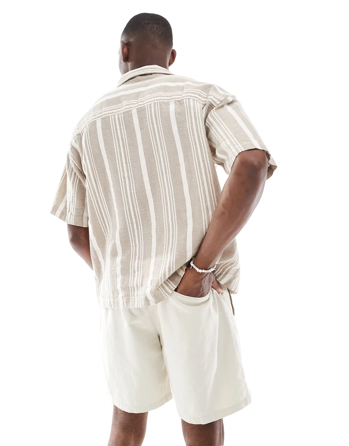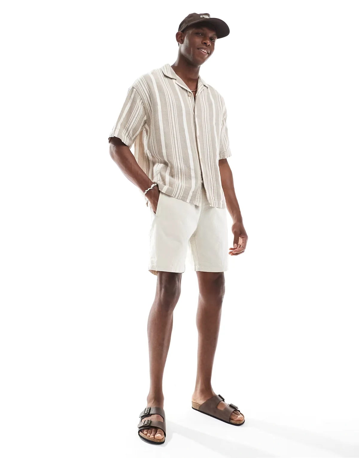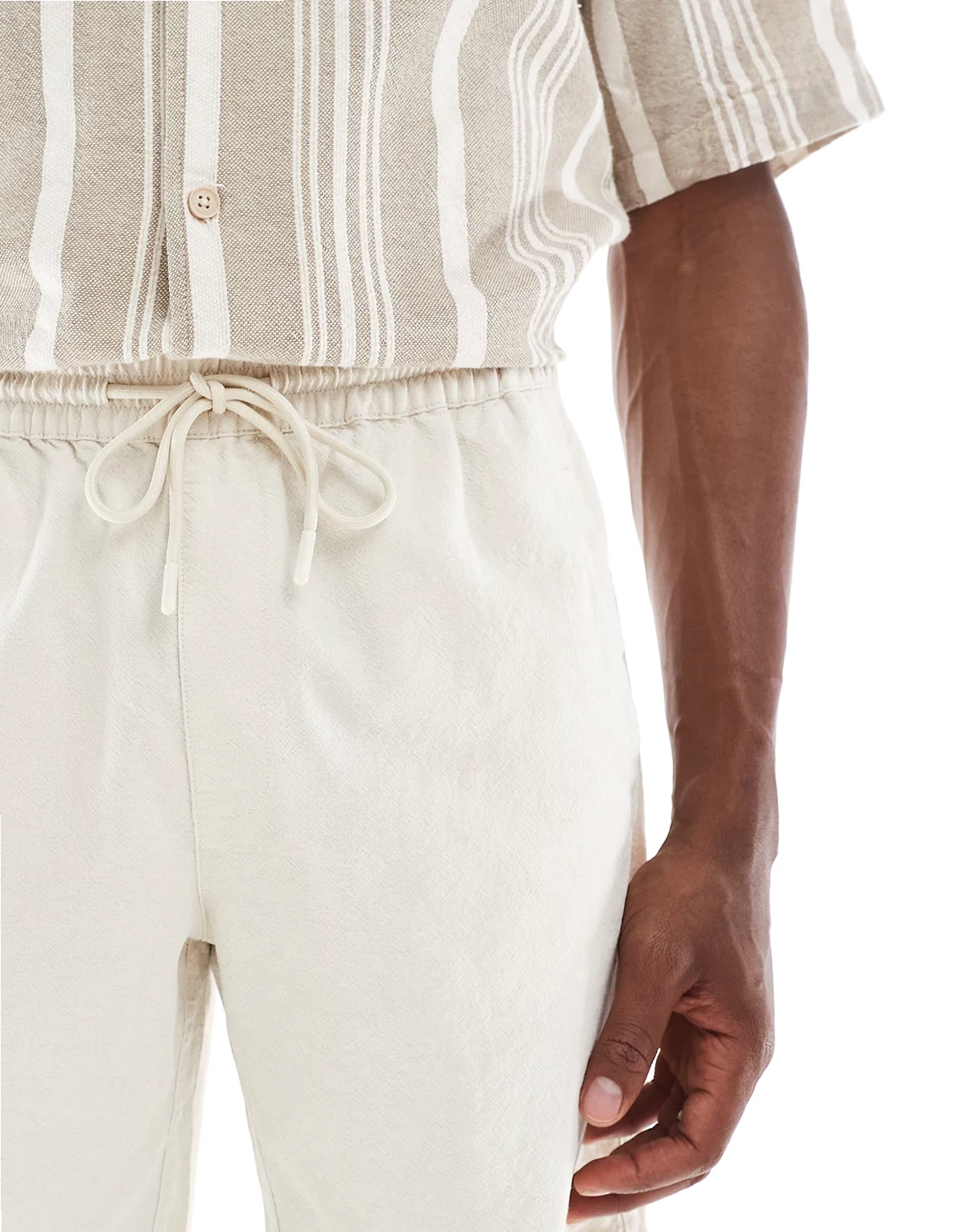 – Schlupf-Shorts in Leinenoptik in hellem Steinbeige