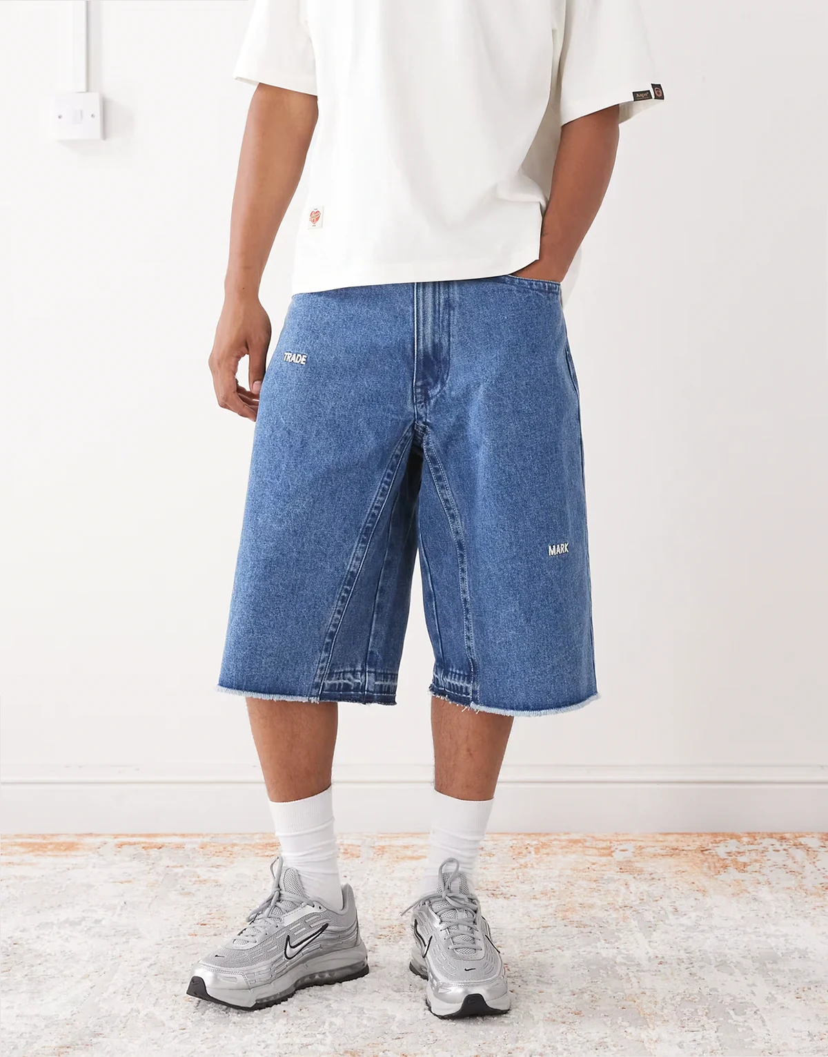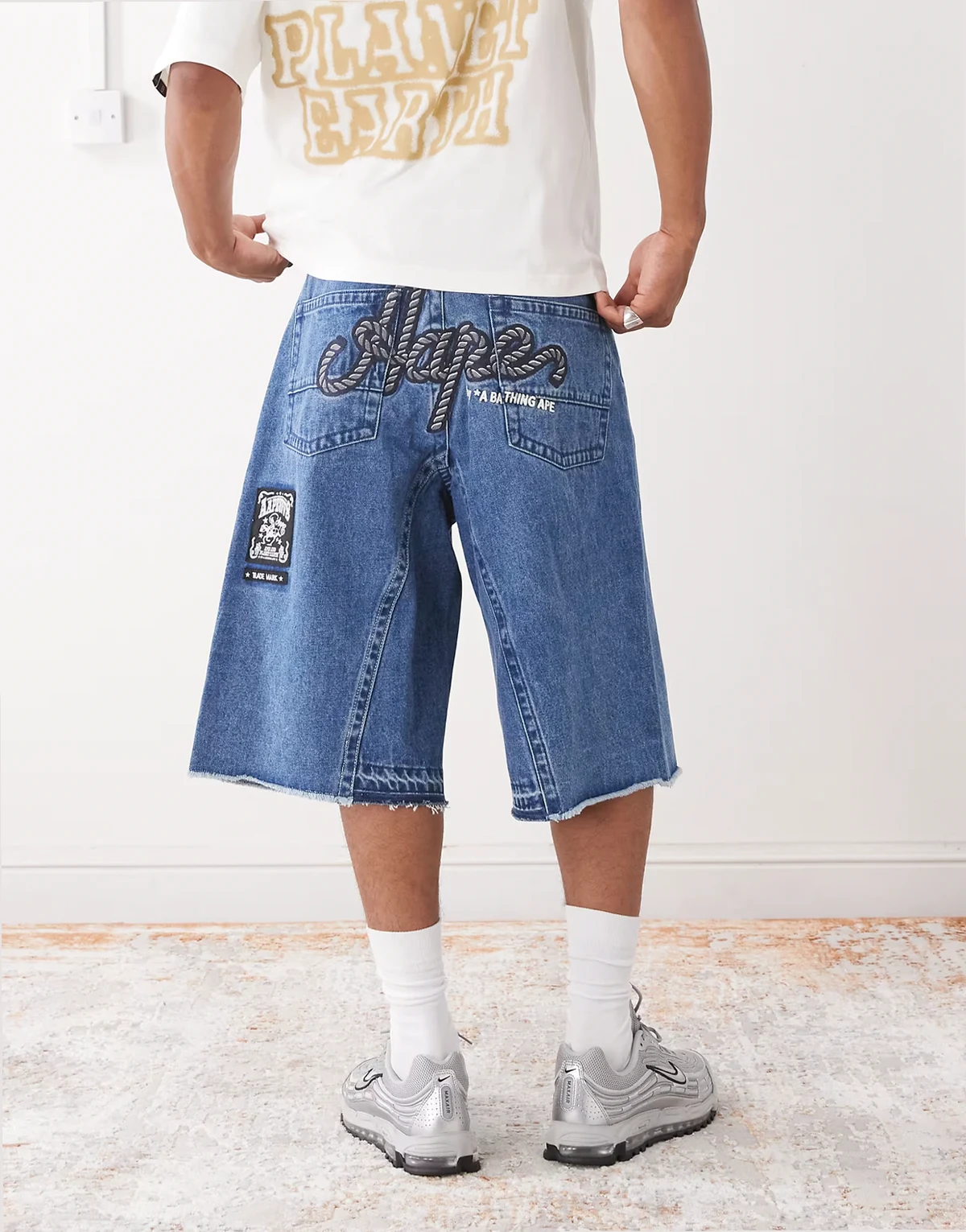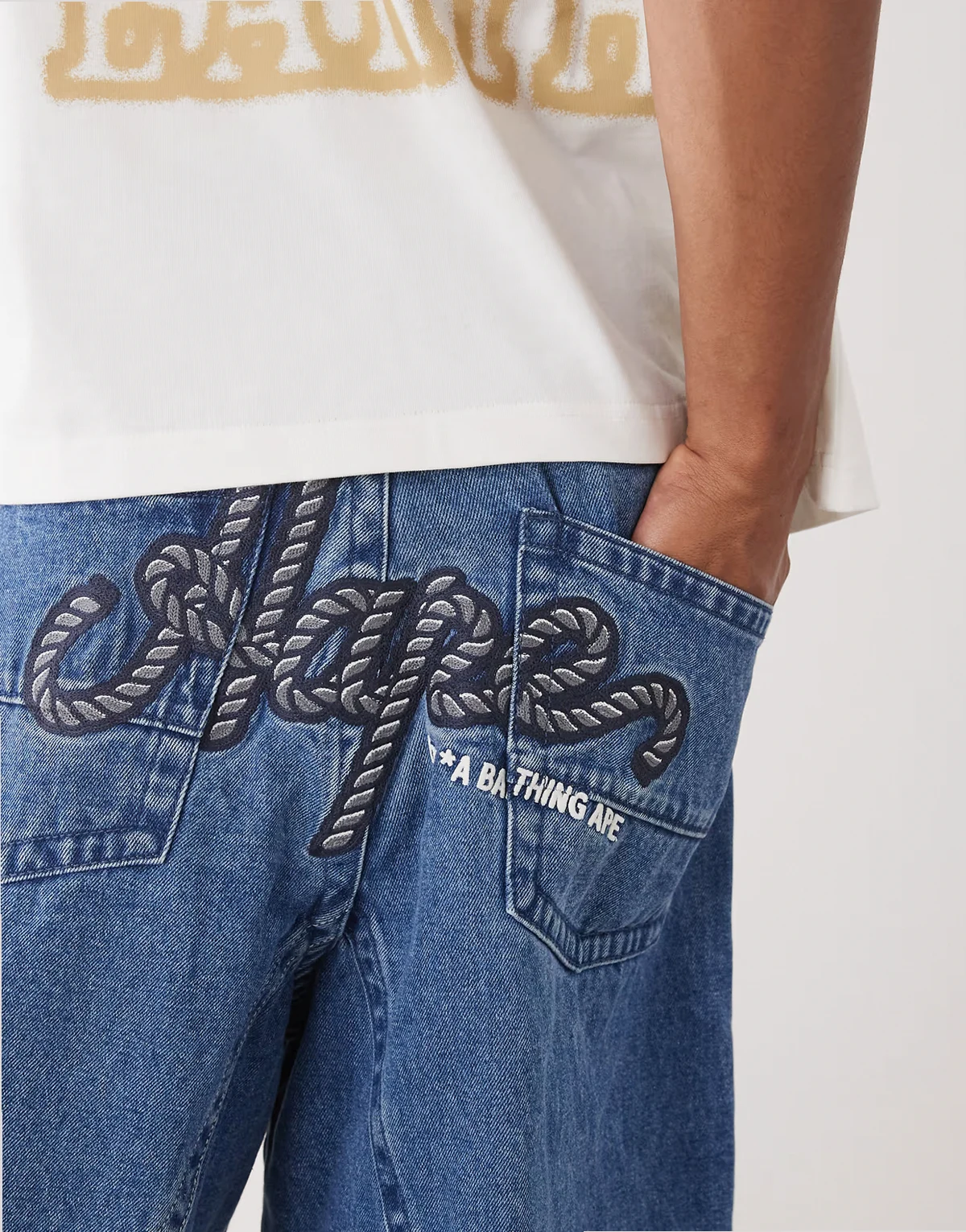 AAPE by A BATHING APE – Jeansshorts in hellblauer Waschung mit Logostickerei