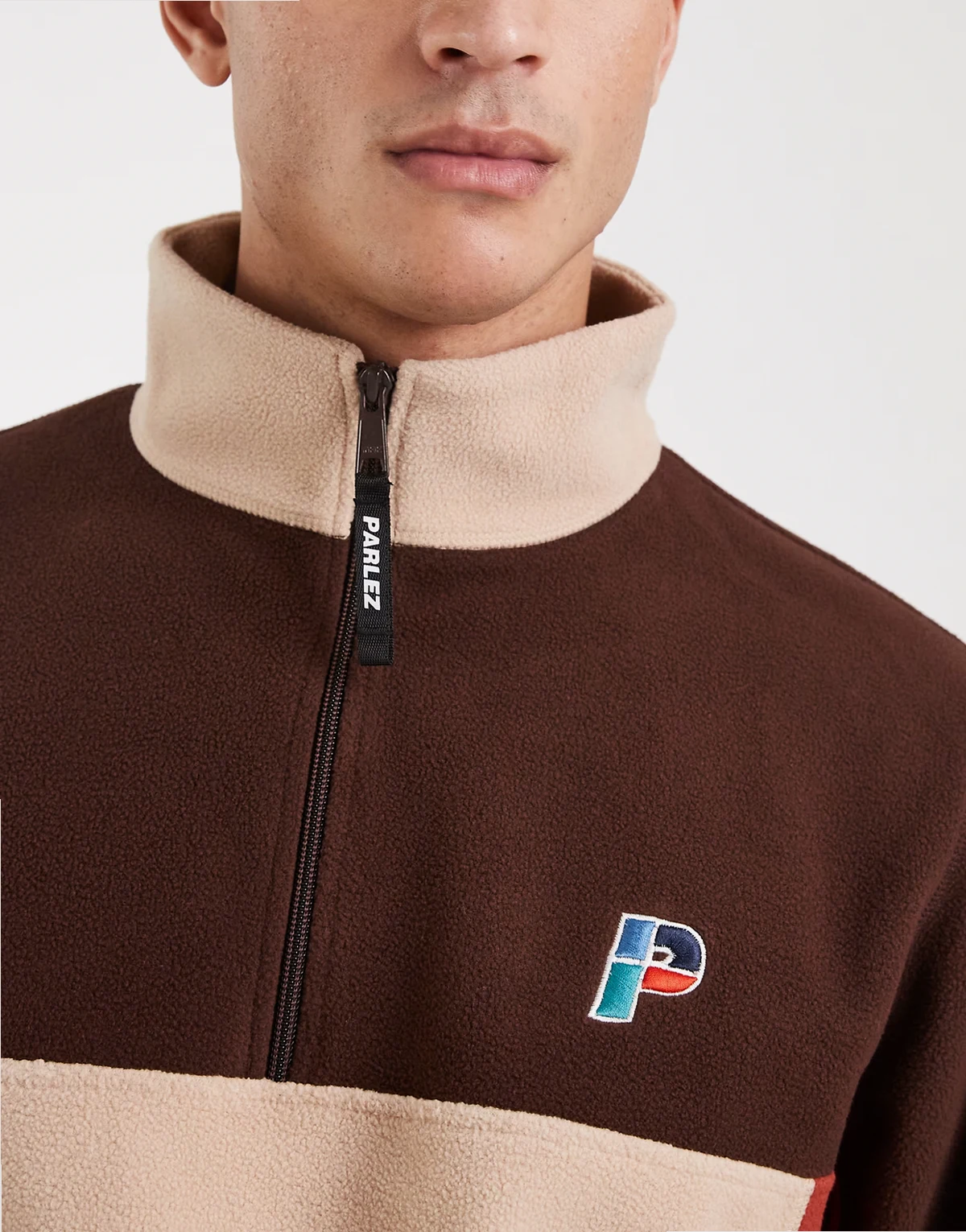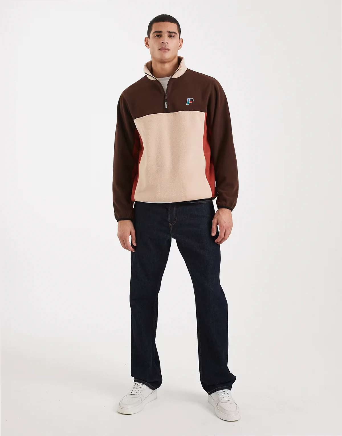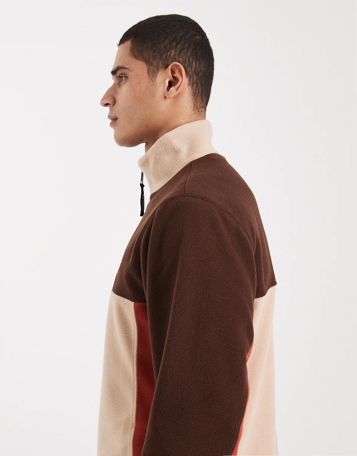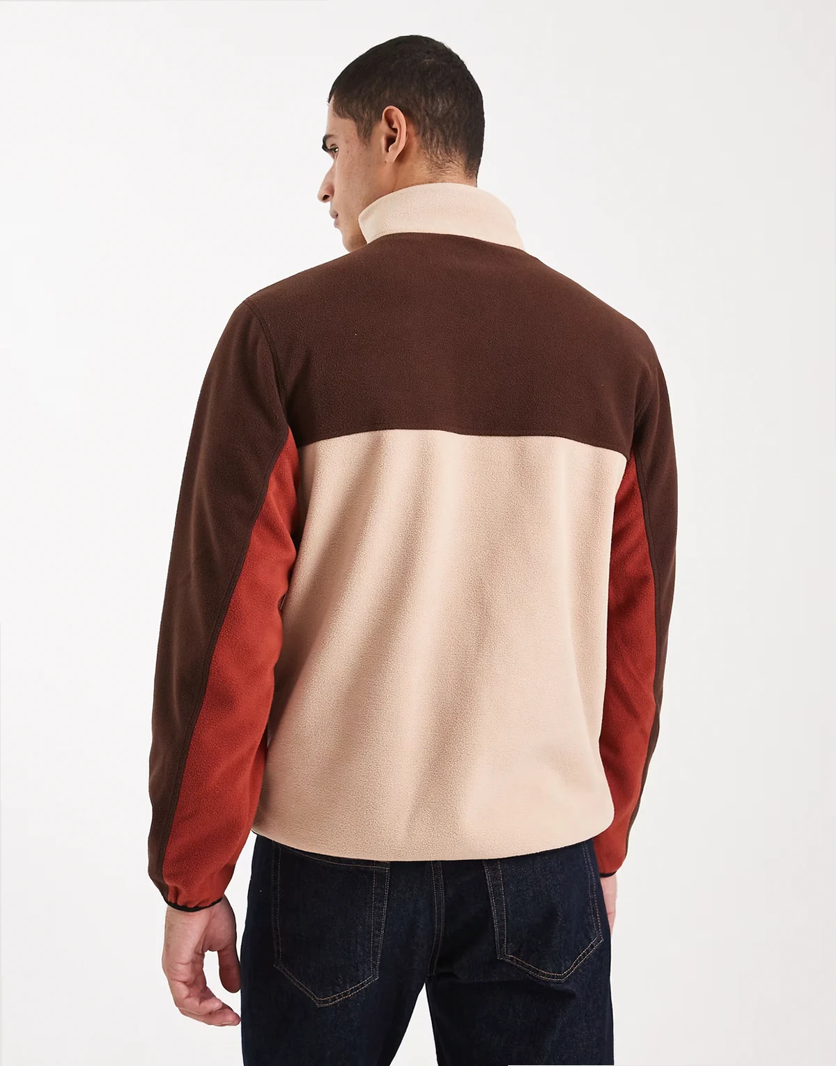 – Fleece-Oberteil mit Farbblock-Design in Braun/Beige und kurzem Reißverschluss