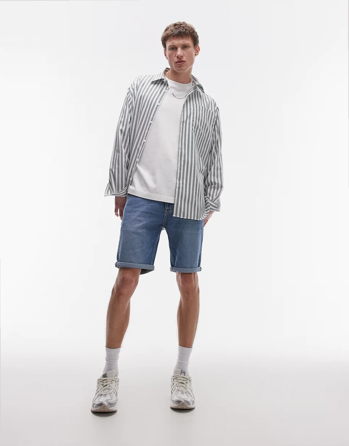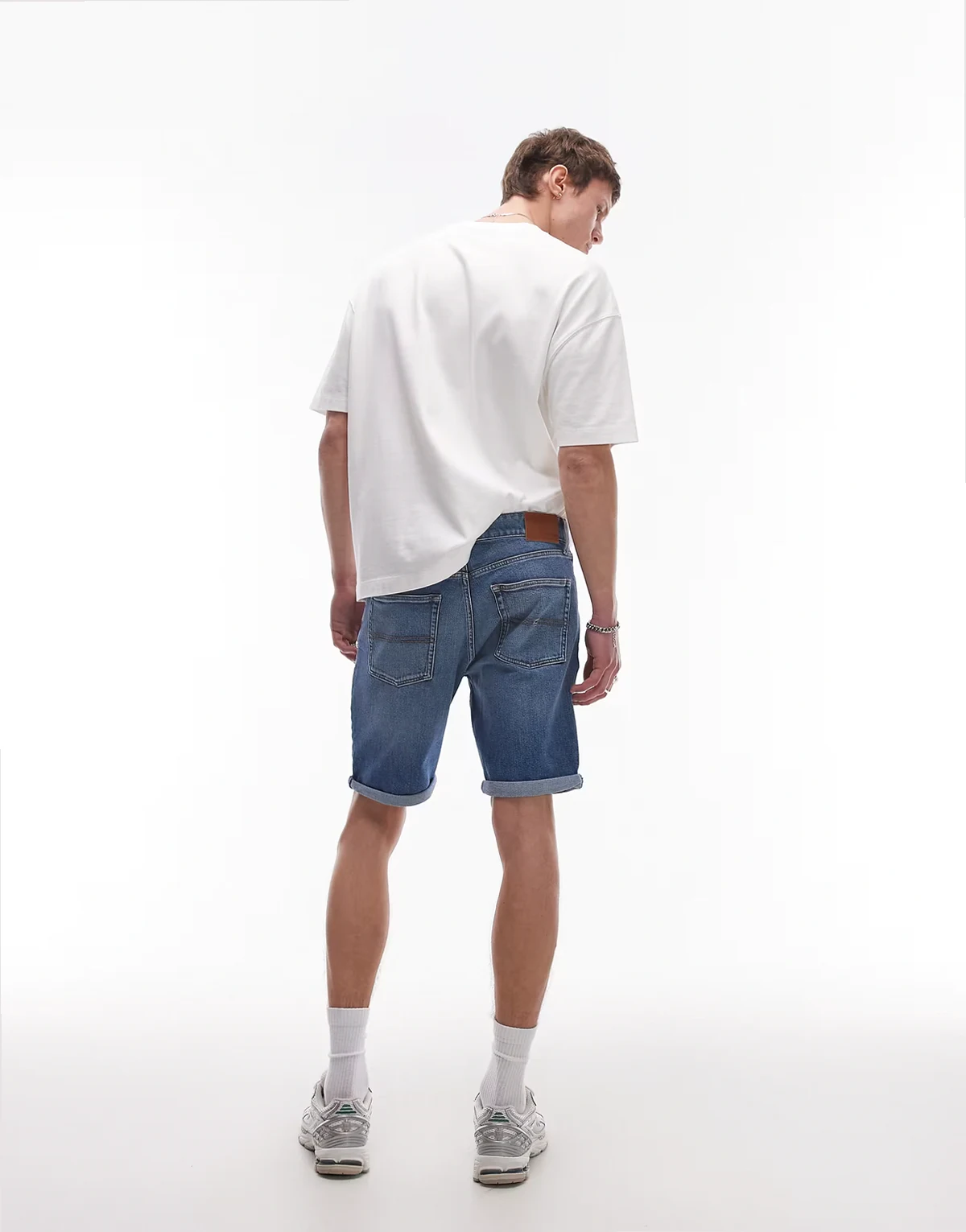 – Scanton – Slim-Fit-Jeans-Shorts in mittlerer Waschung mit Umschlag