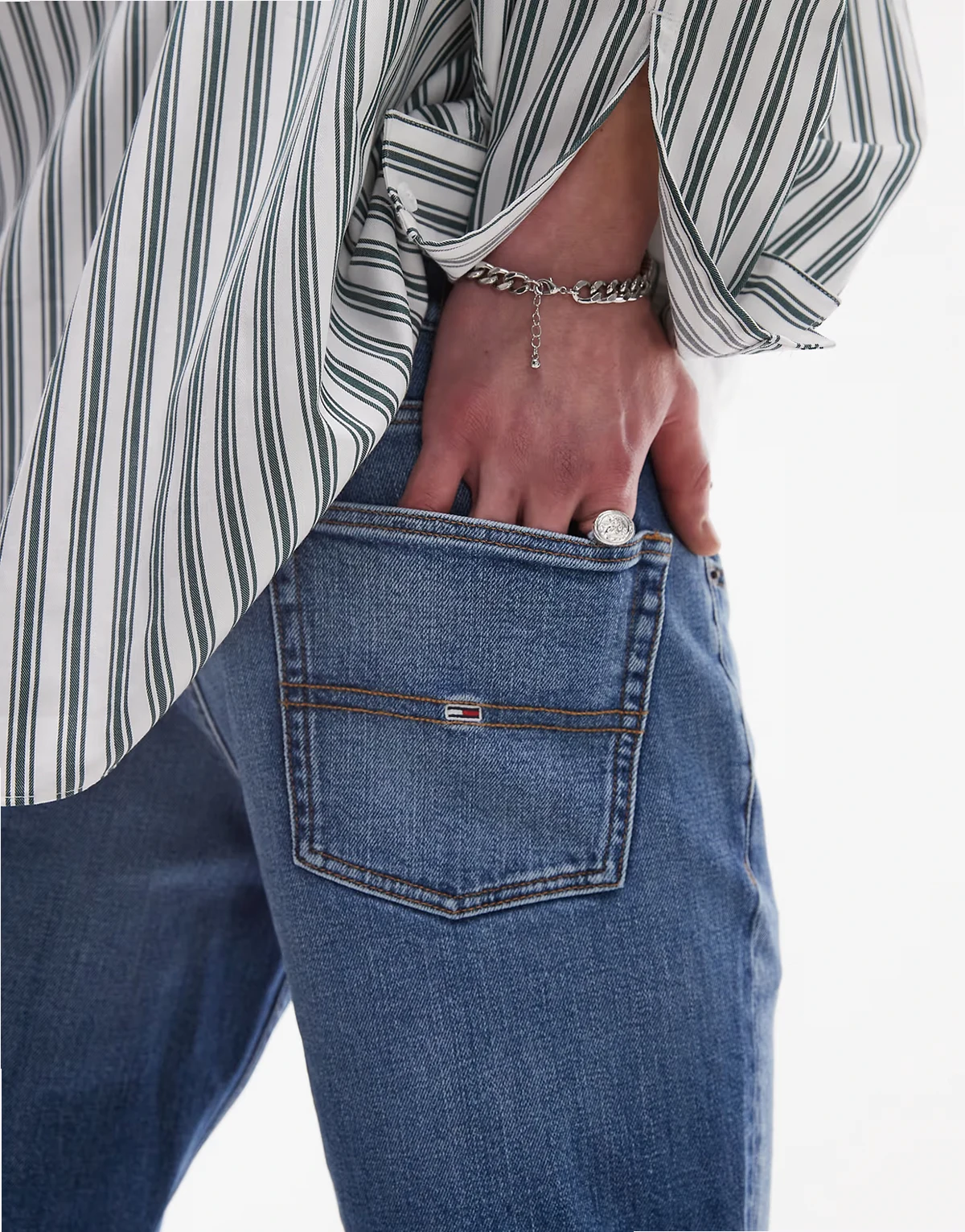 Jeansstoff mit Stretchanteil: mittelblaue Waschung