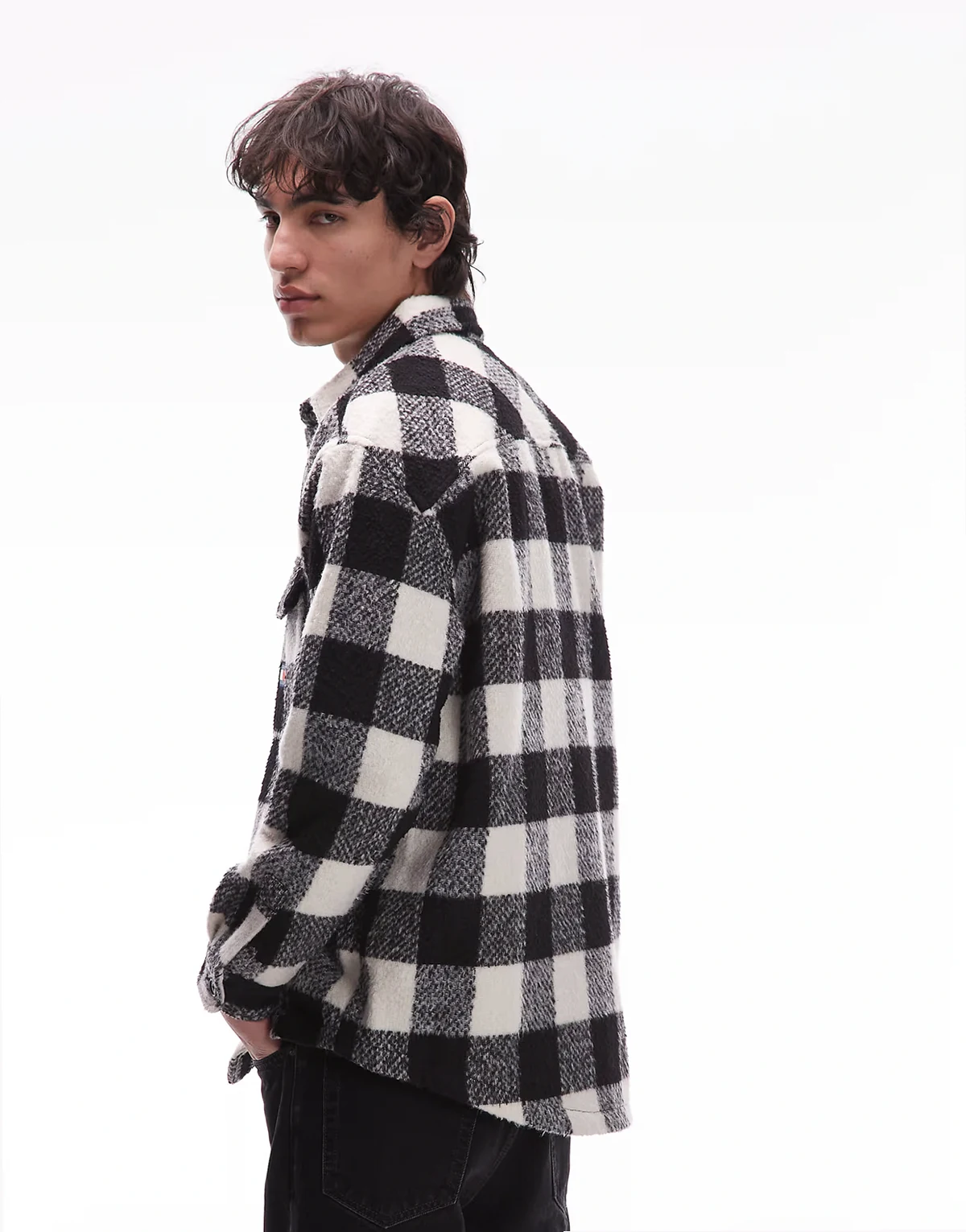 – Hemdjacke in kariertem Schwarz