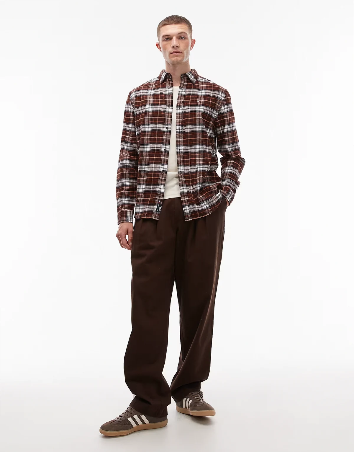 – Regular-Fit-Flanellhemd in kariertem Dunkelrot