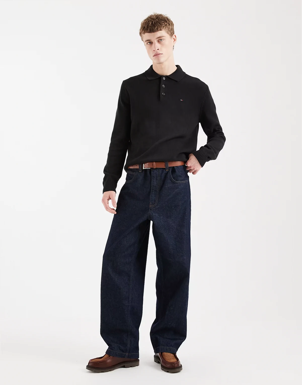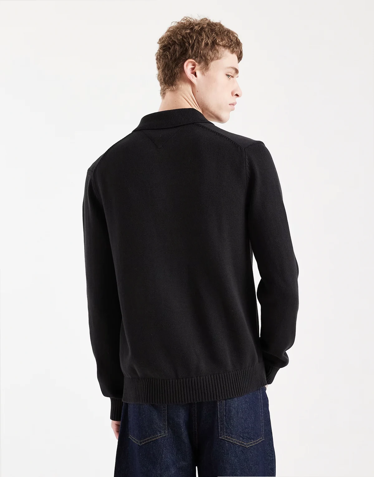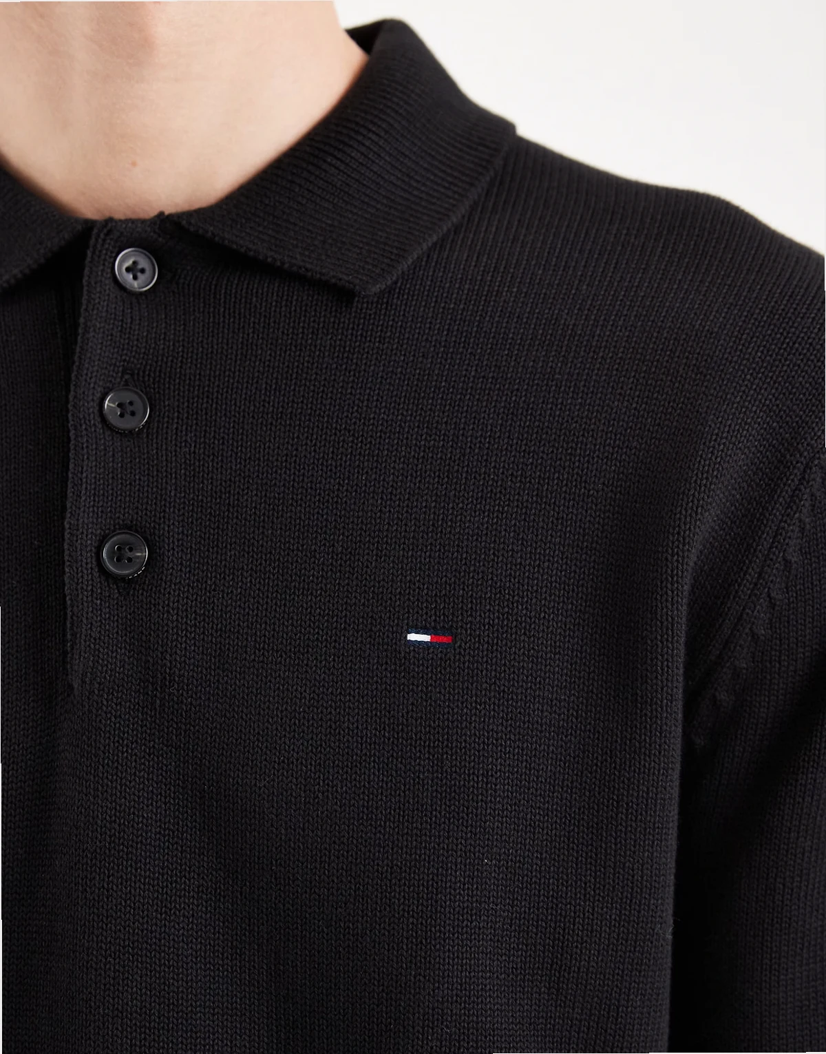 – Langärmliges Polohemd in Schwarz mit Logo auf der Brust