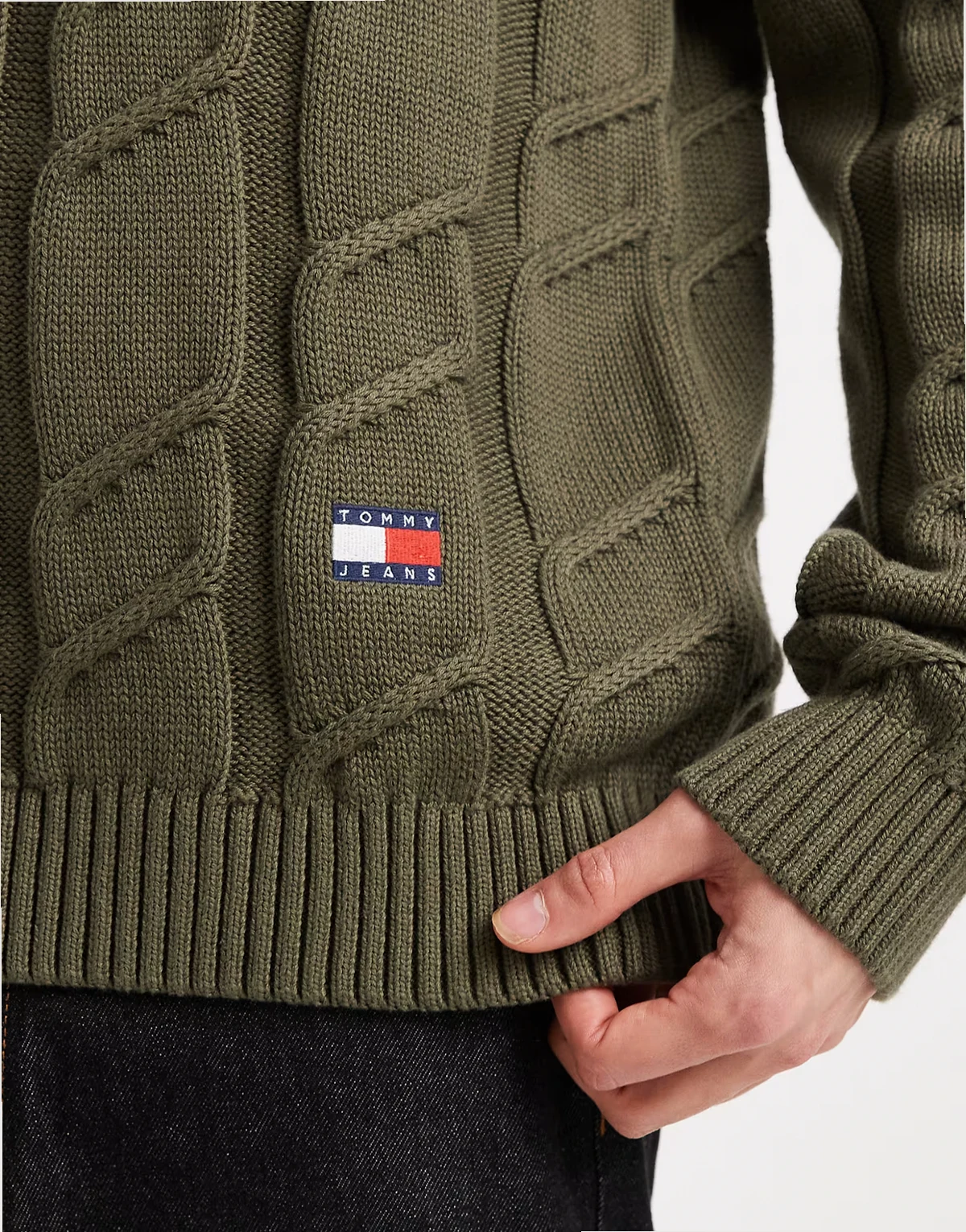 „Tommy Jeans“-Logo und Textapplikation über dem Saum