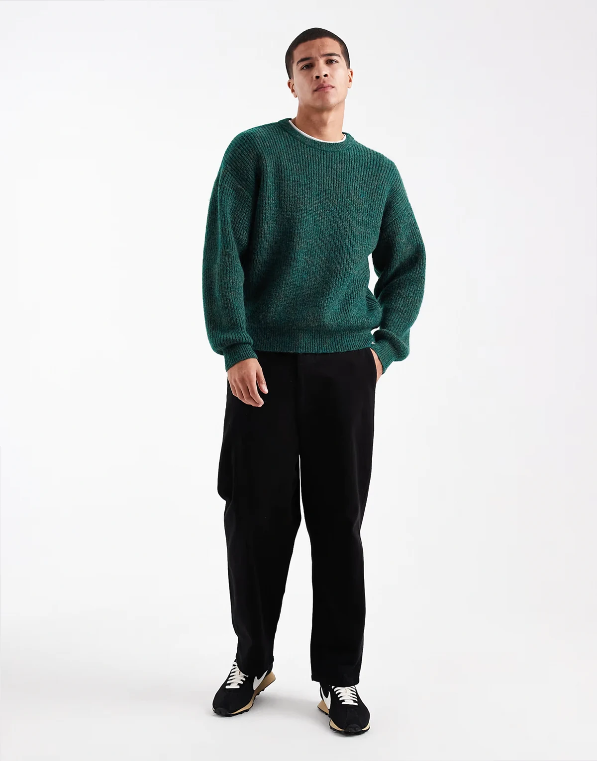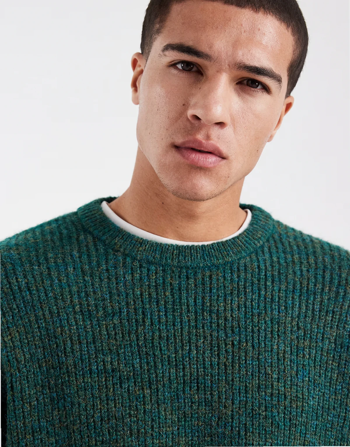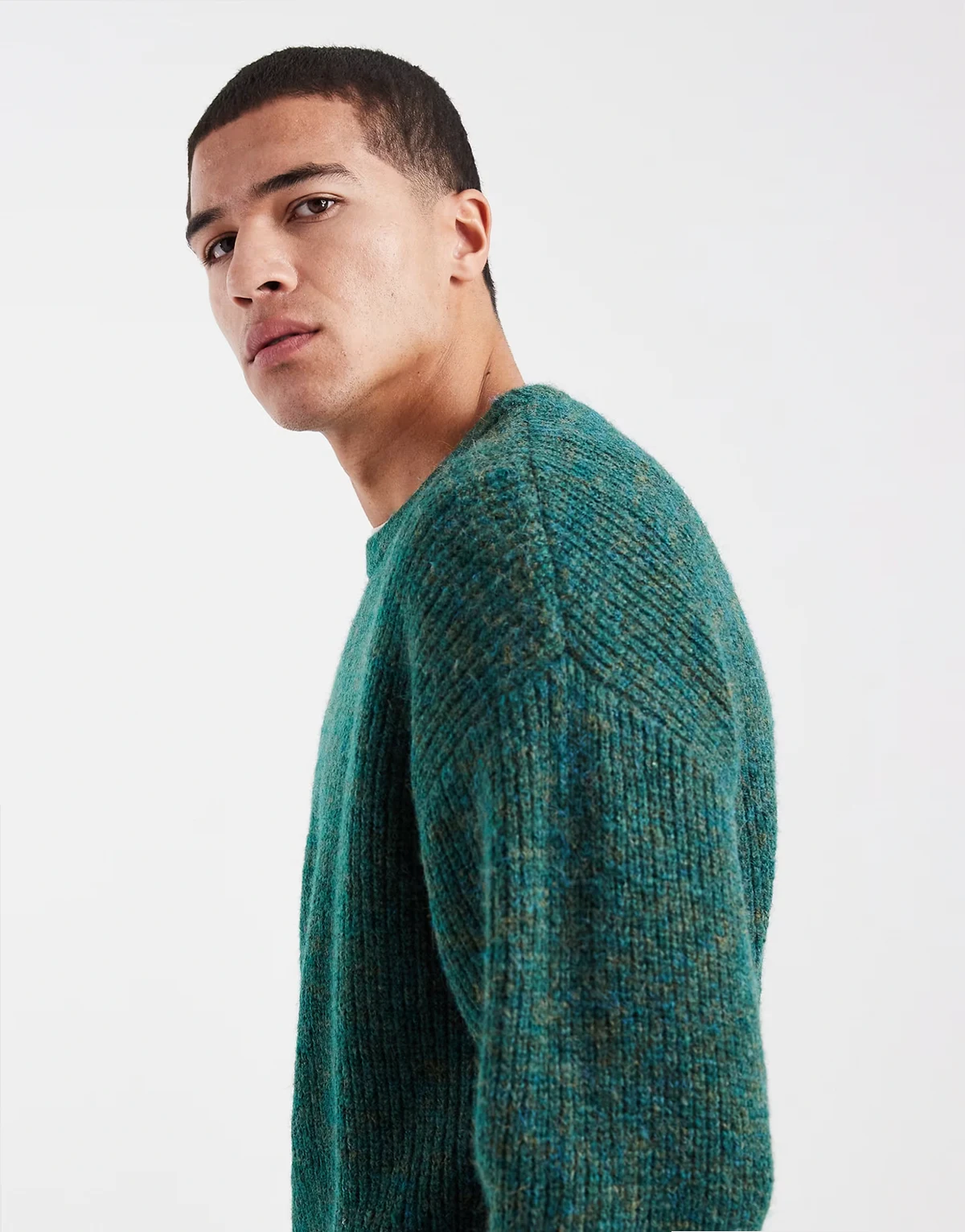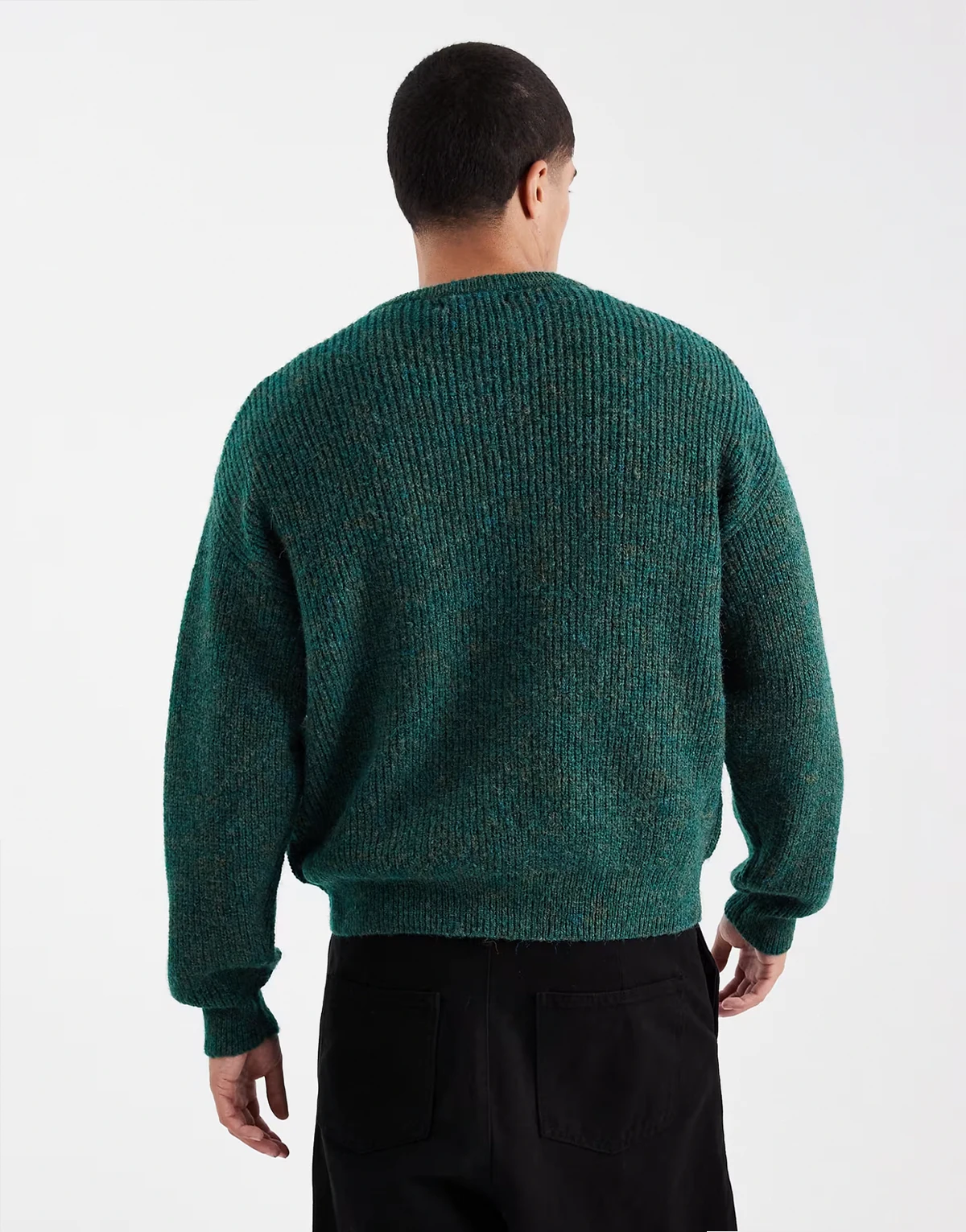 – Flauschiger Boxy-Fit-Strickpullover in Grün mit Rundhalsausschnitt