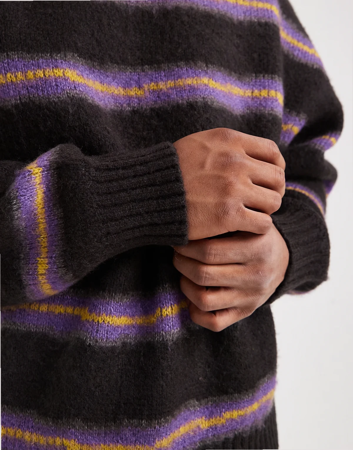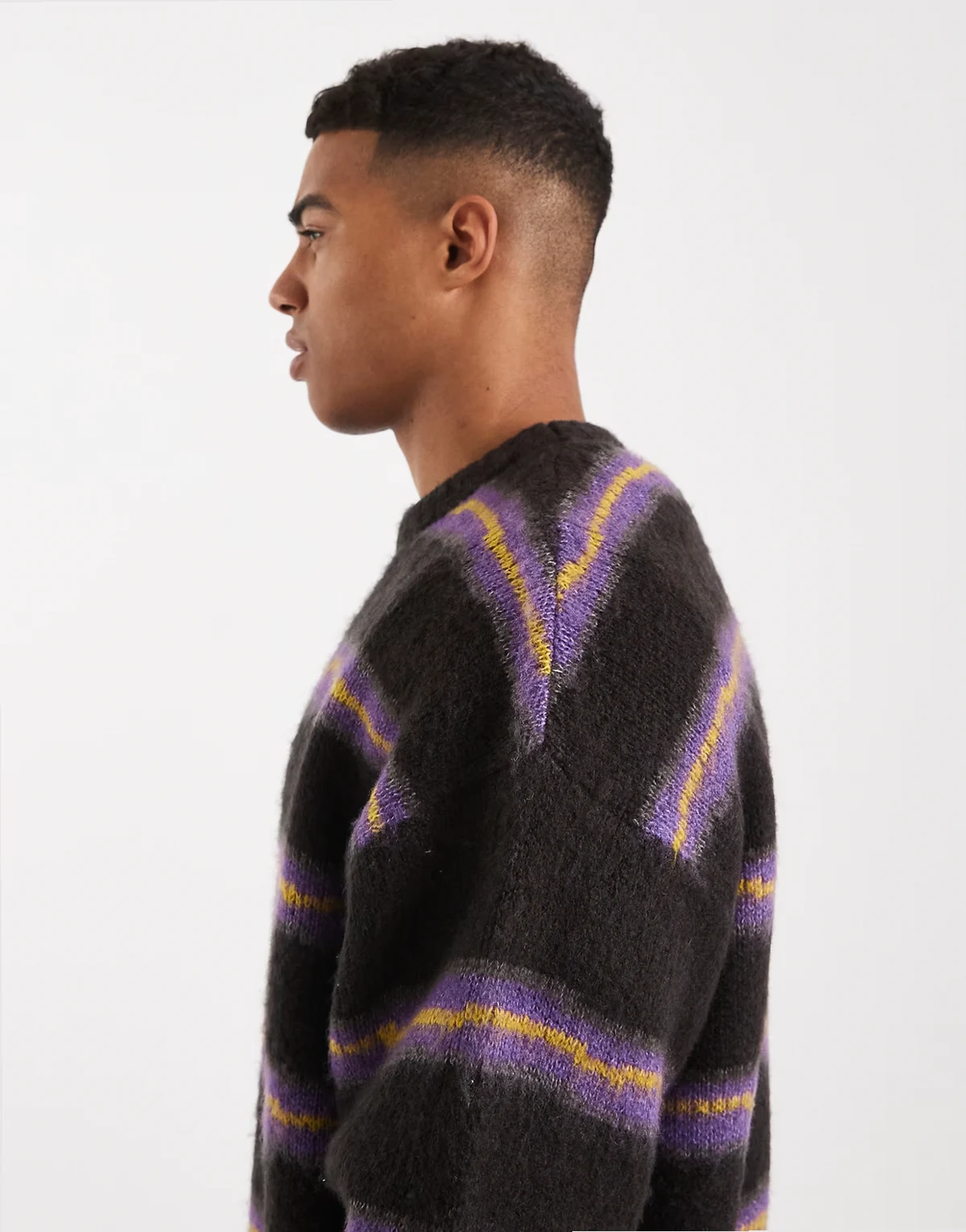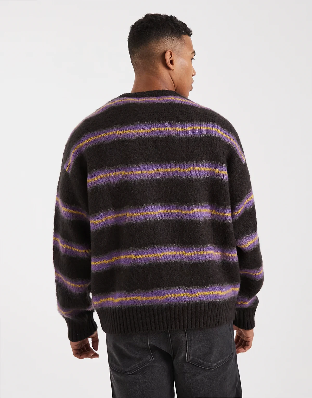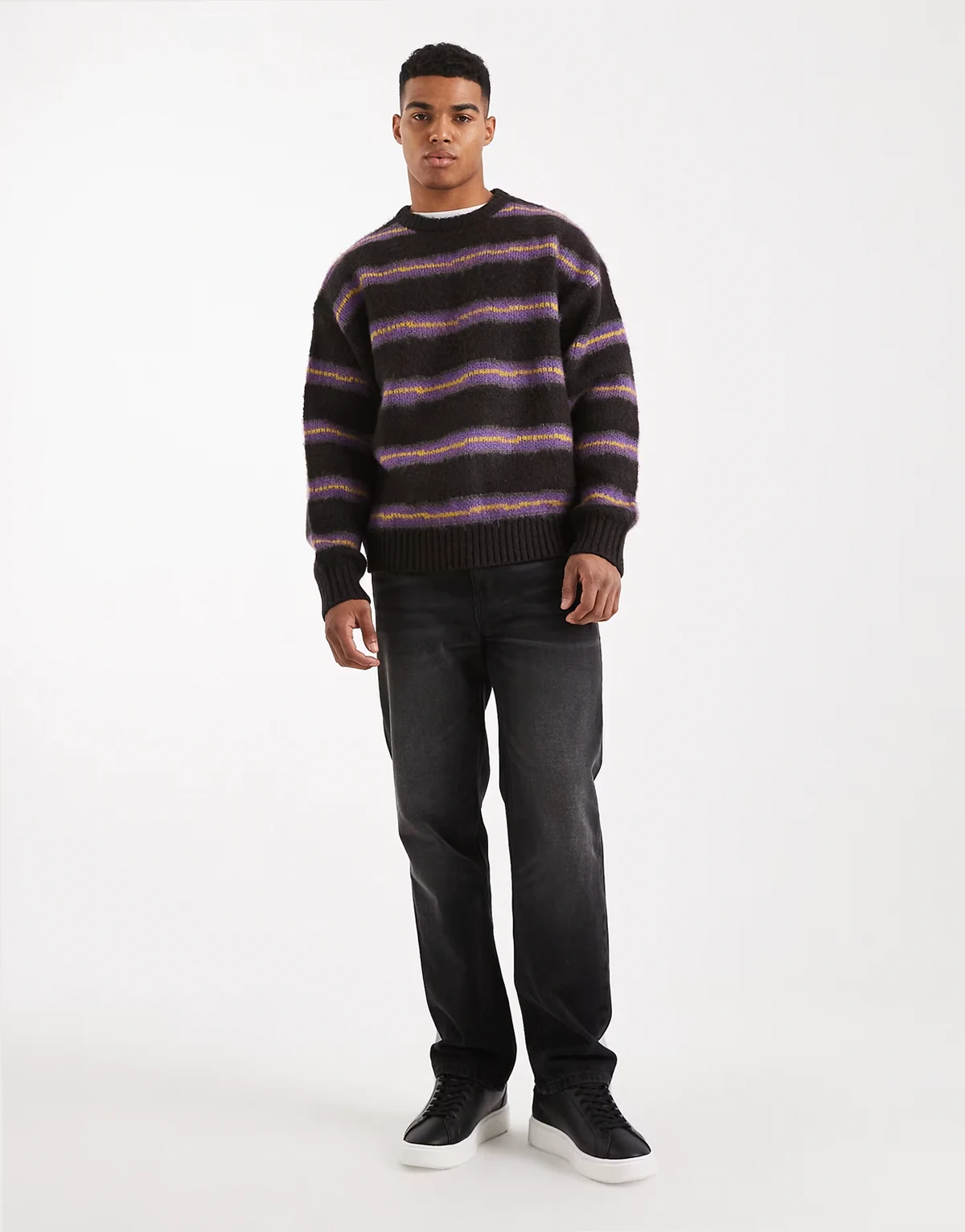 – Flauschiger Boxy-Fit-Pullover in Schwarz mit Streifen und Rundhalsausschnitt