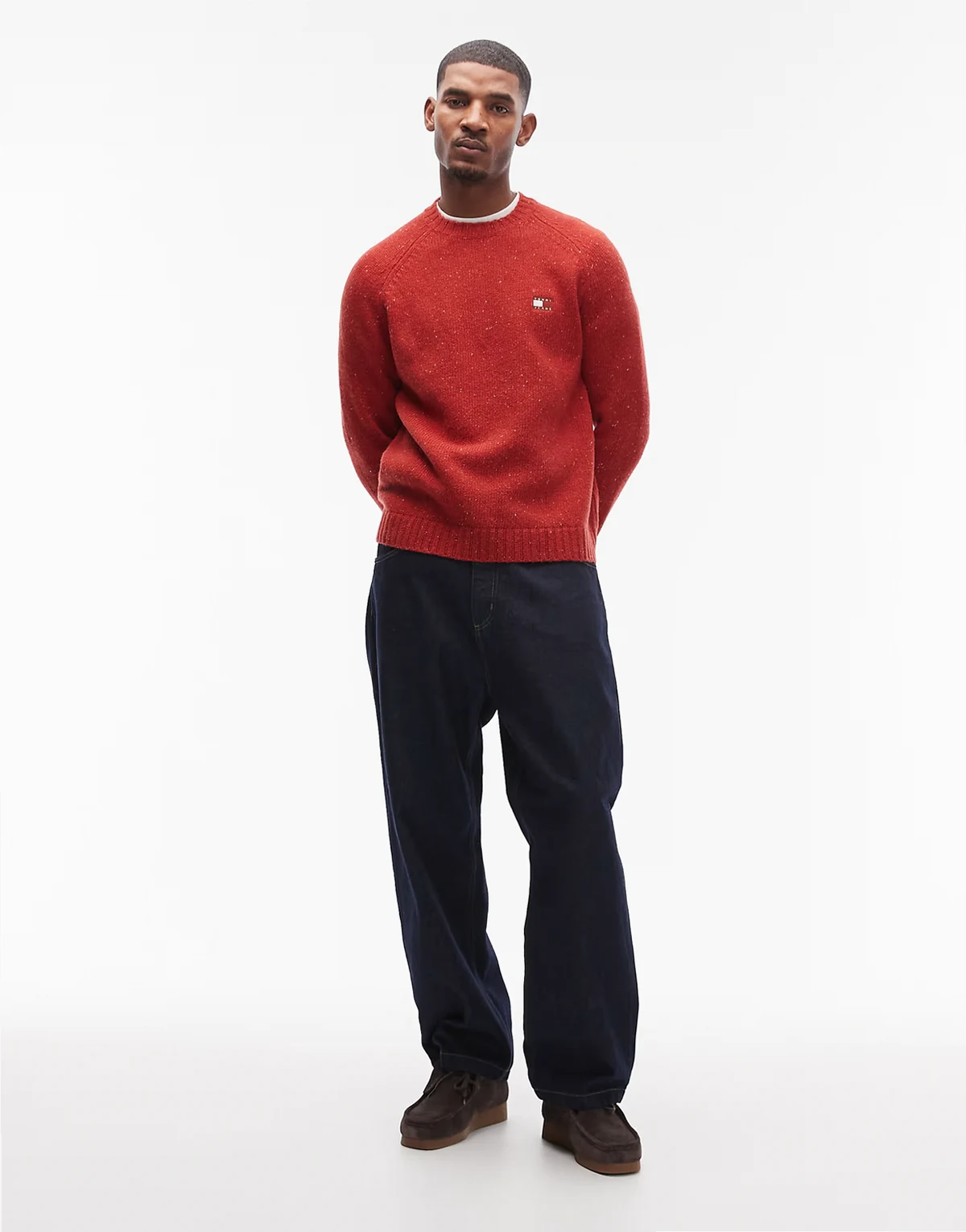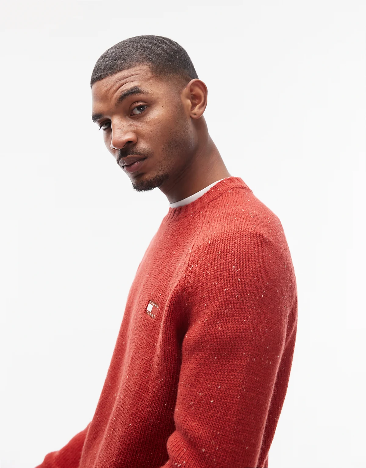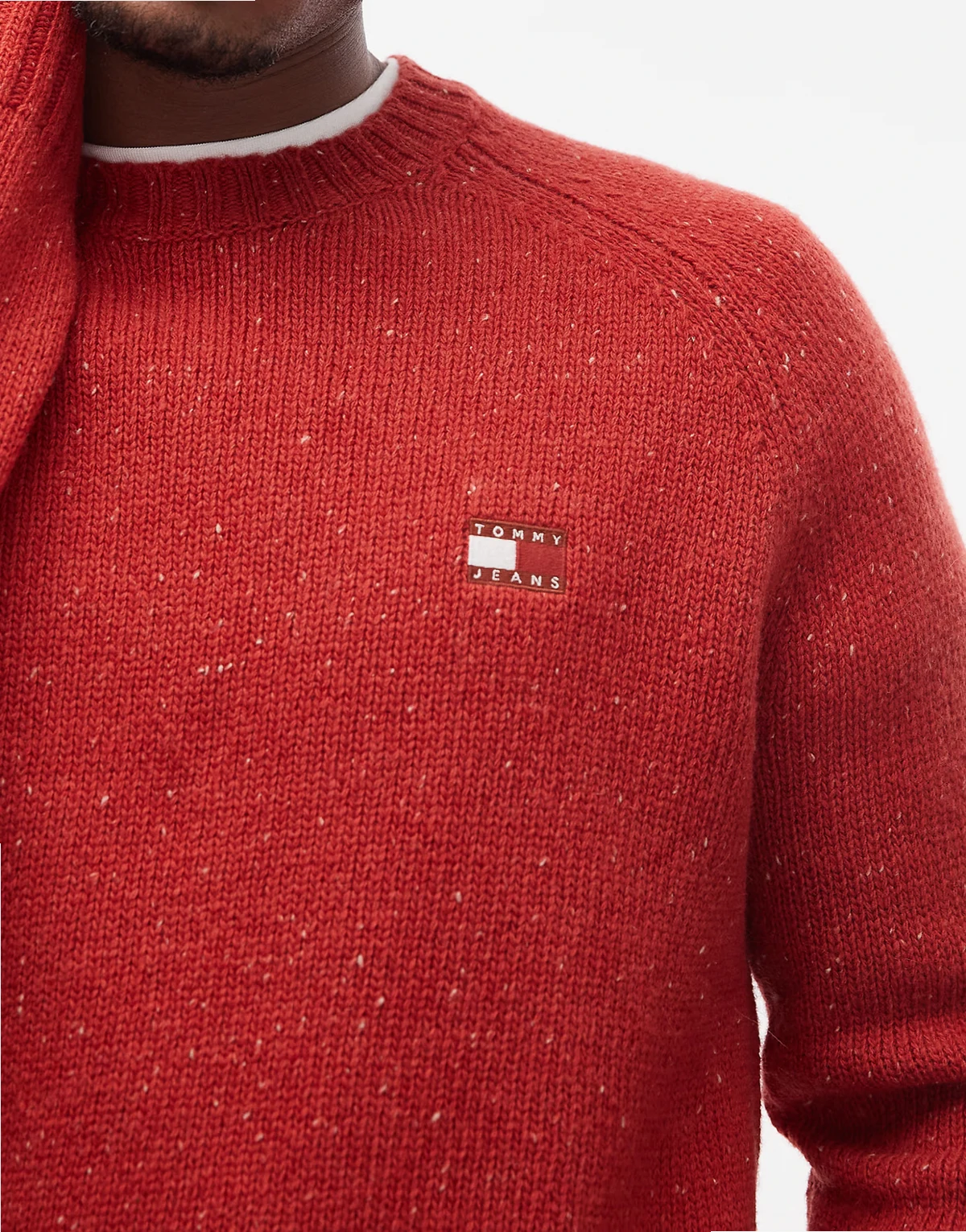 – Melierter Pullover in Rot mit Flag-Logo auf der Brust