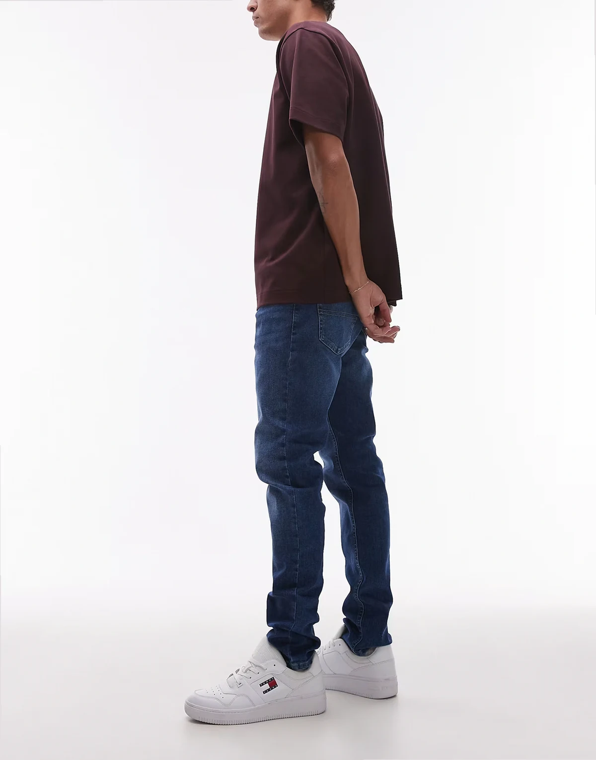 Jeansstoff ohne Stretchanteil: Dunkelblaue Waschung
