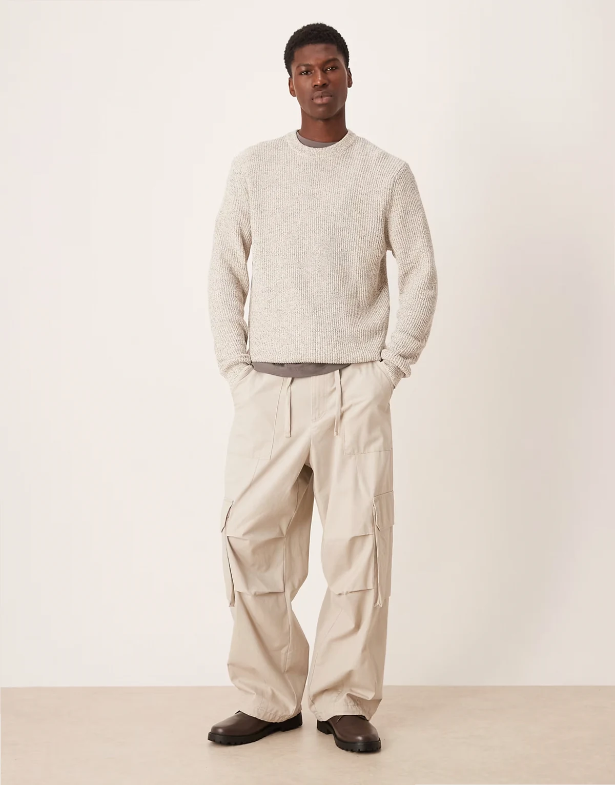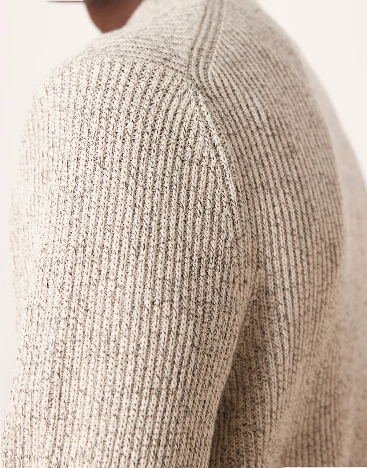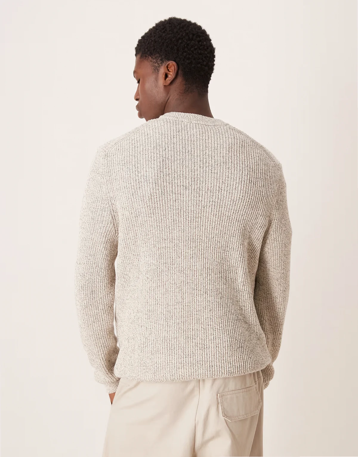 – Pullover aus Baumwoll-Grobstrick in Natur mit Rundhalsausschnitt