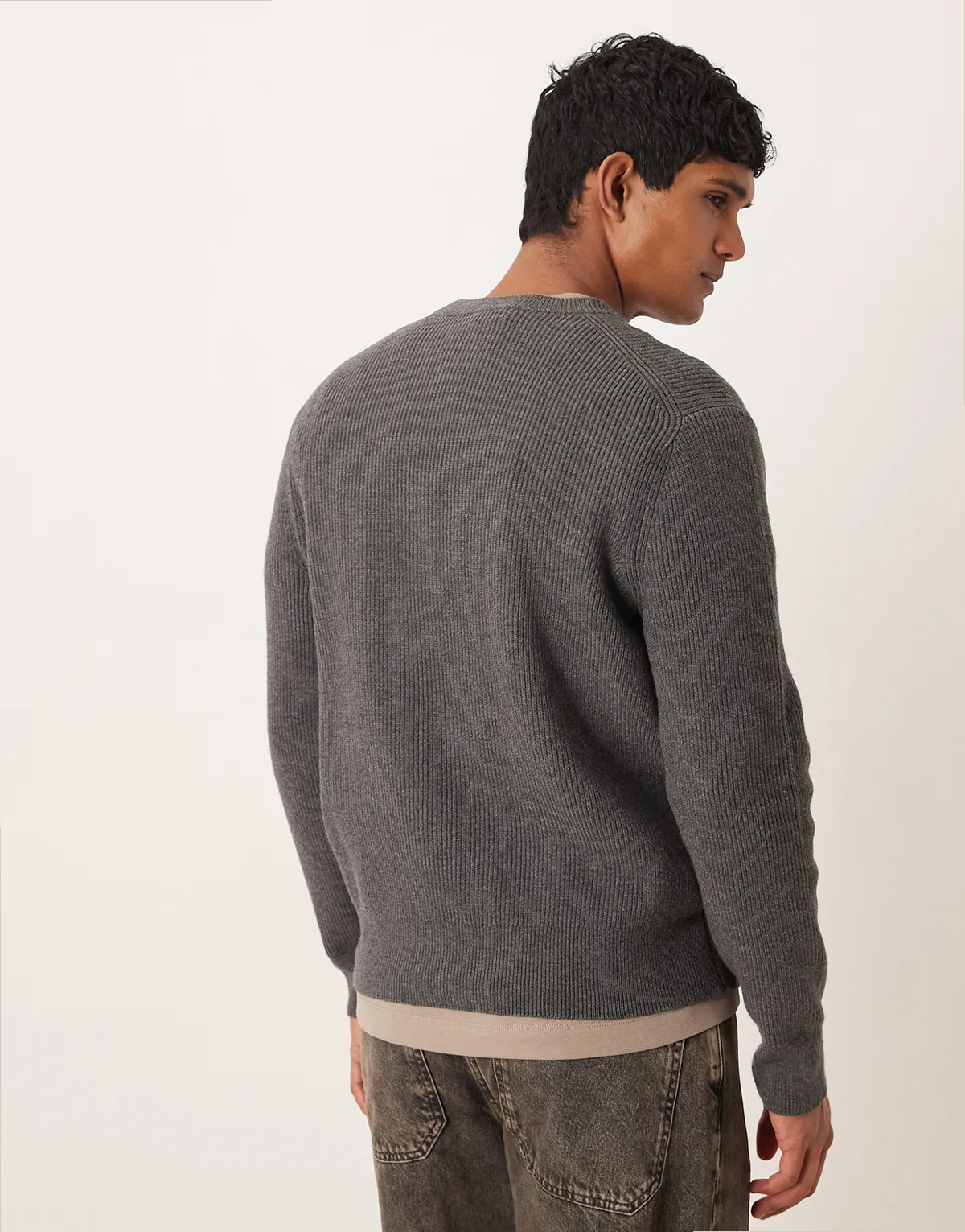 – Gerippter Relaxed-Fit-Pullover aus Wollmix in Anthrazit