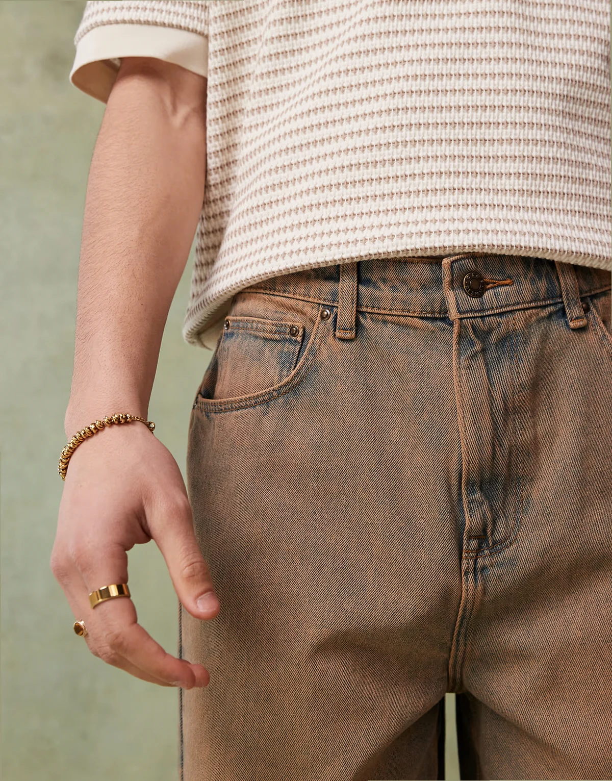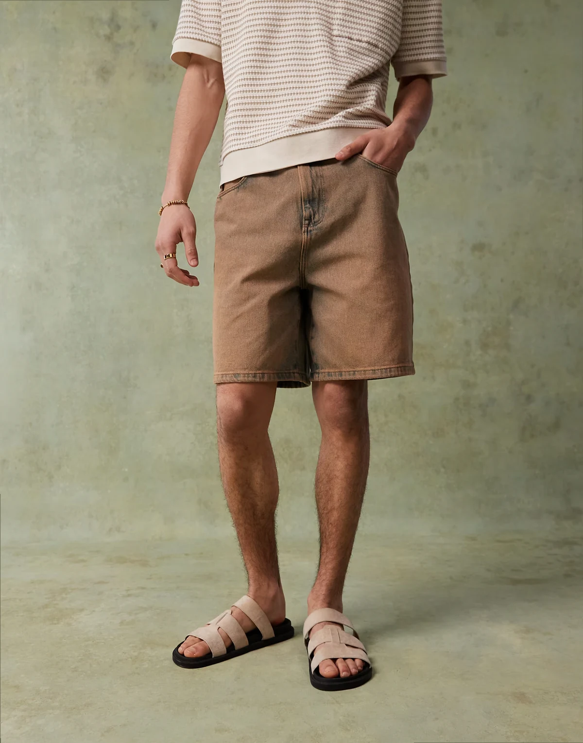 – Jeans-Jorts in normaler Länge mit braunem Farbstich