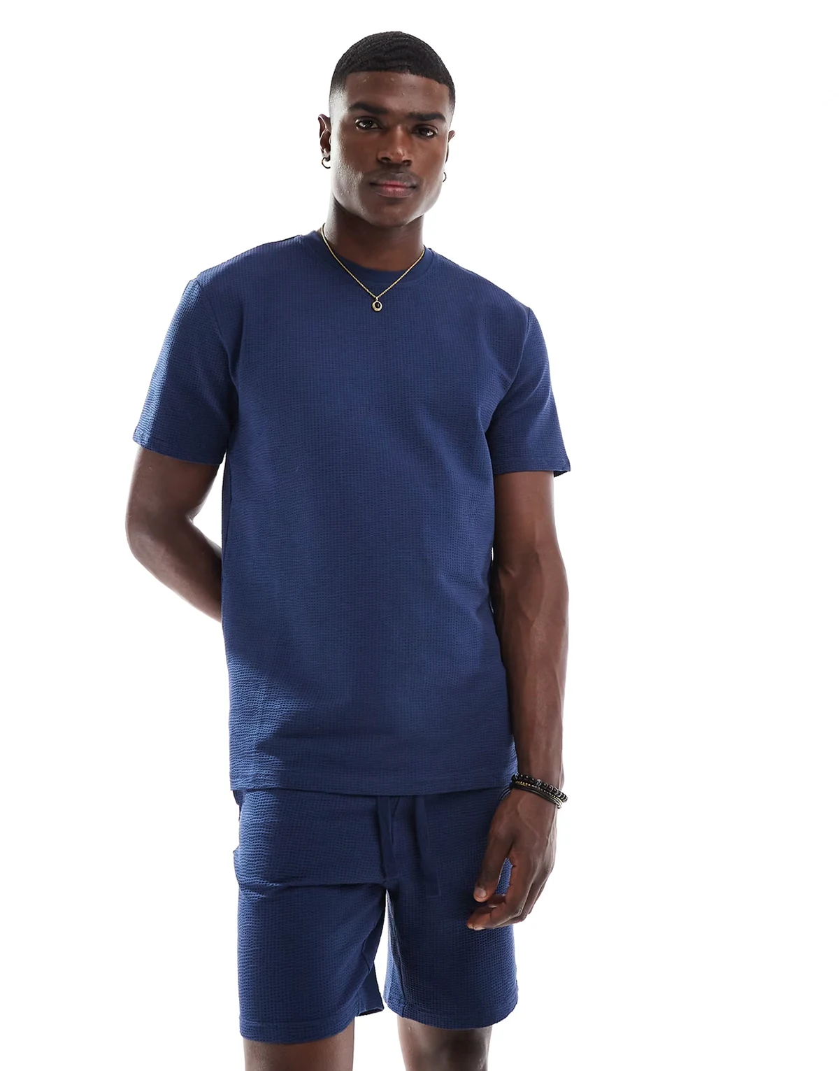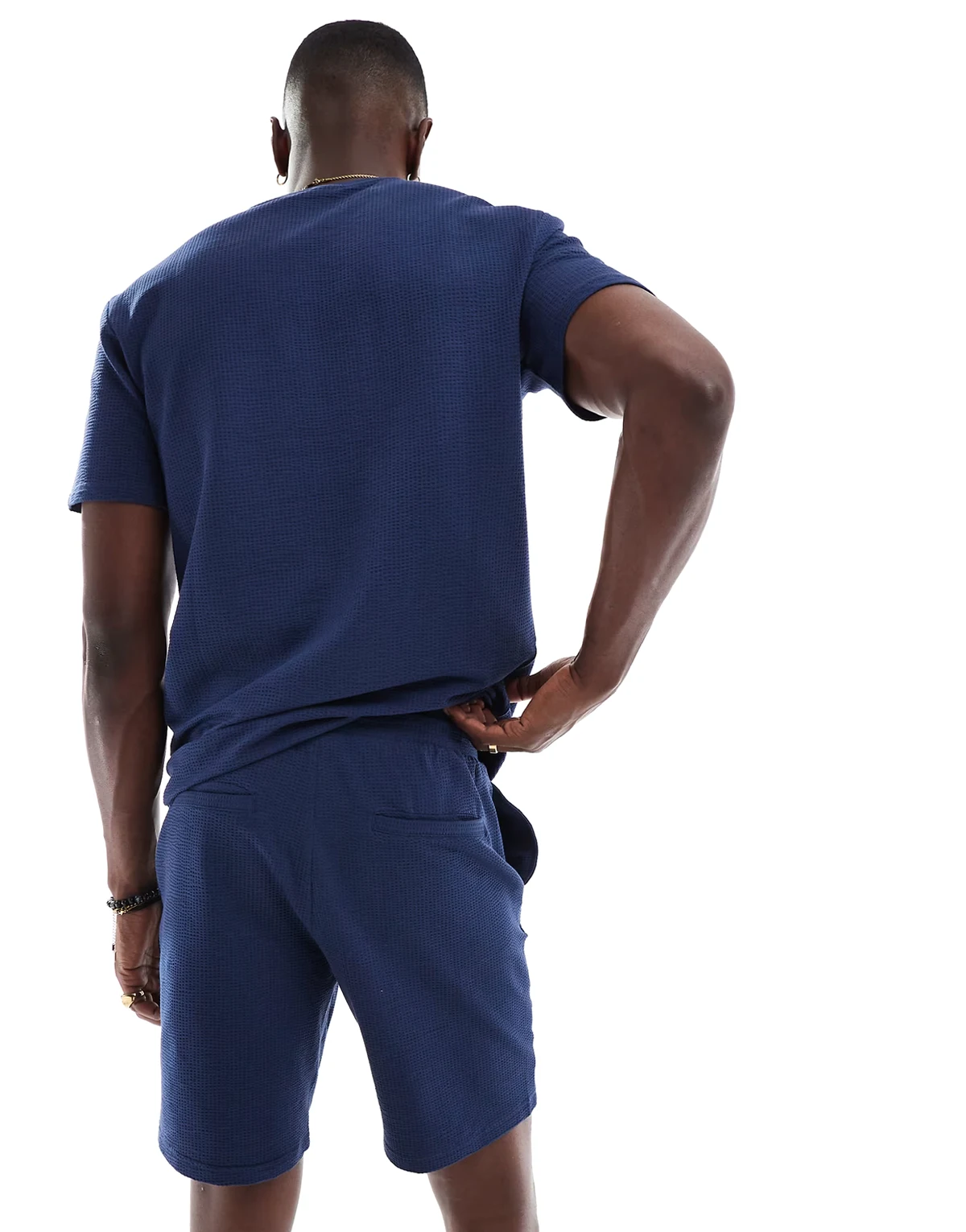 – Shorts in Marineblau mit Waffelstruktur, Kombiteil