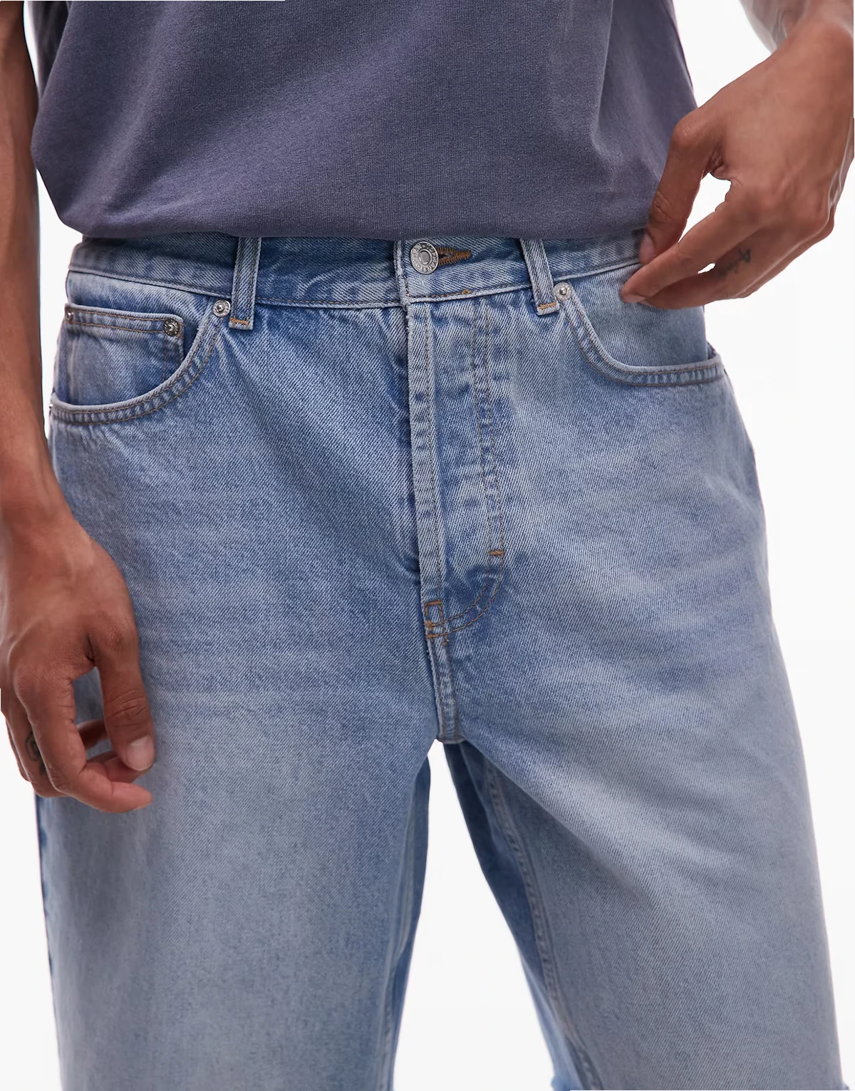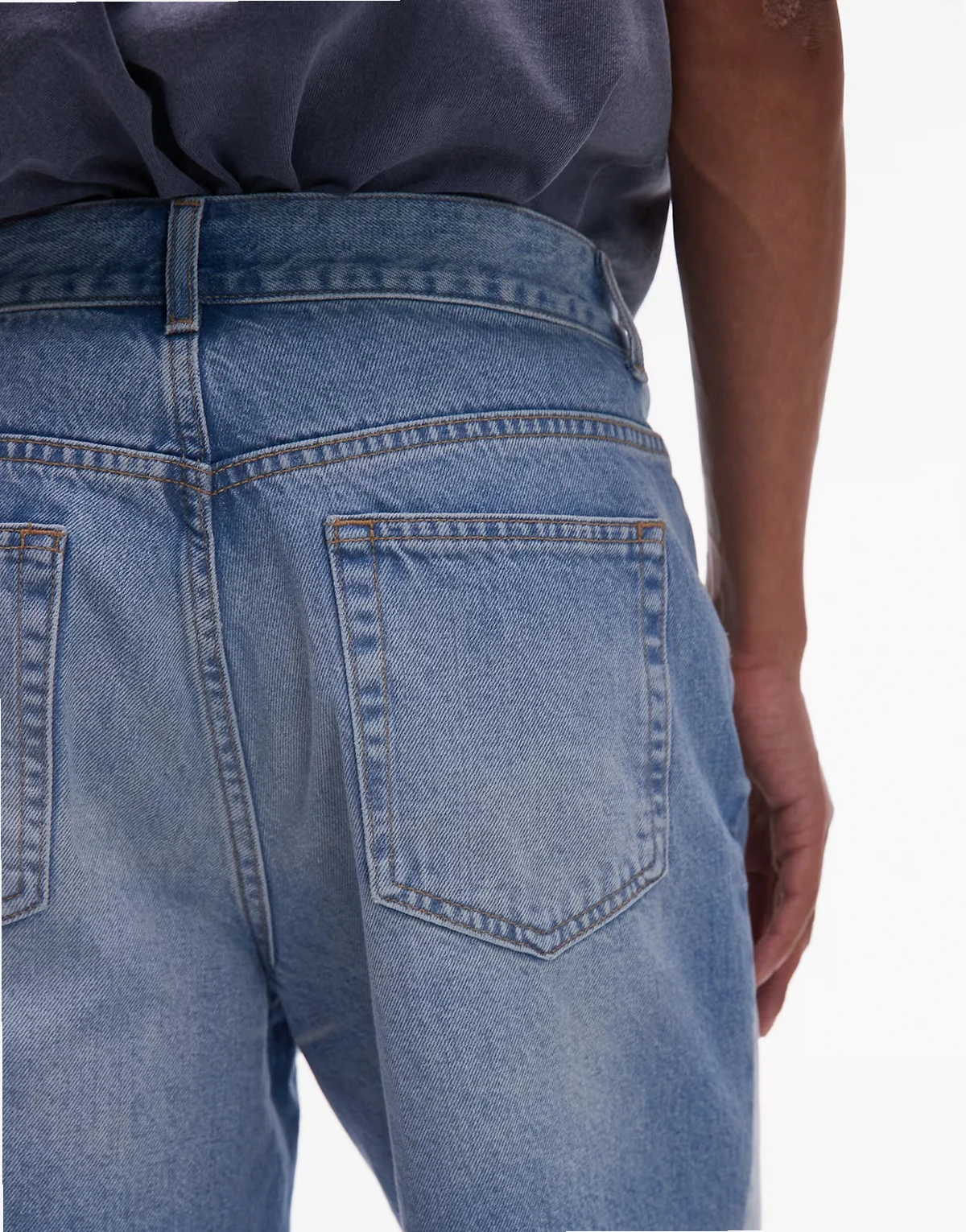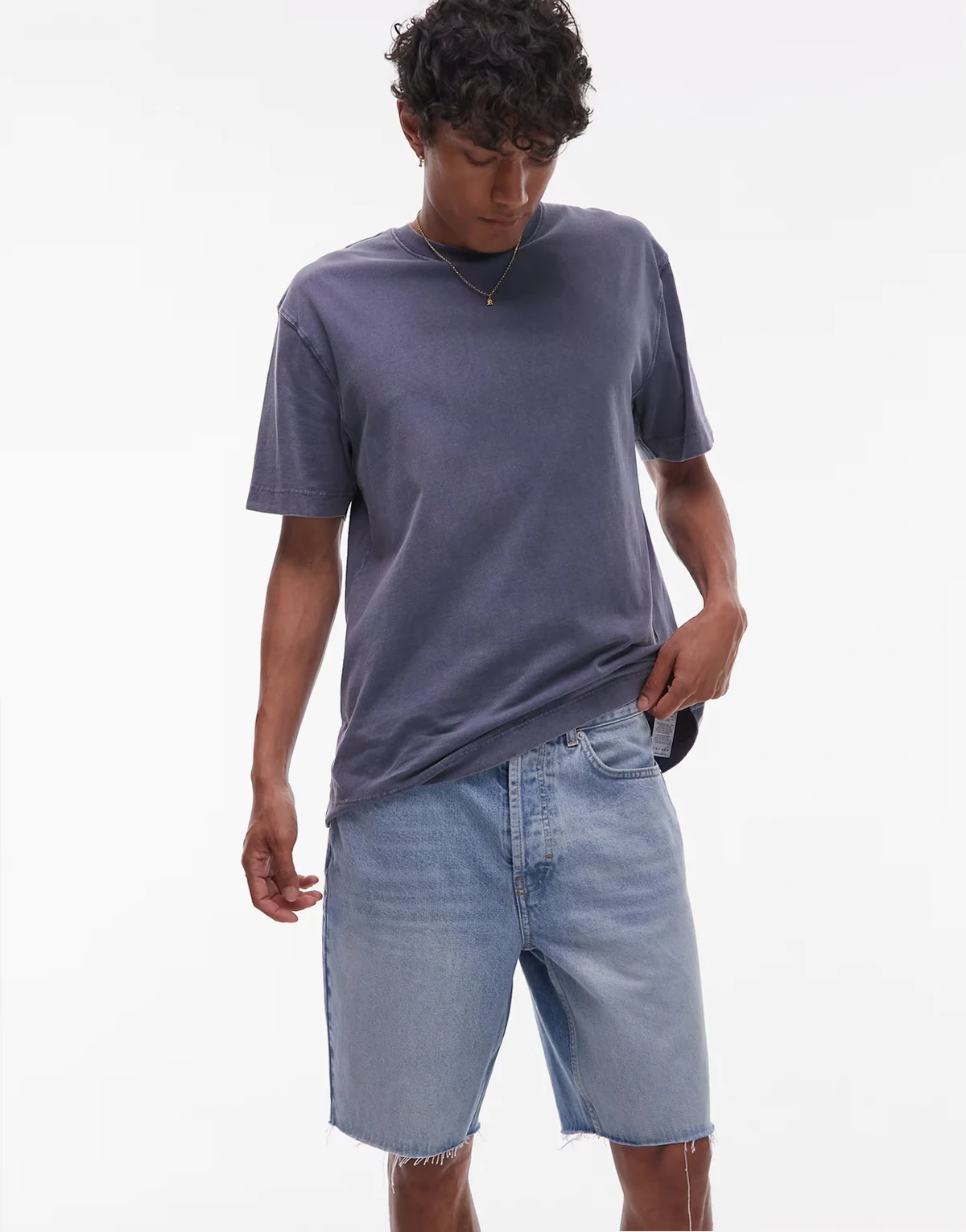– Gerade geschnittene Jeans-Shorts in hellblauer Waschung mit offenem Saum