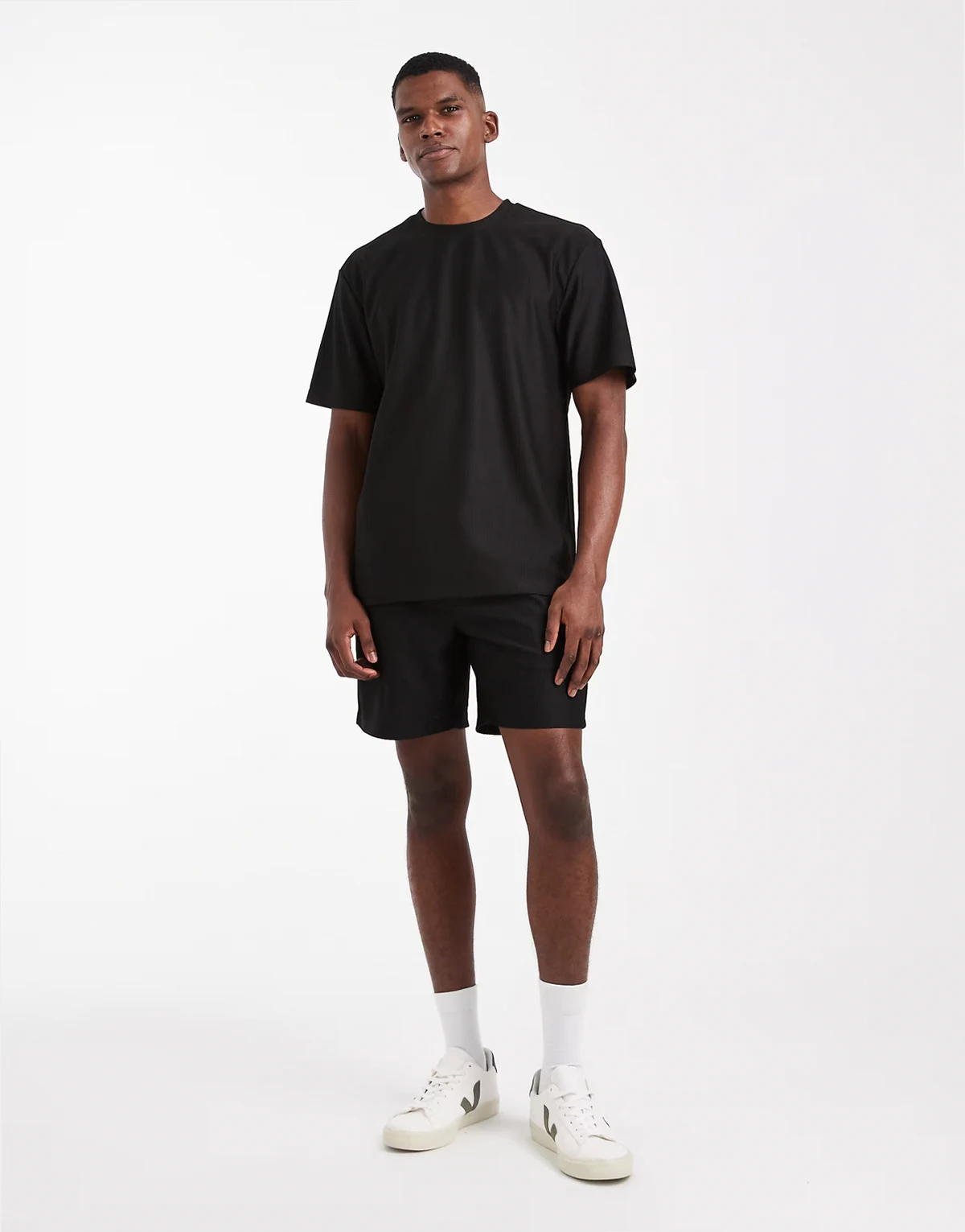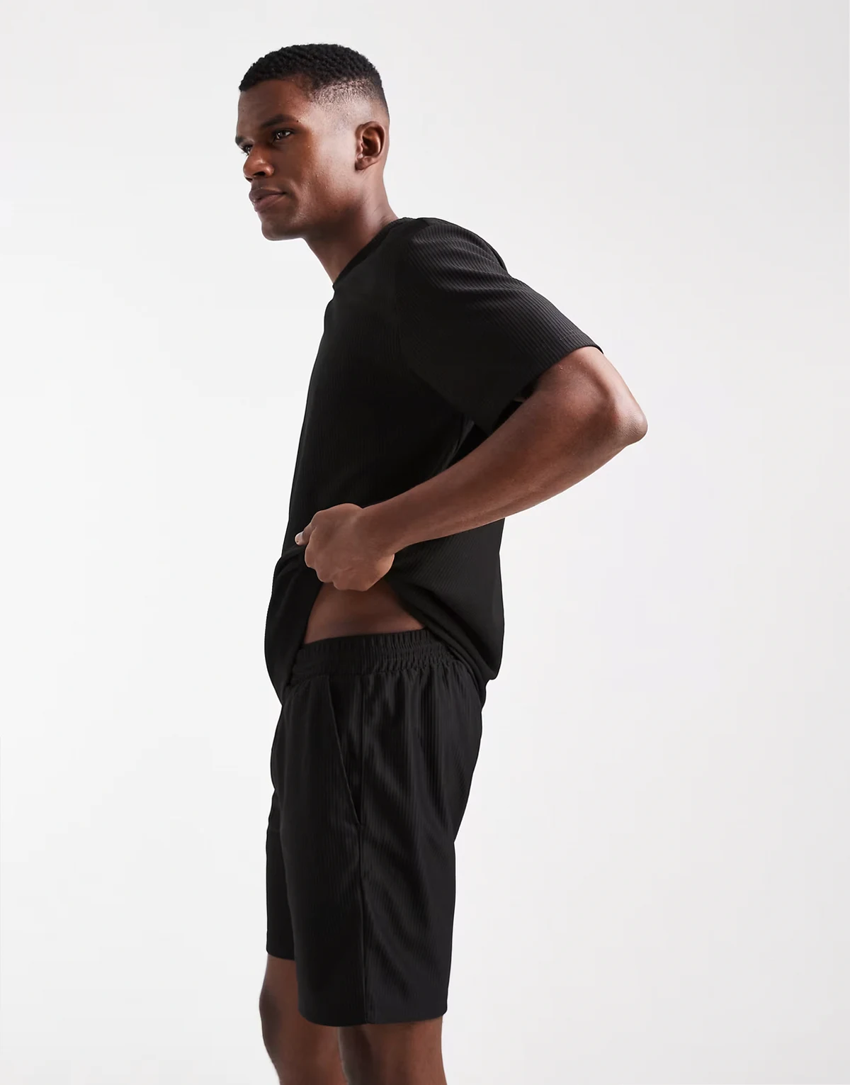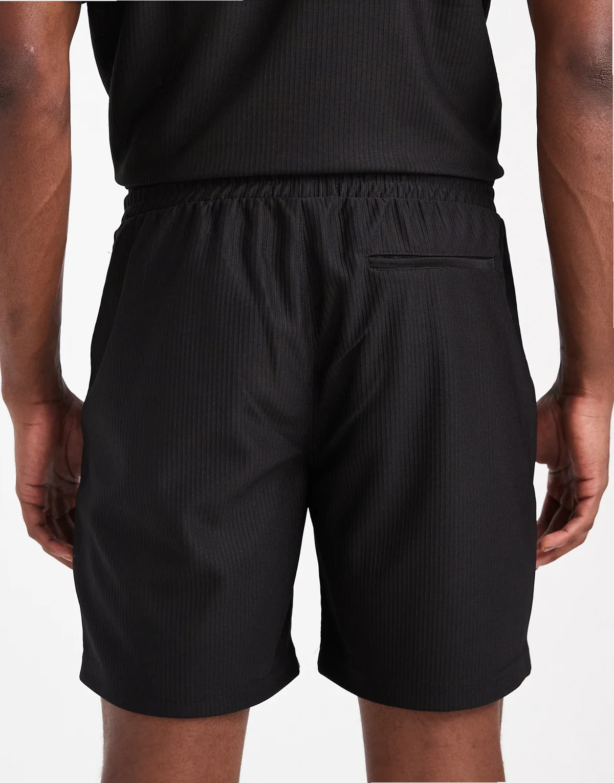 – Plissierte Shorts in Schwarz mit elastischem Bund, Kombiteil