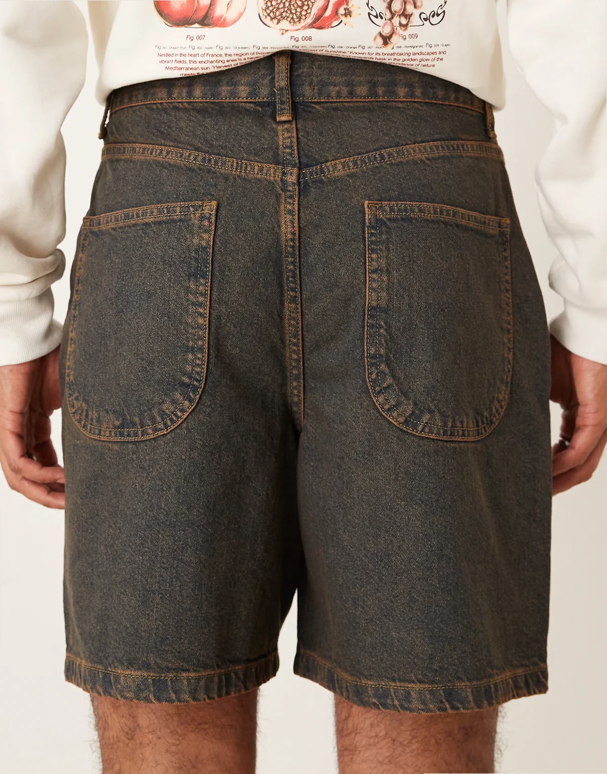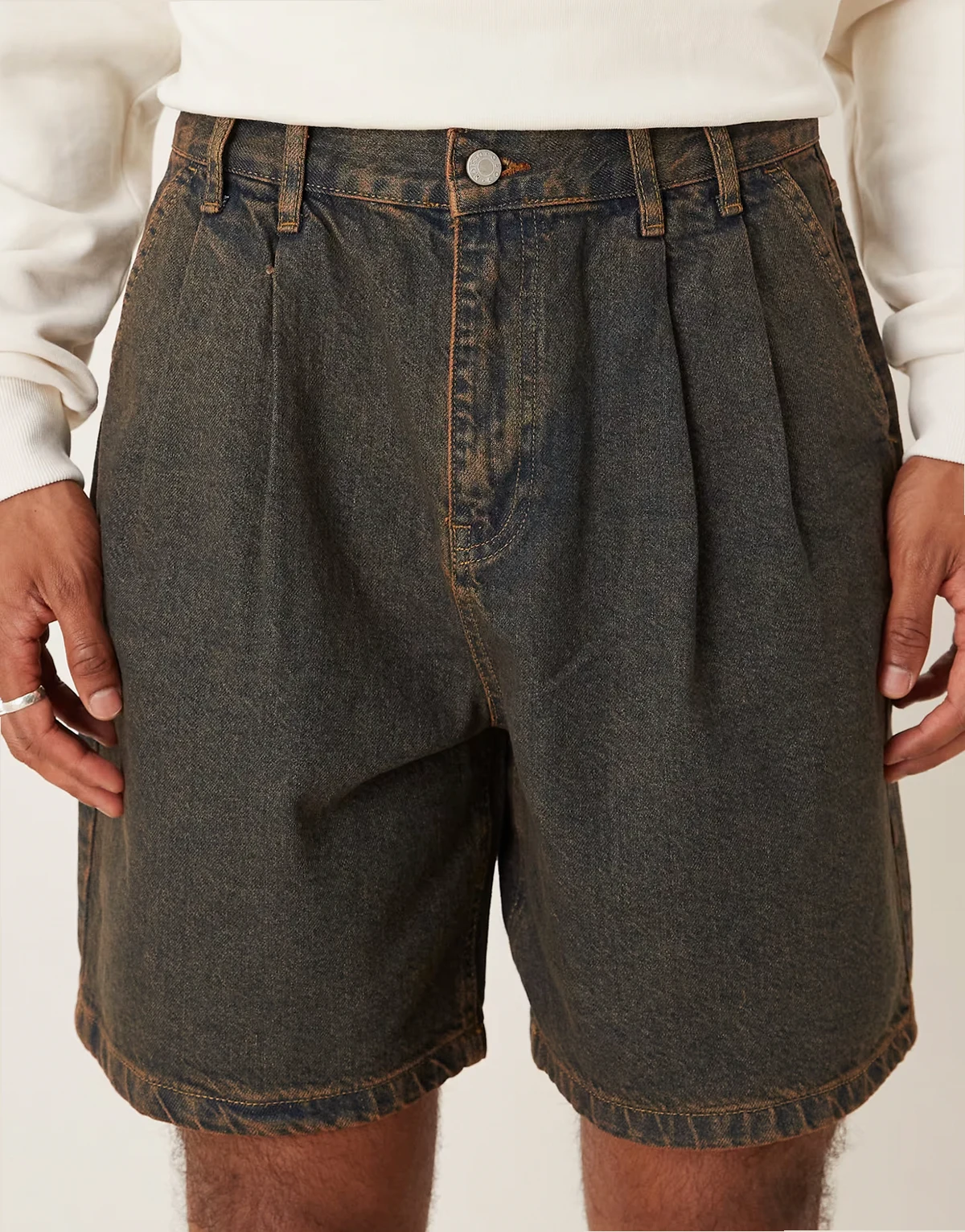– Mittellange Jeans-Jorts in Braun mit doppelten Bundfalten