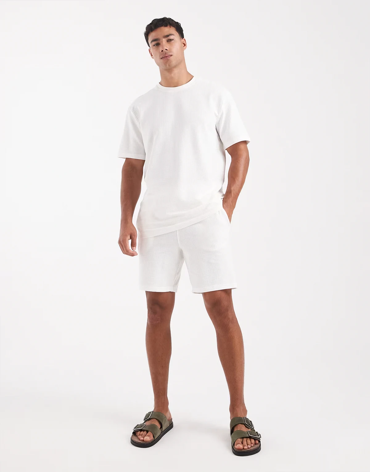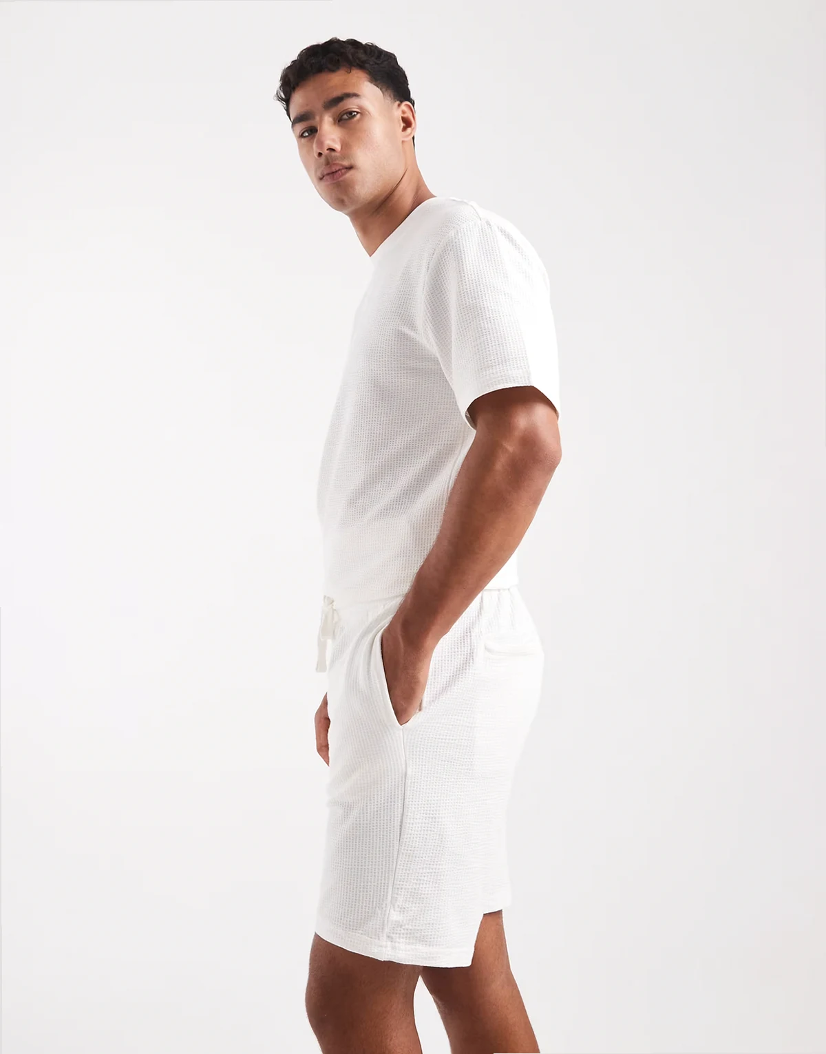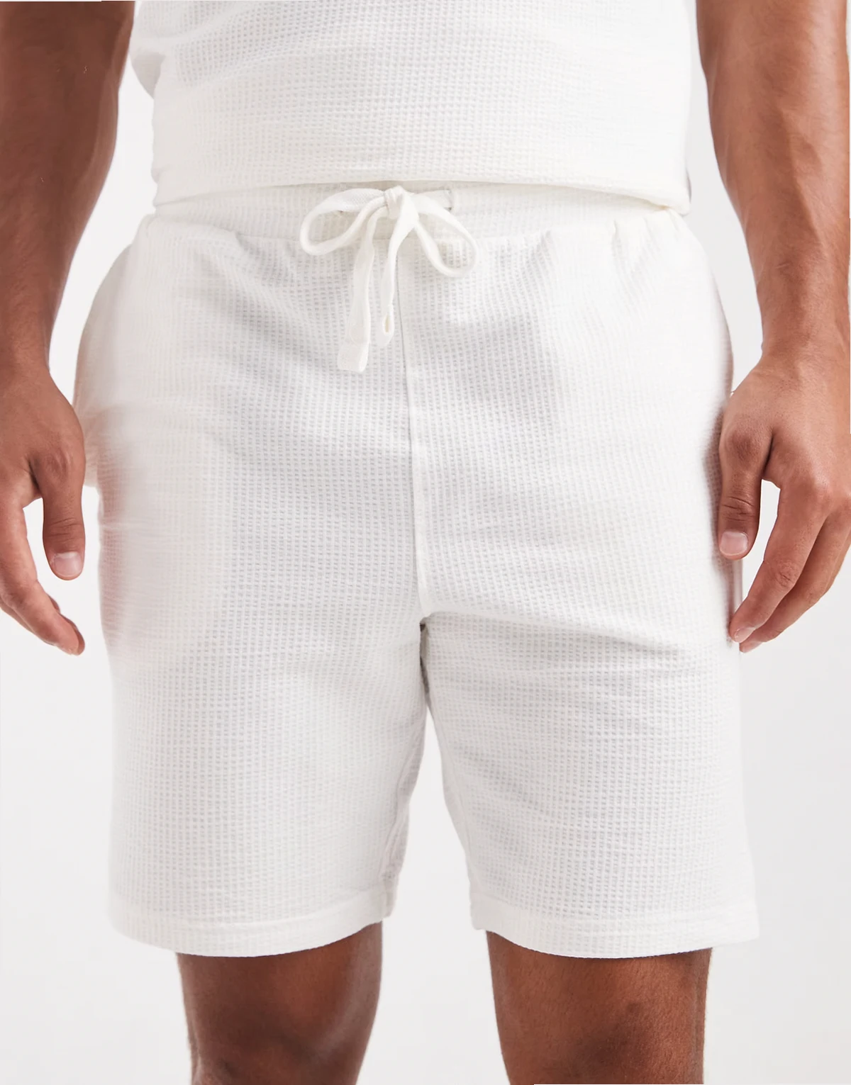 – Shorts in Weiß mit Waffelstruktur, Kombiteil