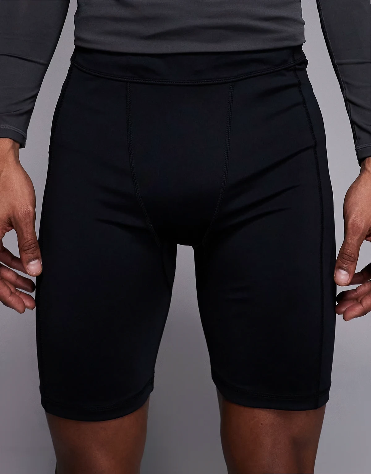 Icon – Schnelltrocknende, halblange Baselayer-Sportleggings in Schwarz mit Handytasche