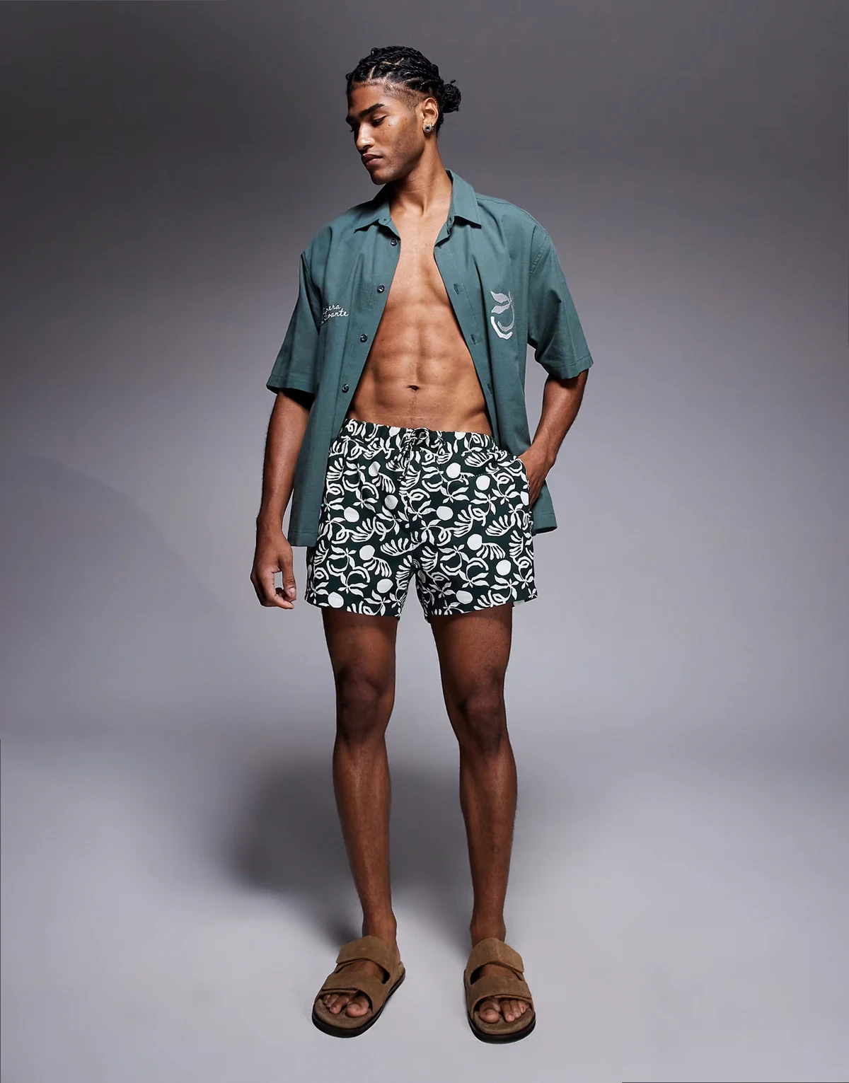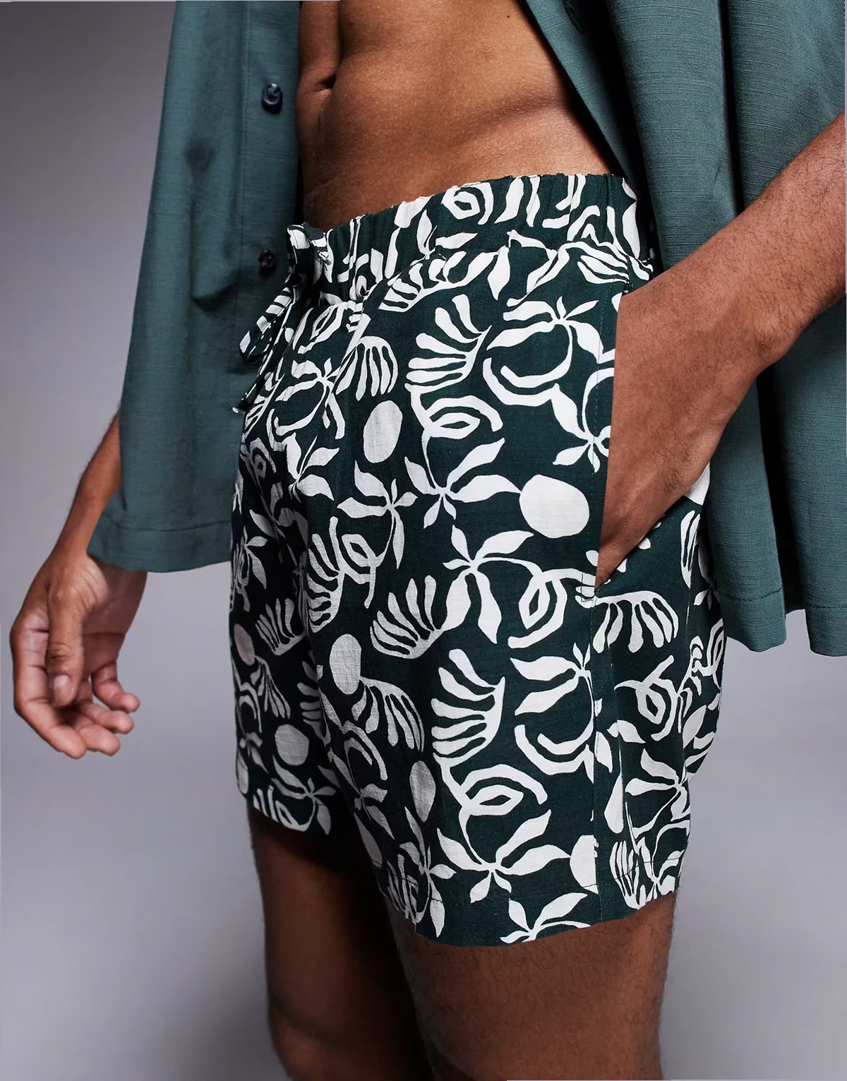 – Kurze Shorts in Dunkelgrün, Kombiteil