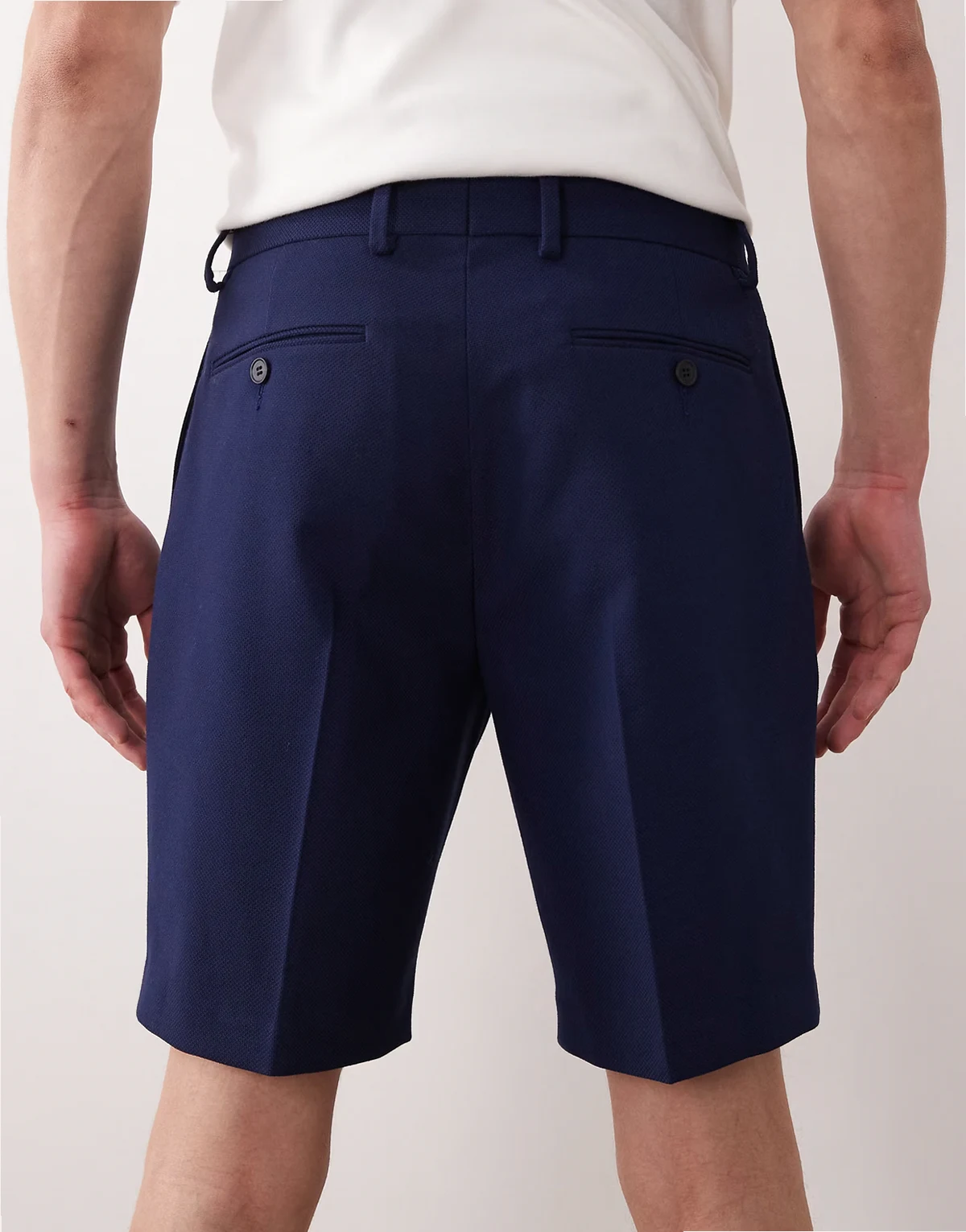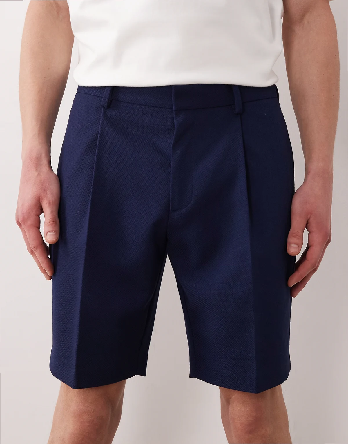 – Elegante Slim-Fit-Shorts in Marineblau mit Bundfalten und feiner Struktur