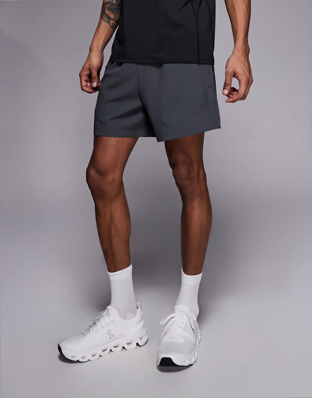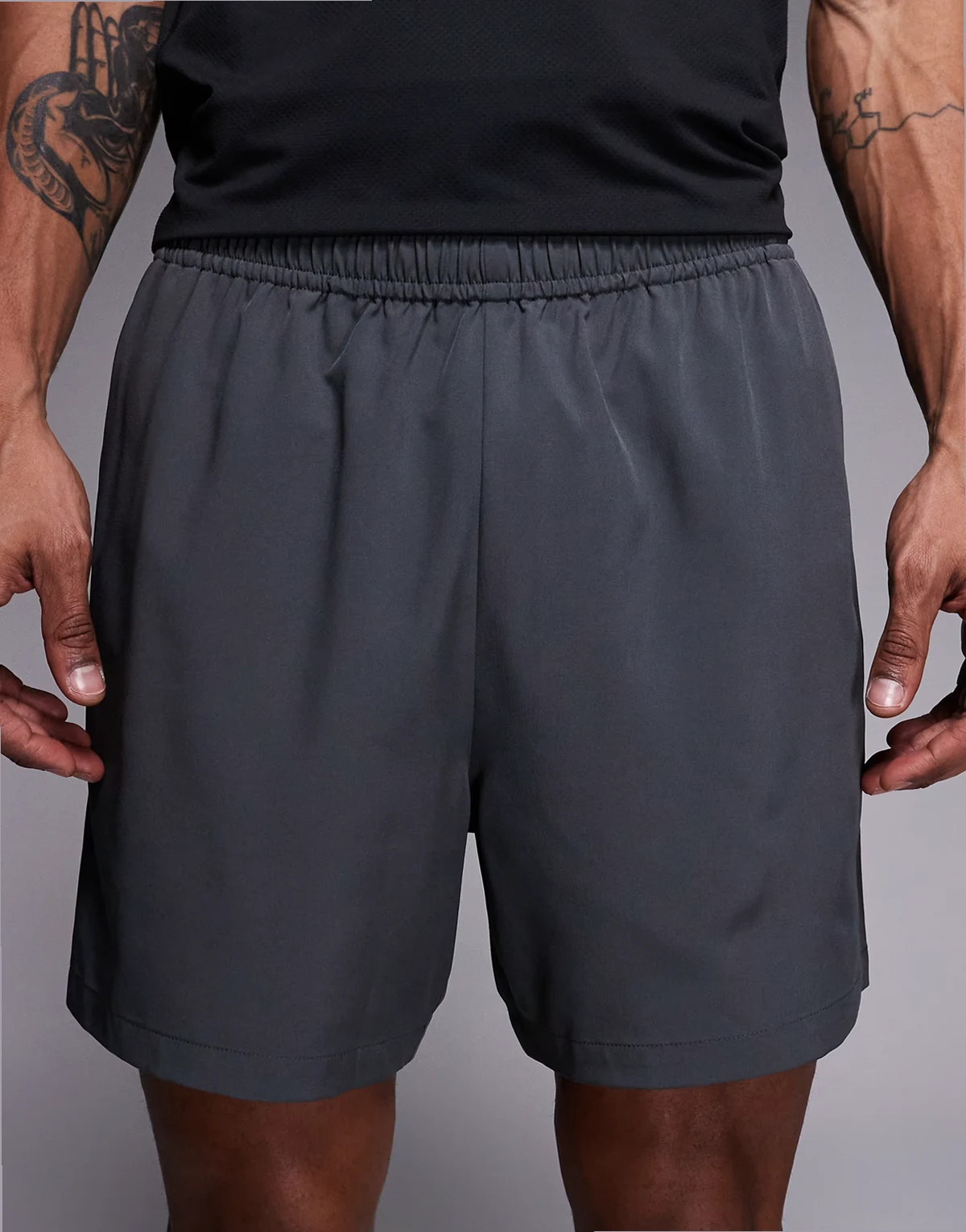 – Icon – Schnelltrocknende Sport-Shorts in Dunkelgrau mit Reißverschlusstaschen und Markenlogo, 18 cm Schrittlänge