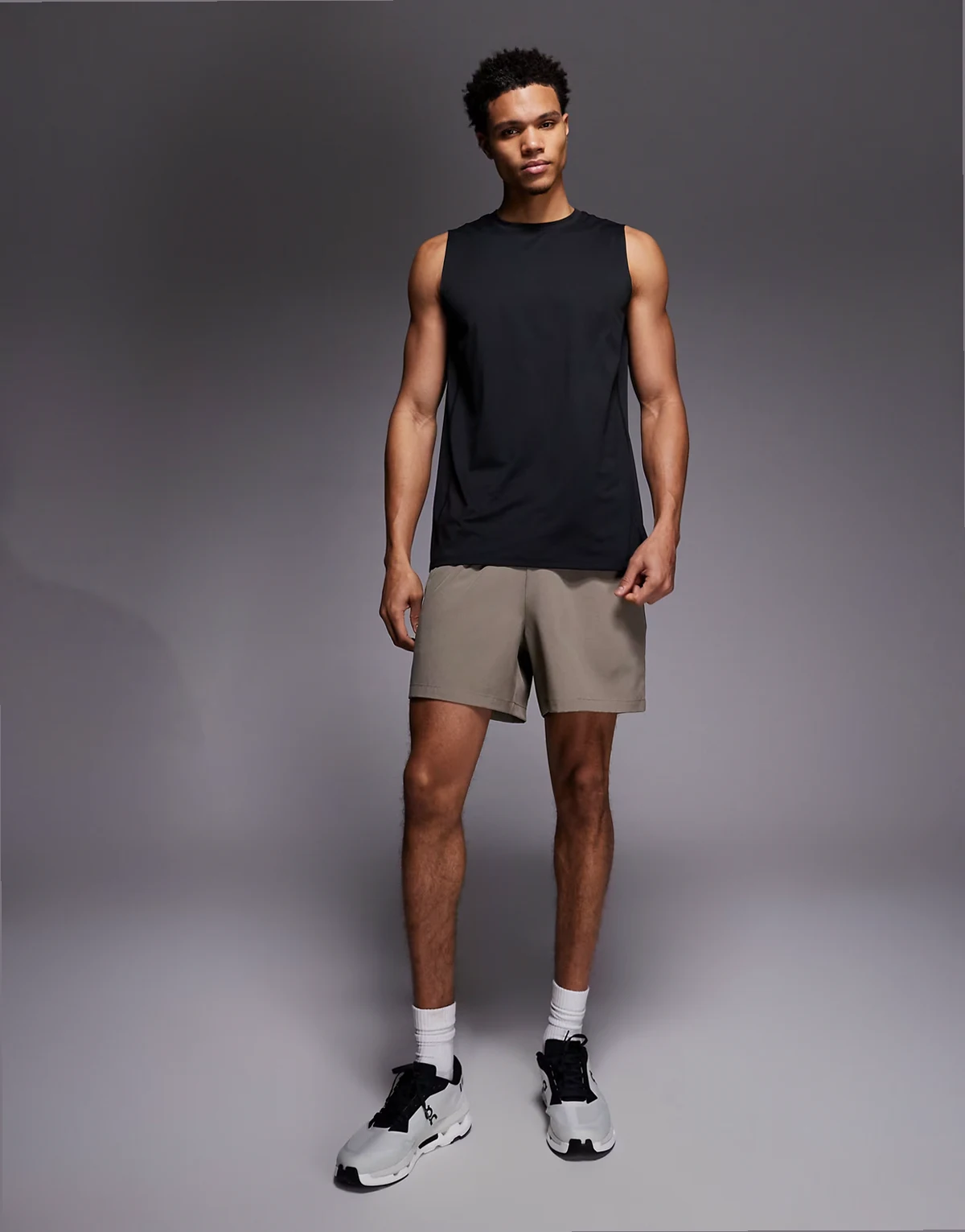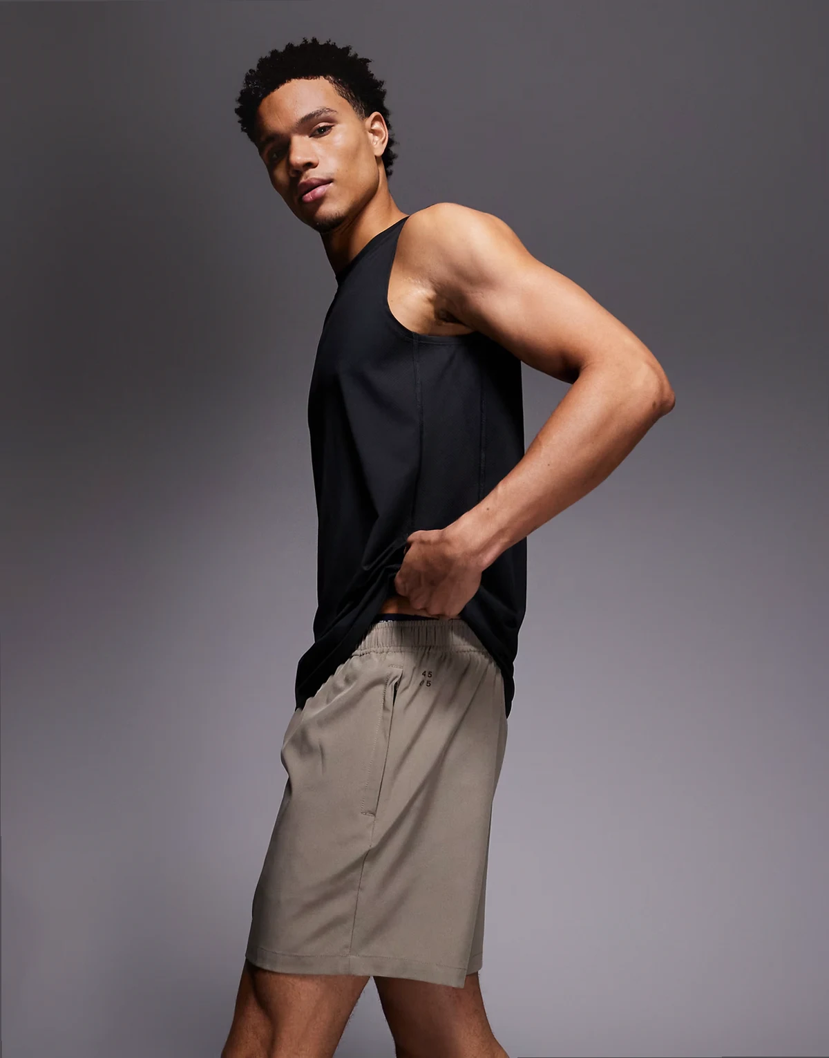– Icon – Sportshorts aus schnell trocknendem Material in Sandstein mit Reißverschluss-Taschen, 18 cm Schrittlänge