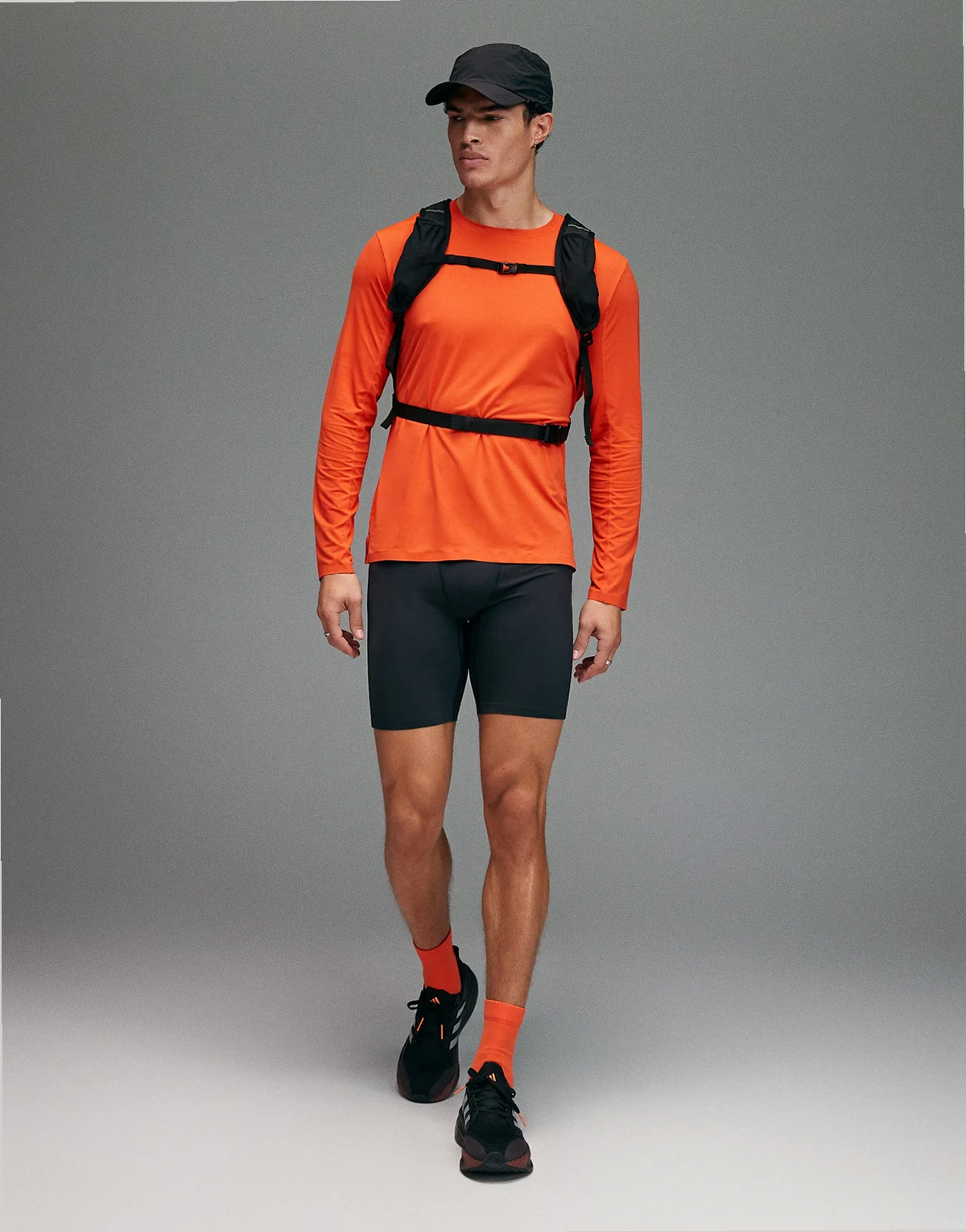Premium – Reflektierende, halblange Lauf-Leggings in Void Schwarz mit Handytasche und verstärktem Saum