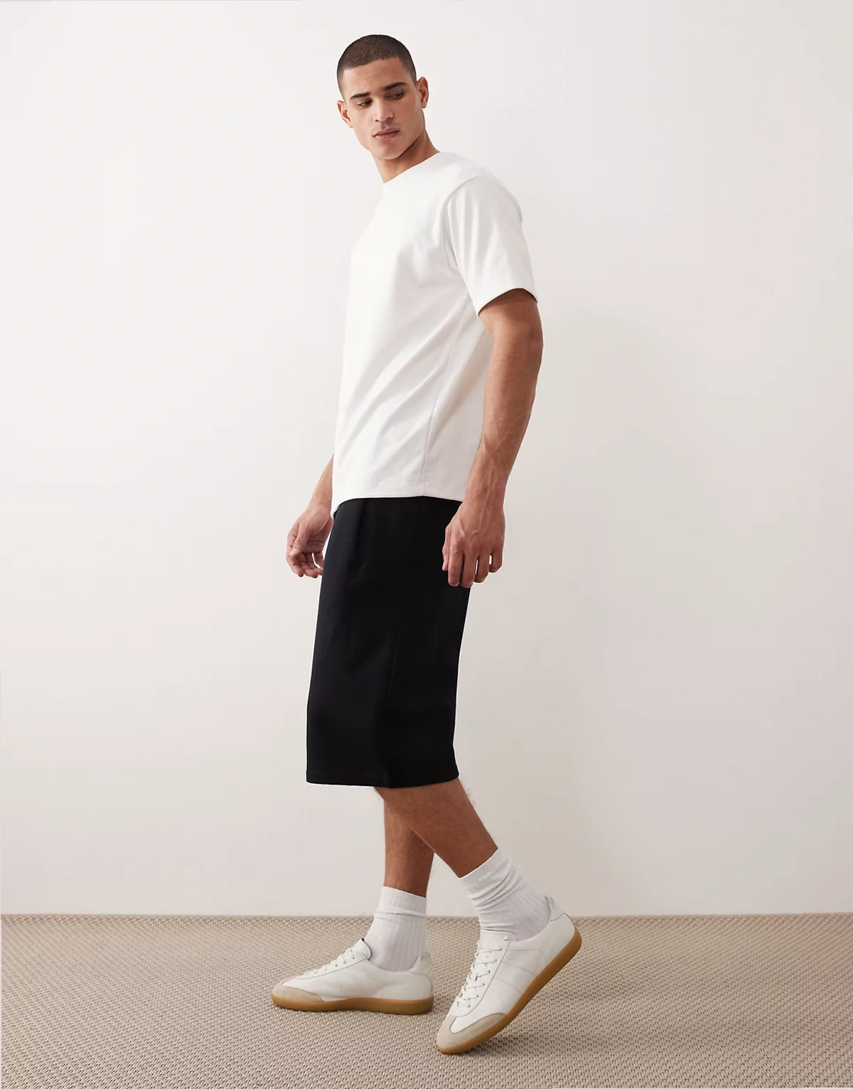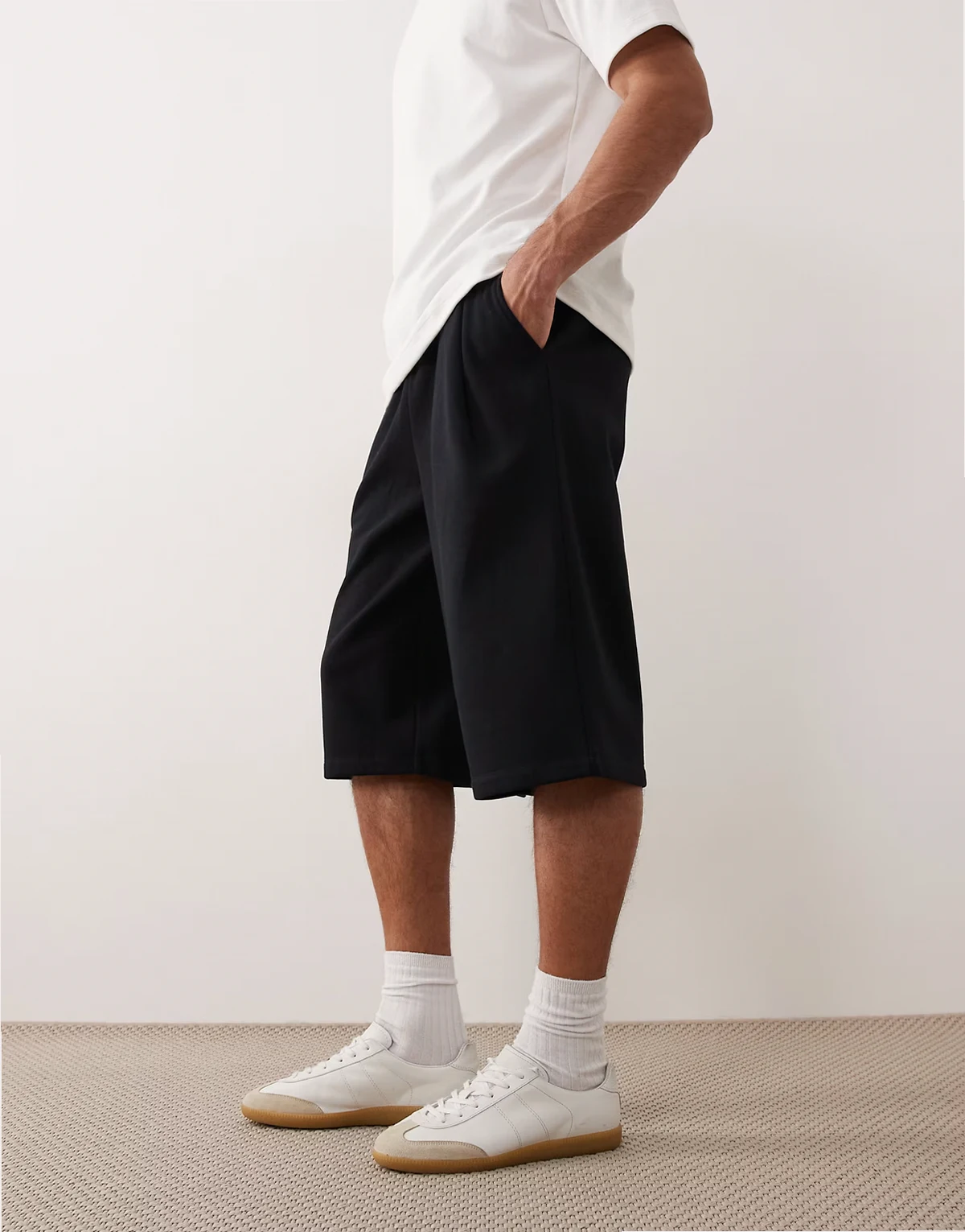 – Longline-Oversize-Shorts in Schwarz mit Bundfalten