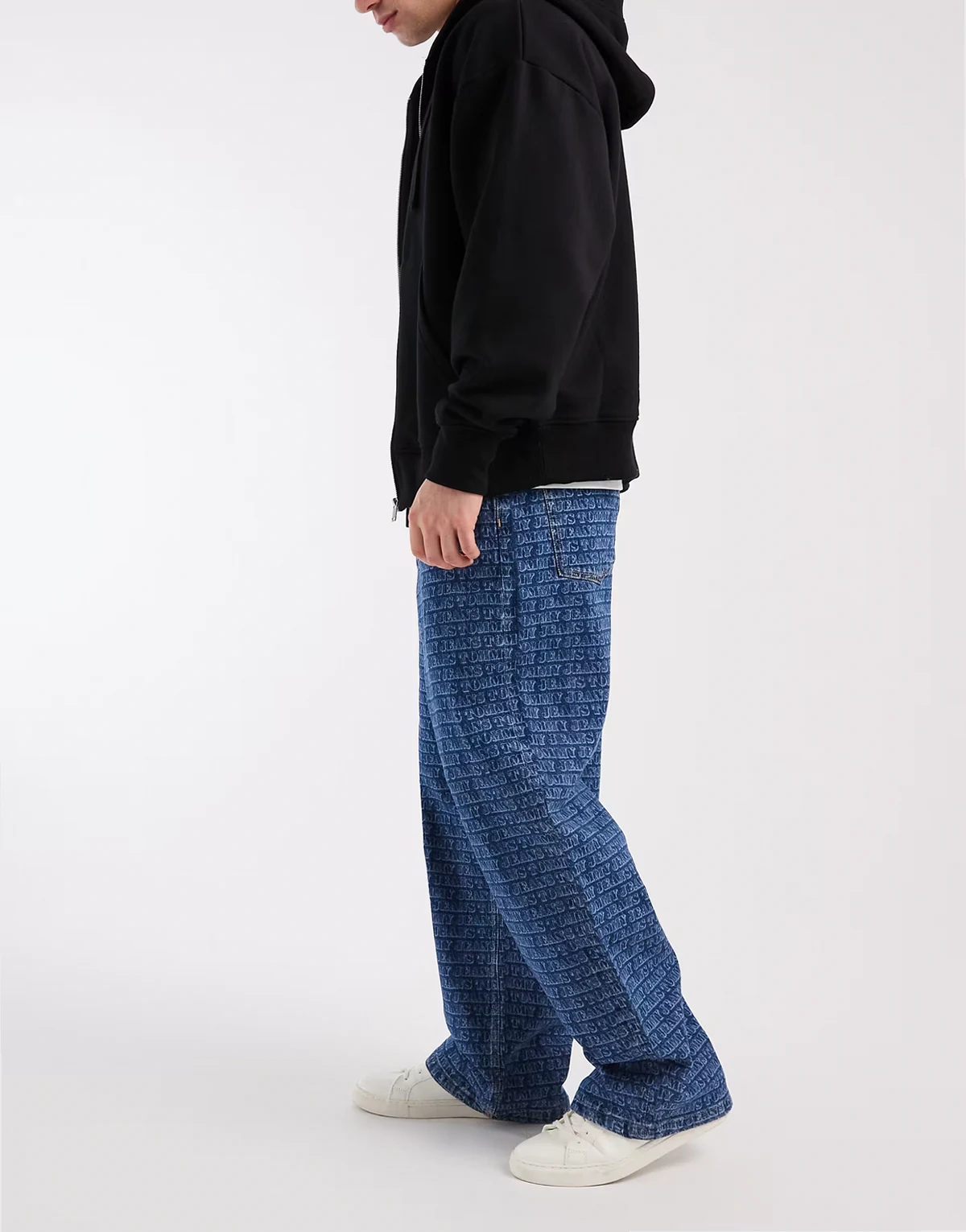 – Theo – Weite Jeans in mittelblauer Waschung mit Printmuster