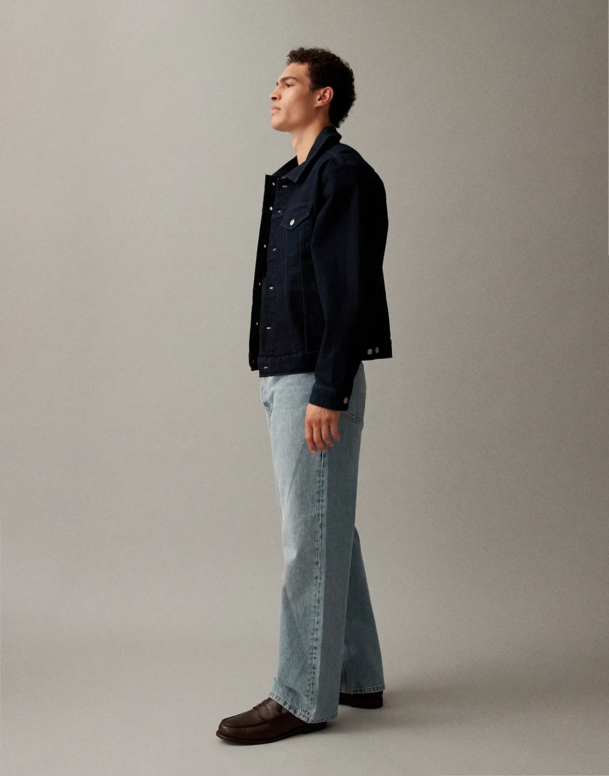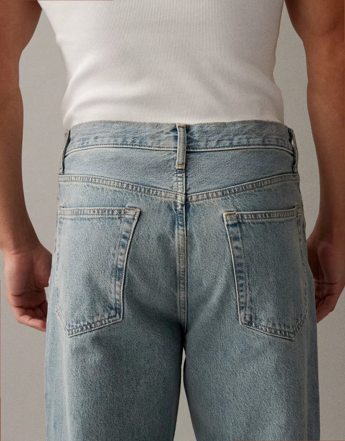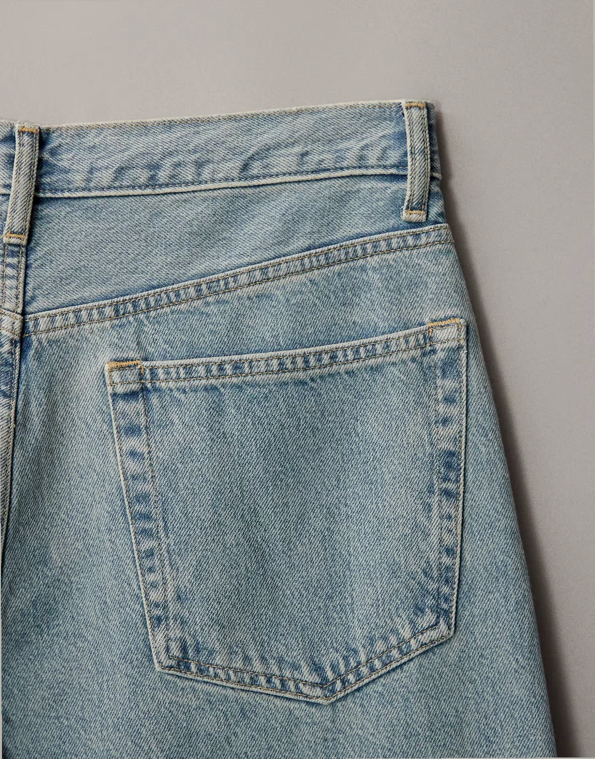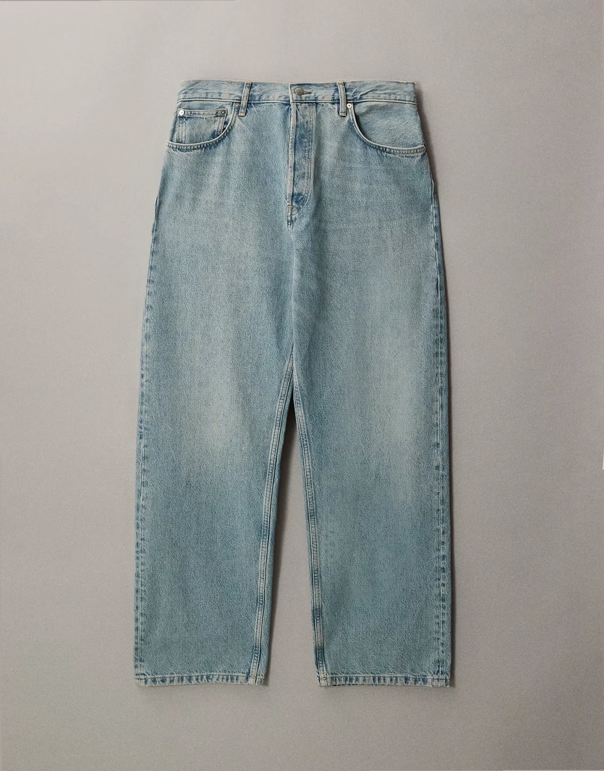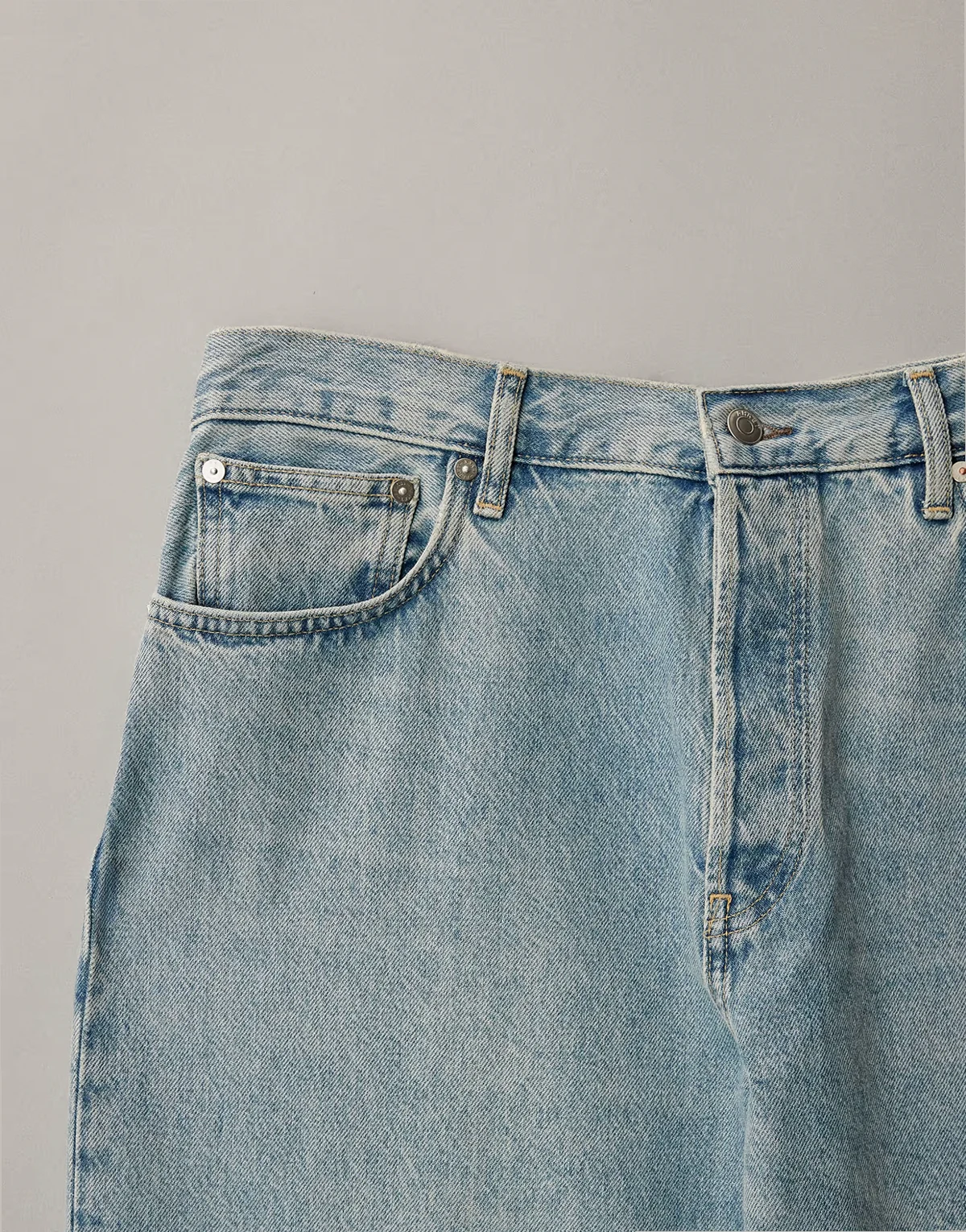 Steifer Jeansstoff ohne Stretch: hellblaue Waschung
