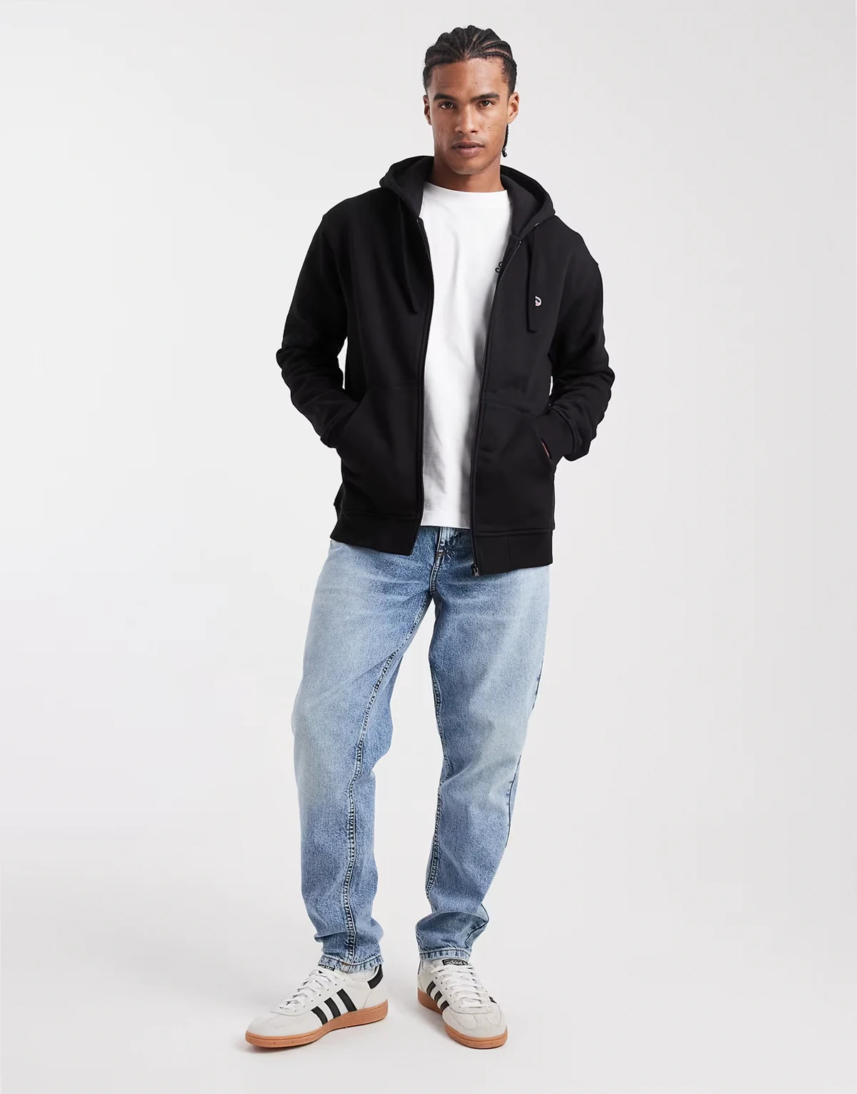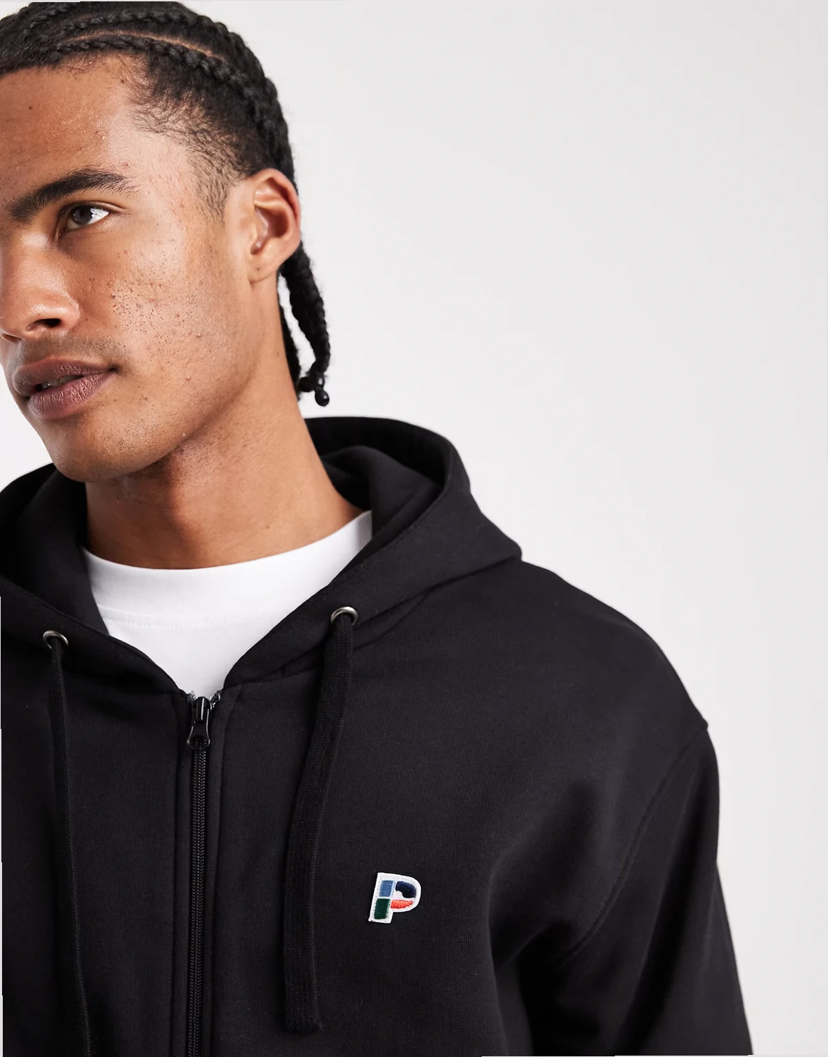 – Bestickter Kapuzenpullover aus Filz in Schwarz mit durchgehendem Reißverschluss