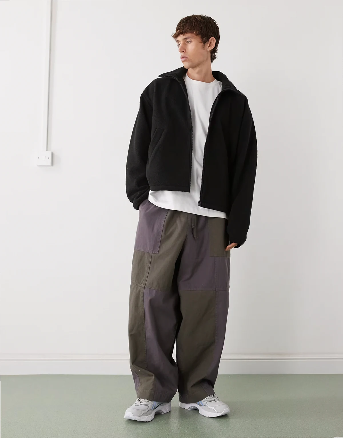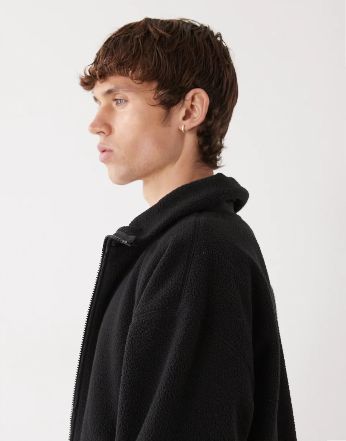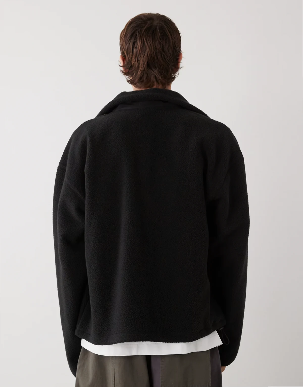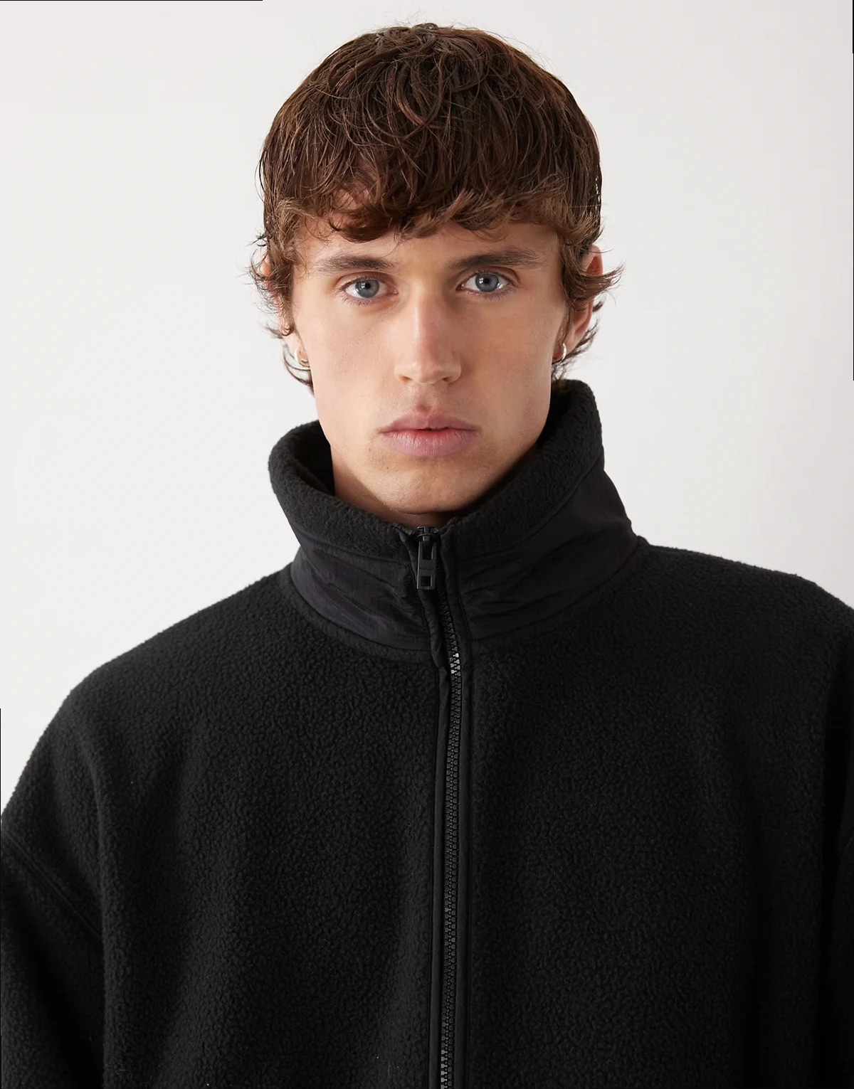 – Teddyfell-Sweatshirt in Schwarz mit kurzem Reißverschluss