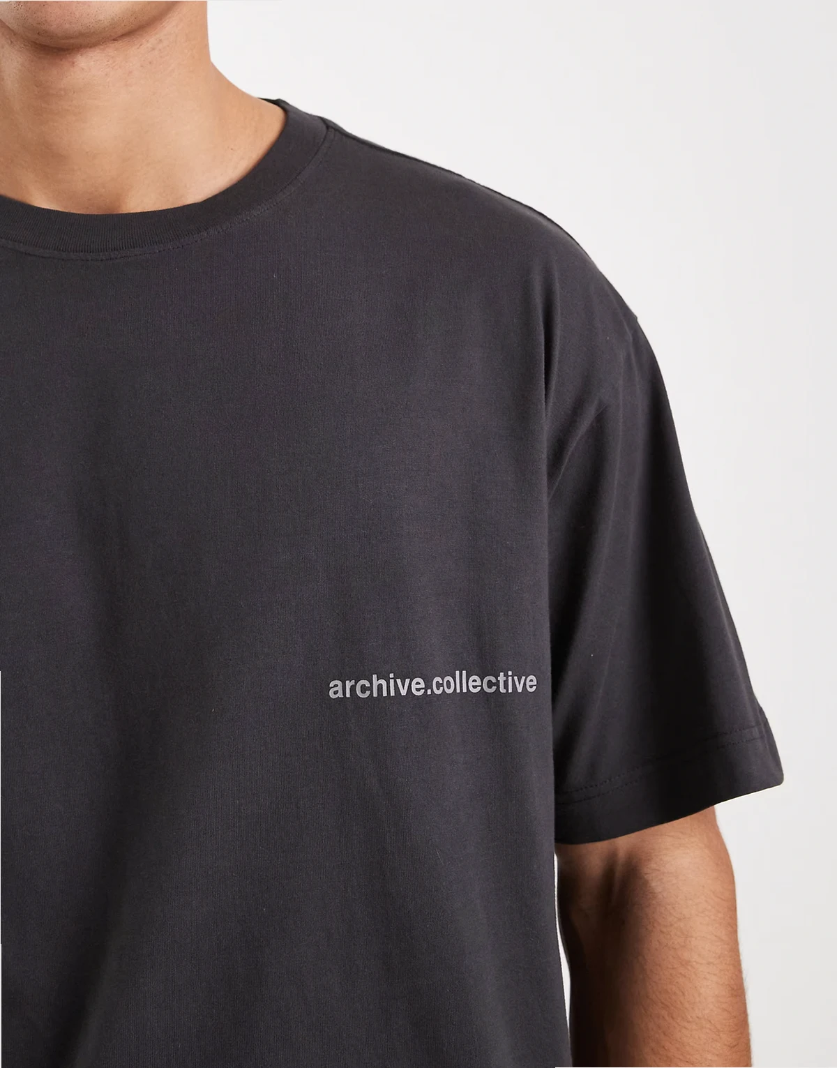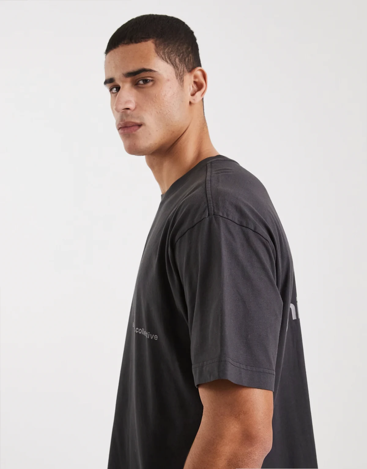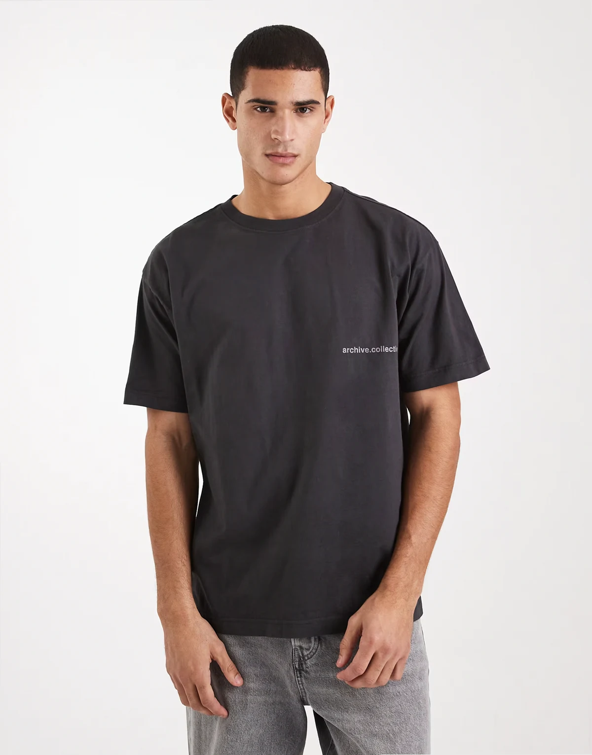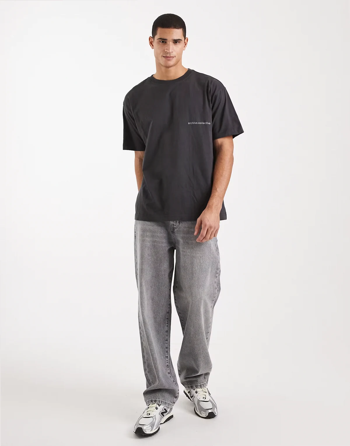 – Kastiges T-Shirt verwaschenem Schwarz mit Grafik