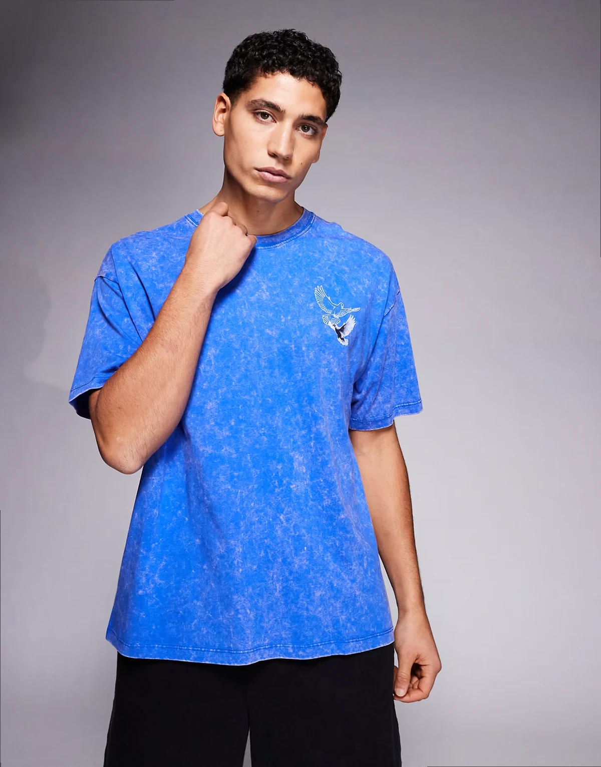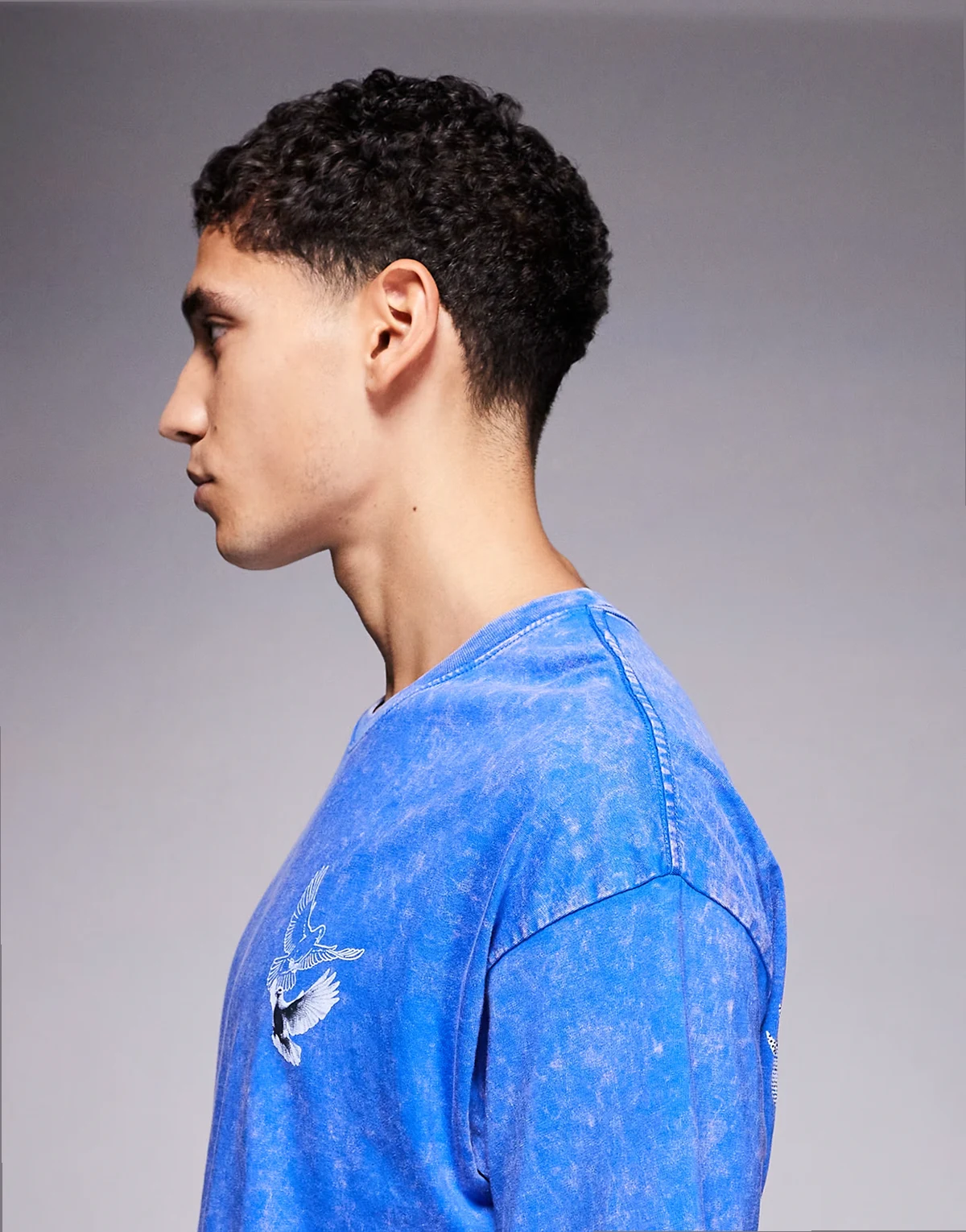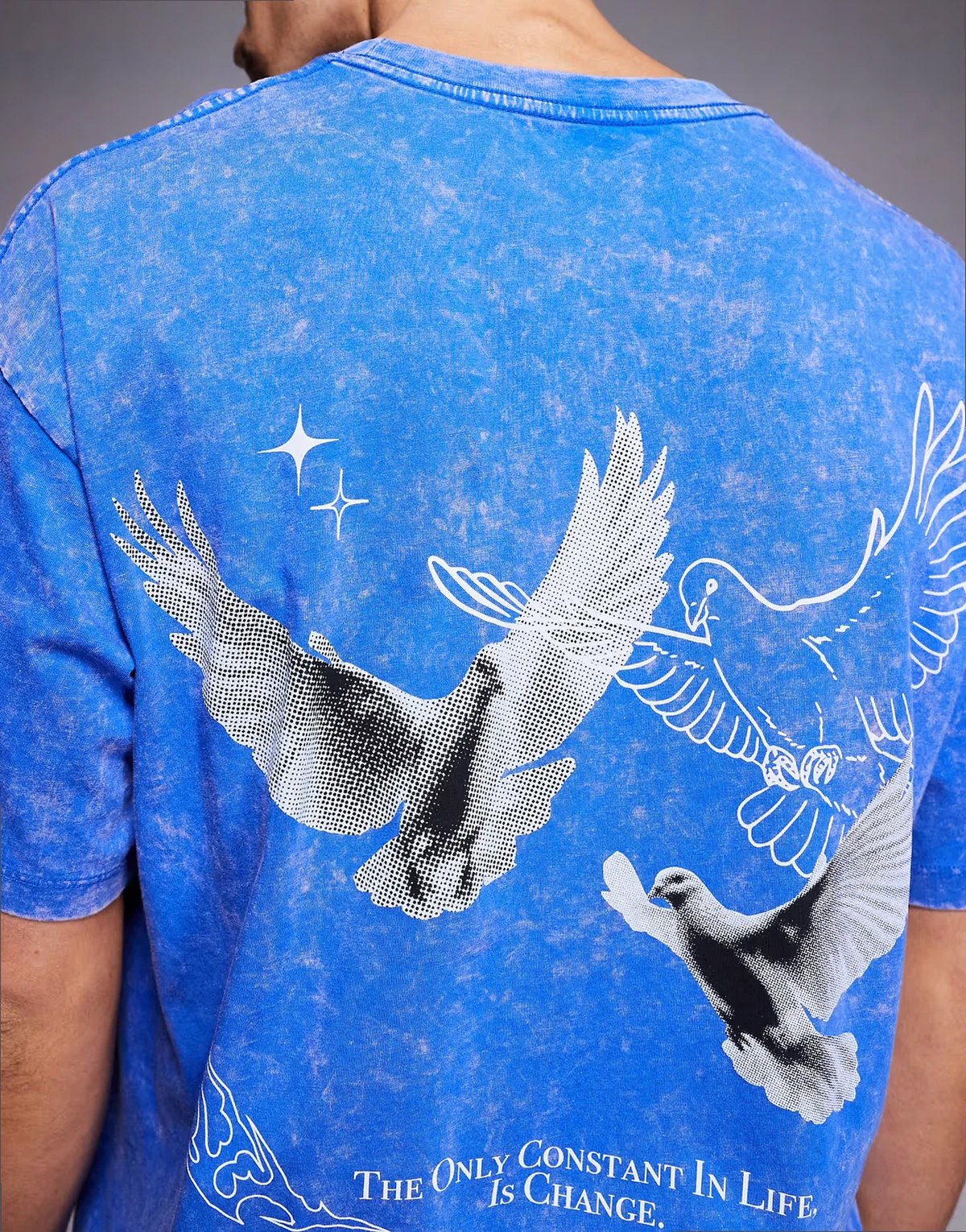 Vogelmotiv und Textprint auf dem Rücken