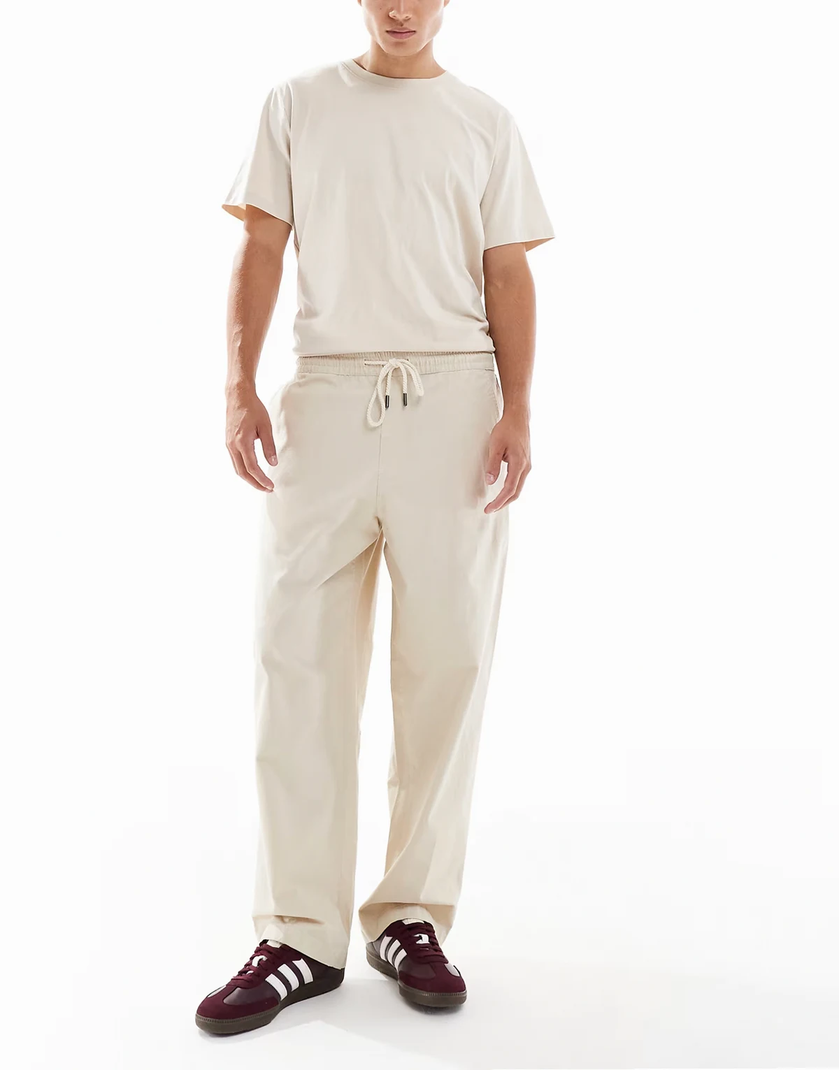 – Greenport – Hose in Beige mit weitem Bein und Tunnelzug