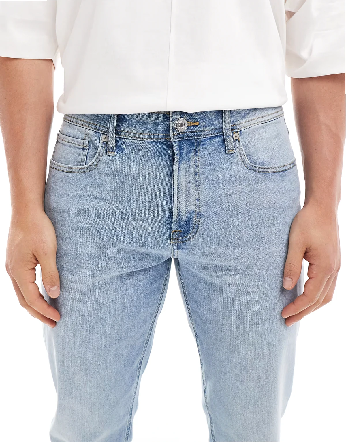Jeansstoff ohne Stretchanteil: hellblaue Waschung