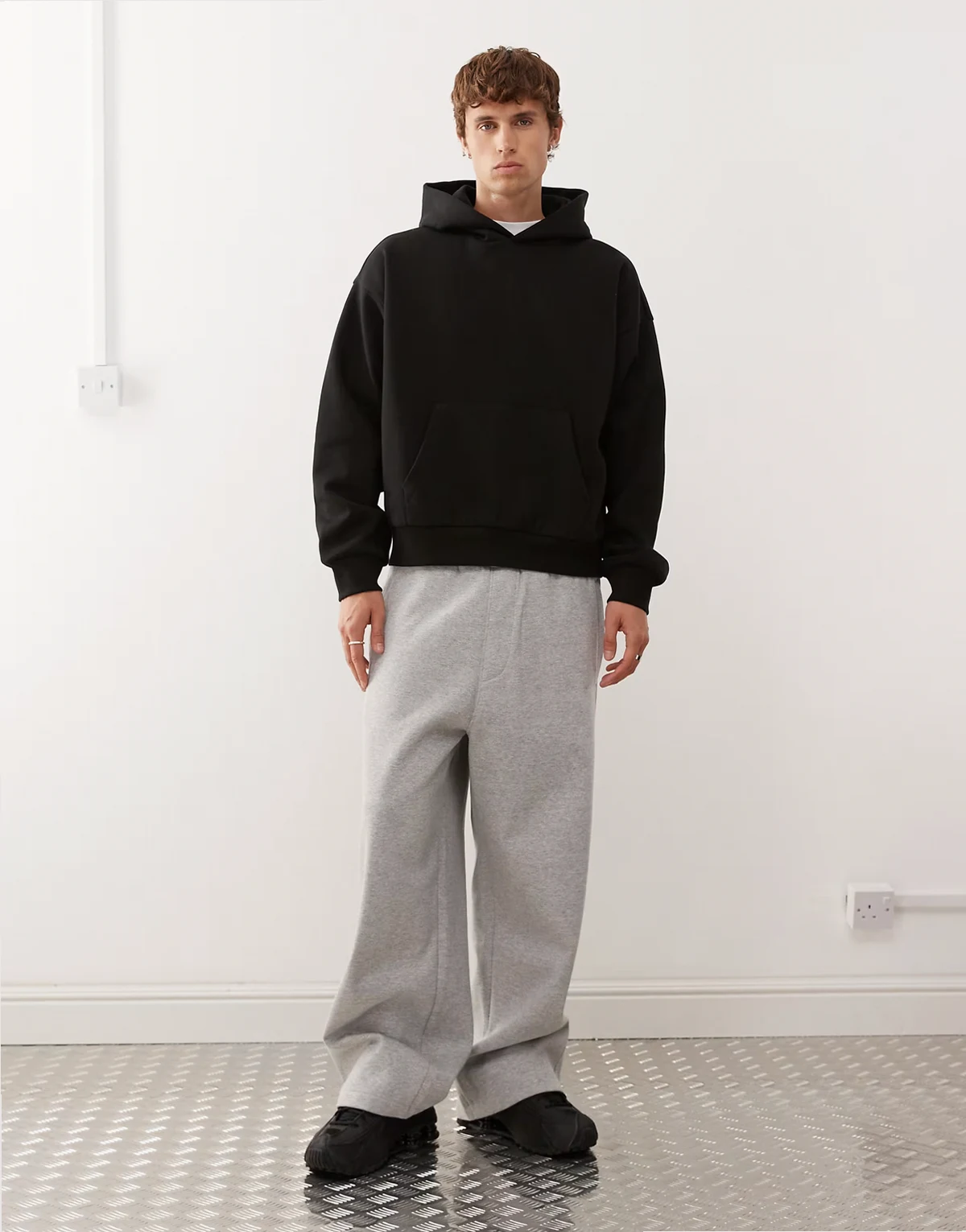 – Kastiger Oversize-Kapuzenpullover aus schwerem Jersey in Schwarz