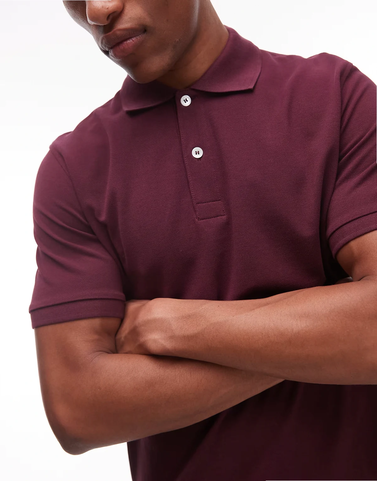 – Kurzärmliges Polohemd aus Piqué-Jersey in Burgunderrot