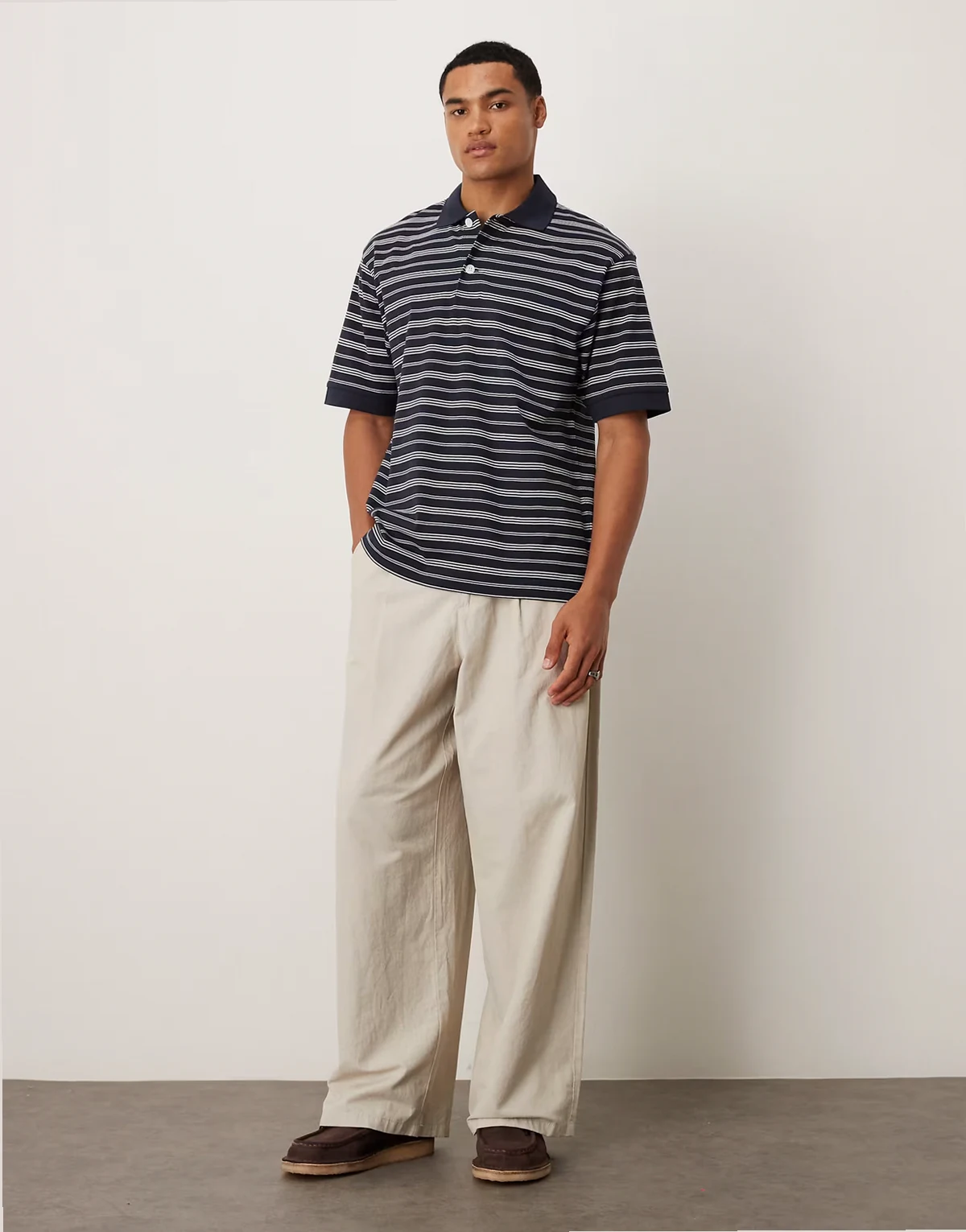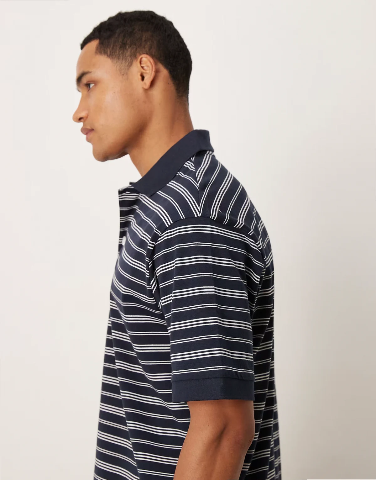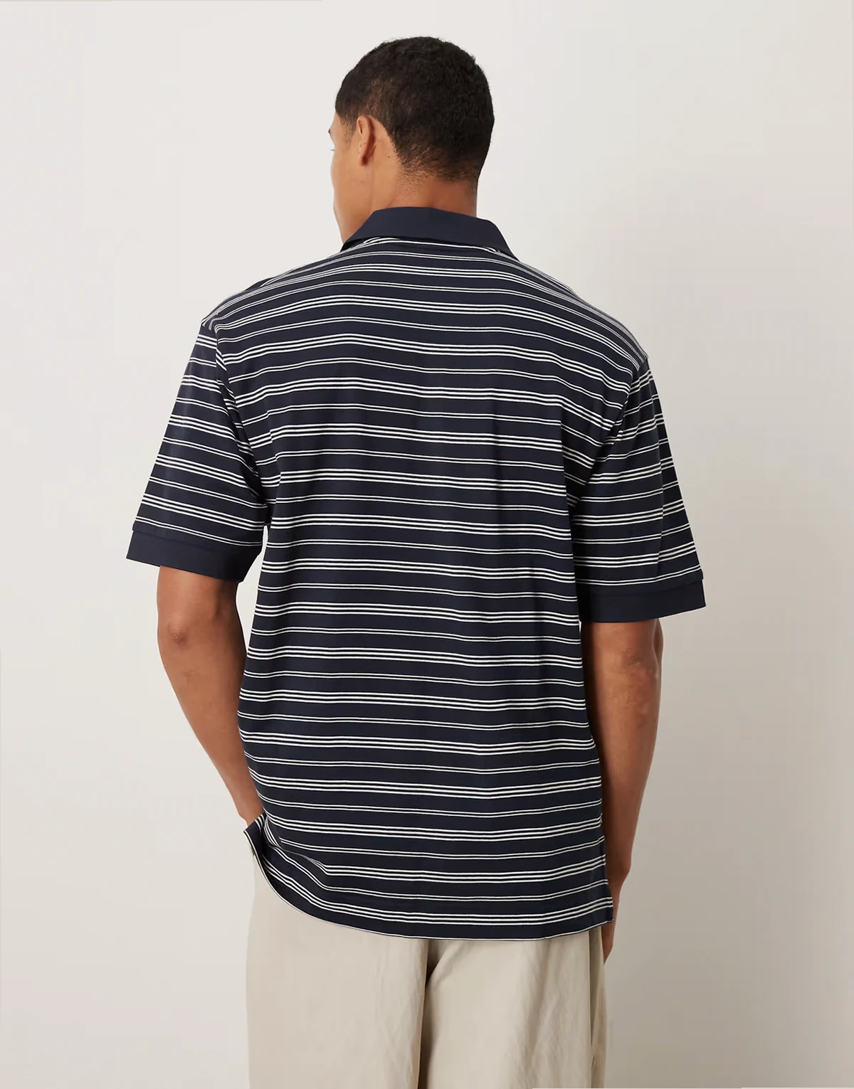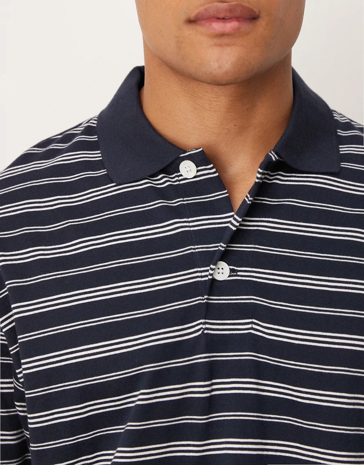 – Kurzärmliges, gestreiftes Polohemd in Blau aus Jersey aus reiner Baumwolle