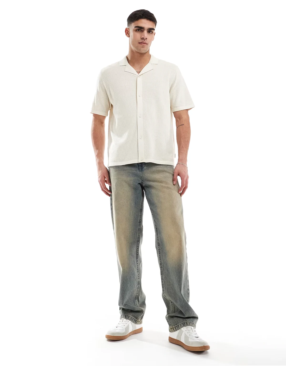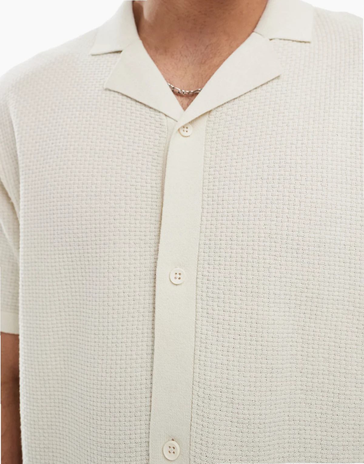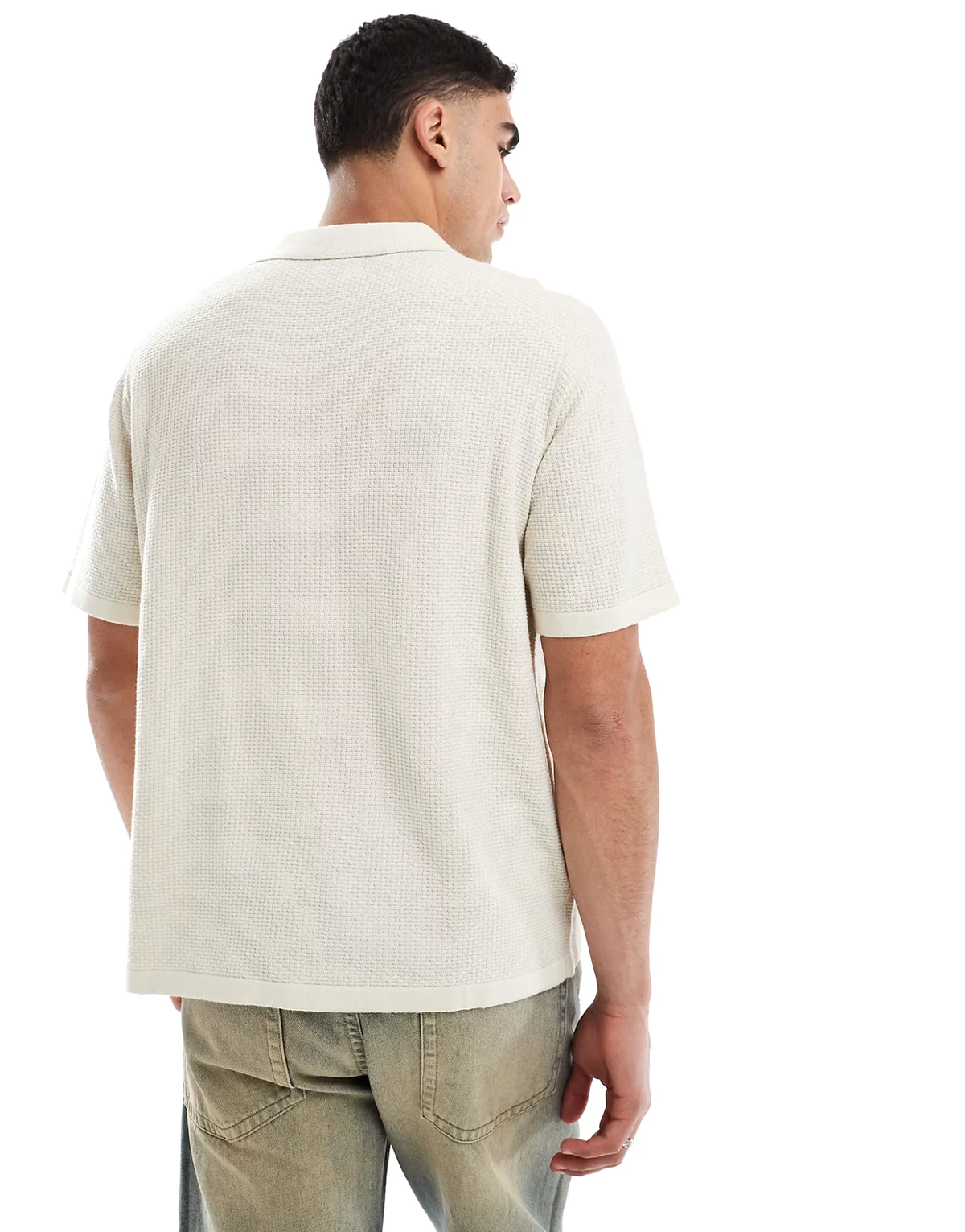 – Durchgeknöpftes, gestricktes Polohemd in Beige mit Reverskragen